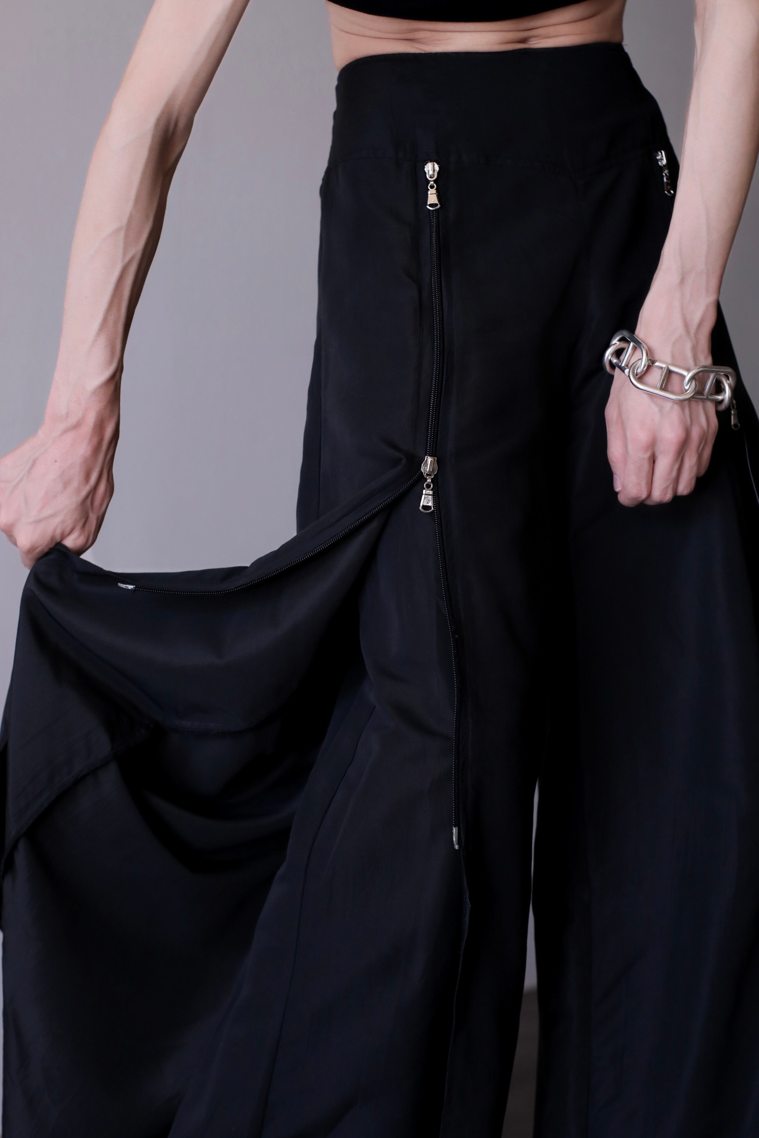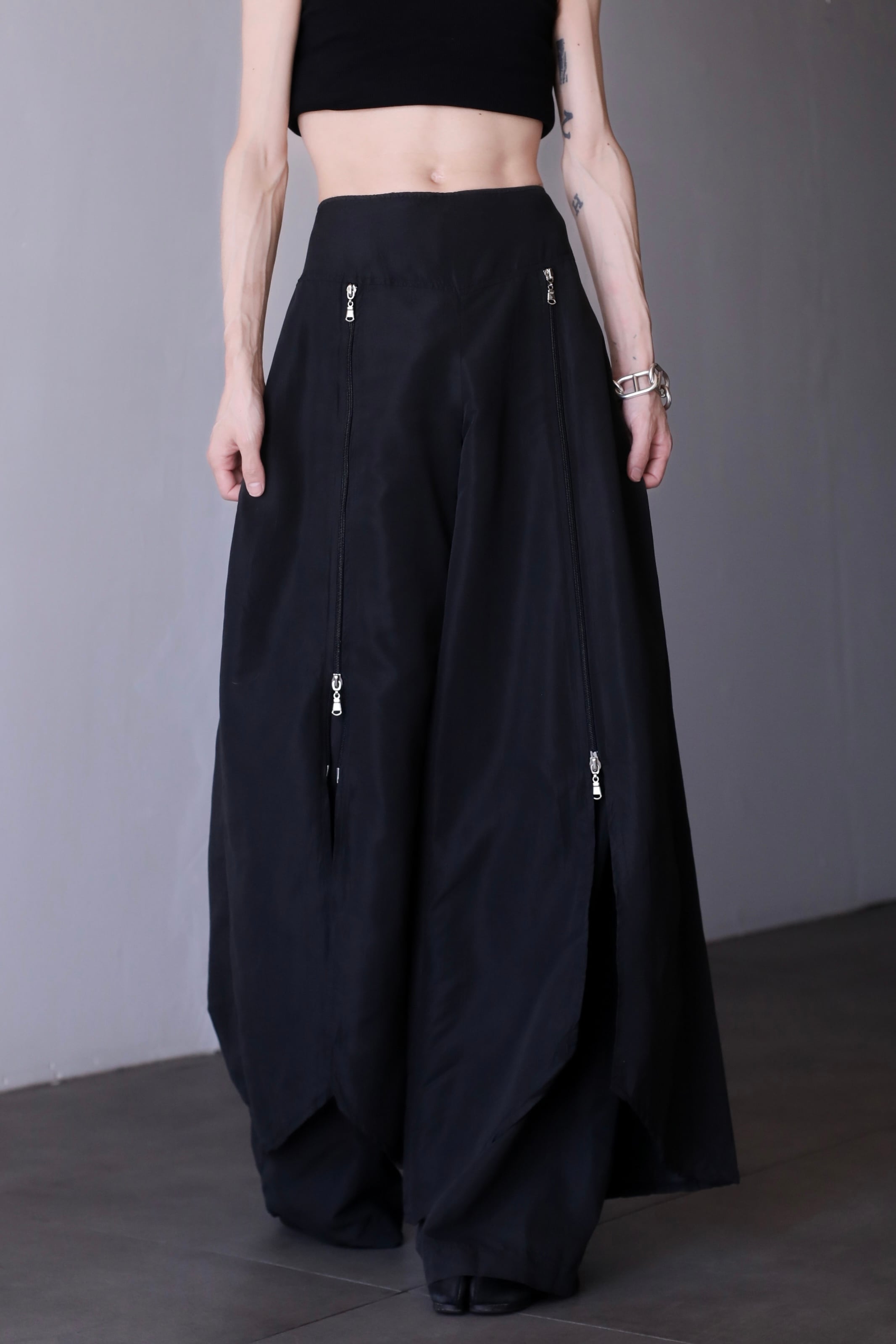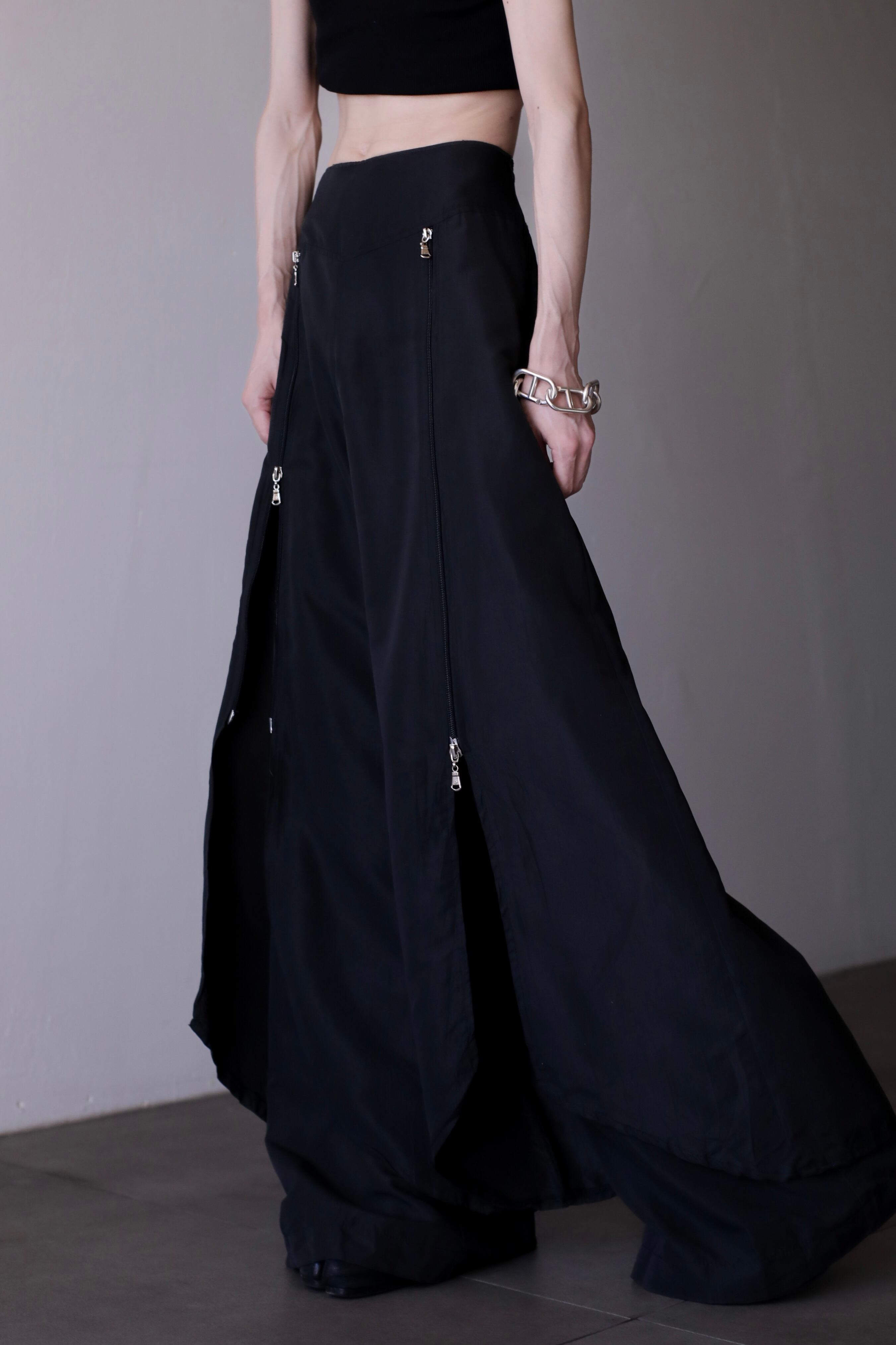 1990s~ cache cache layered zipper tech design wide baggy pants