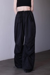 ウエスト 〜100cm(ドローコードで調節できます) / 股下 76cm / 総丈 106cm / 裾幅 〜30cm