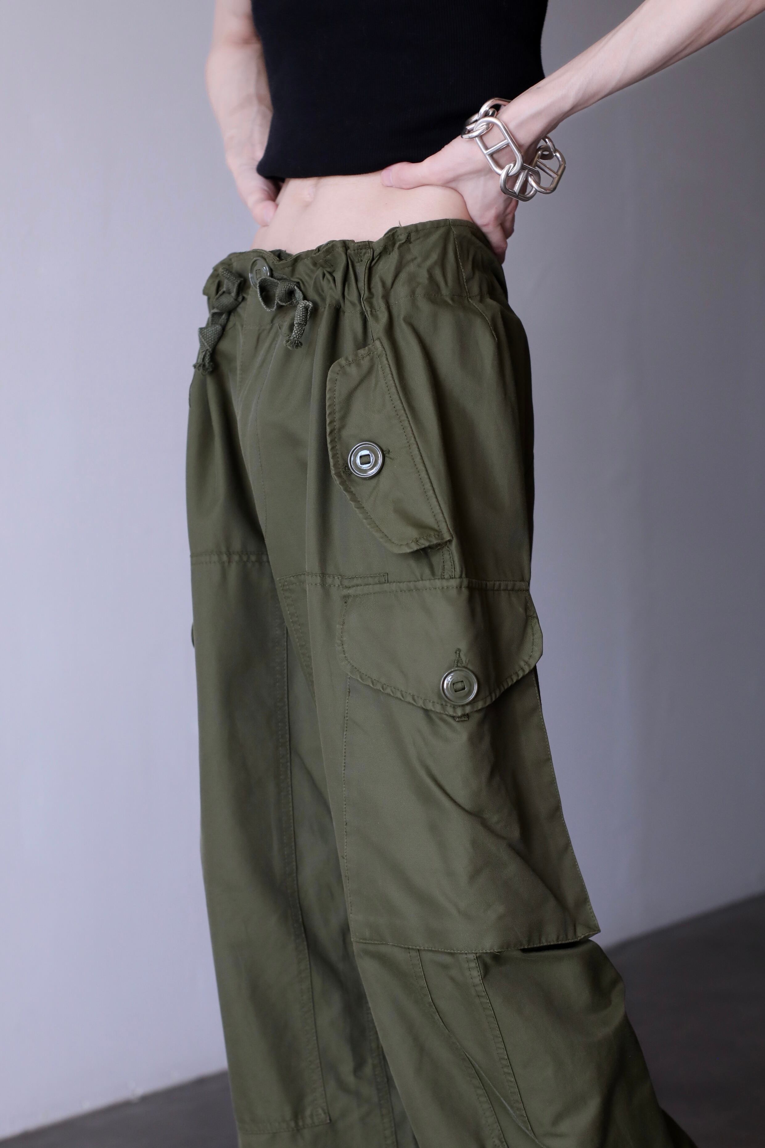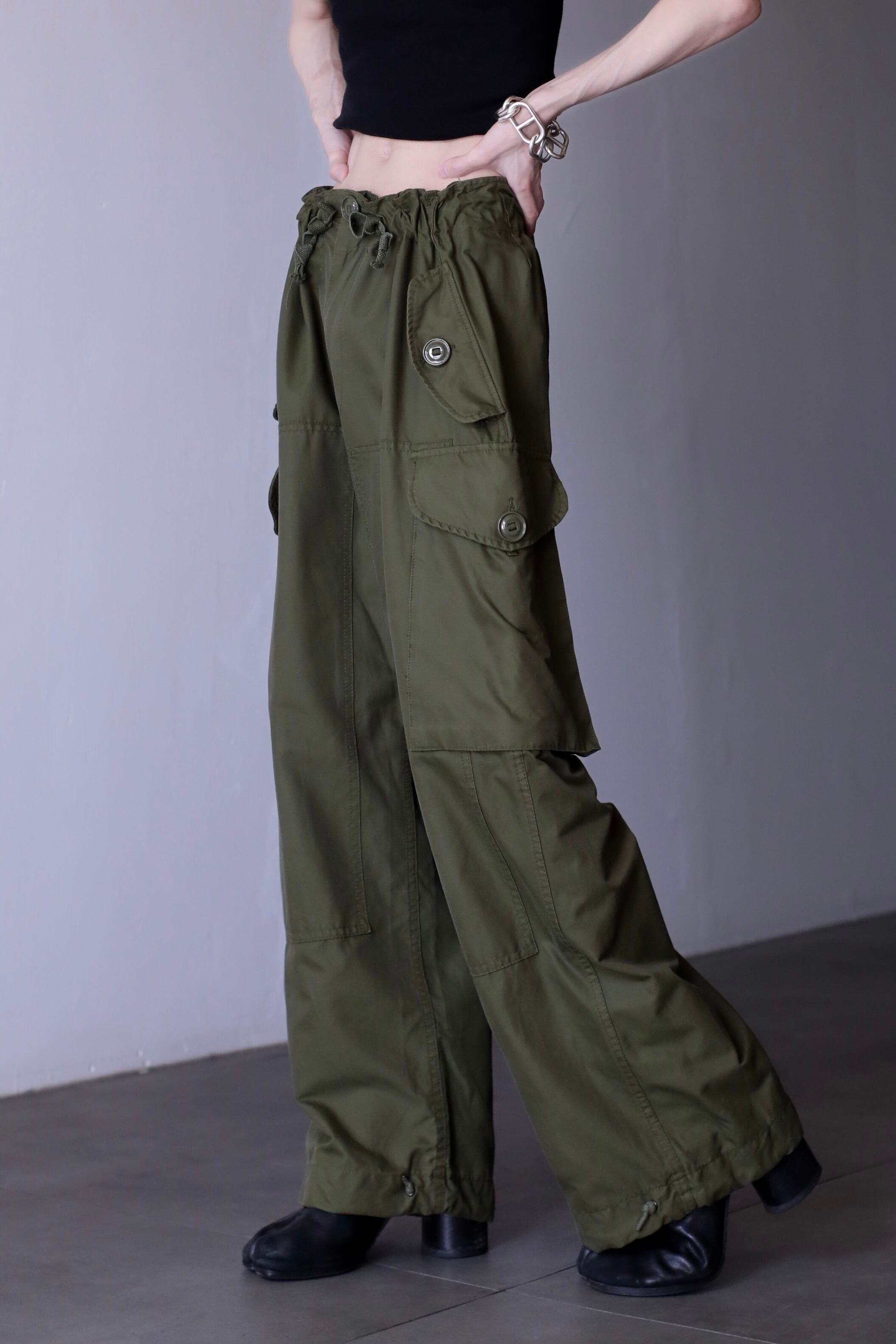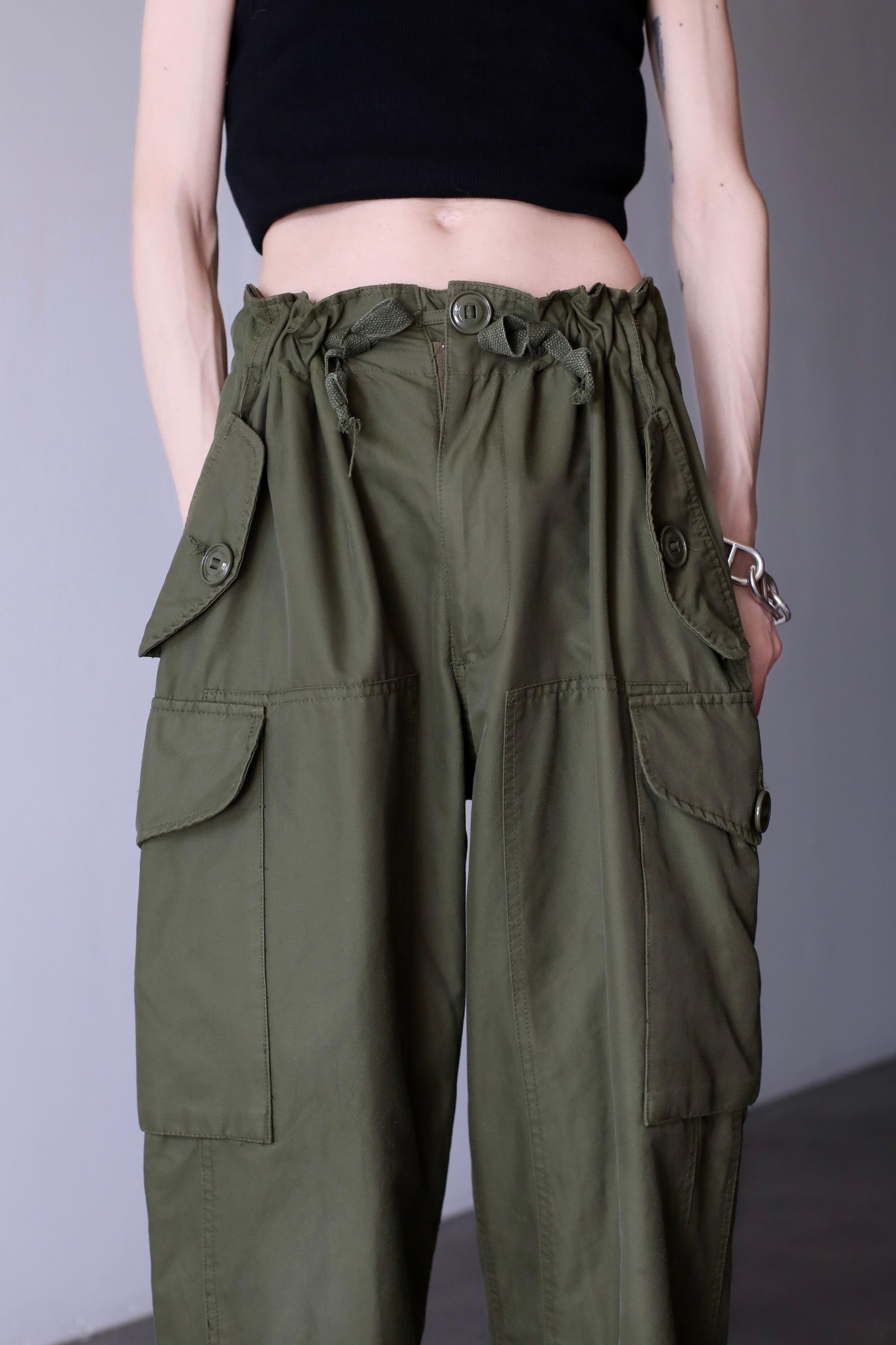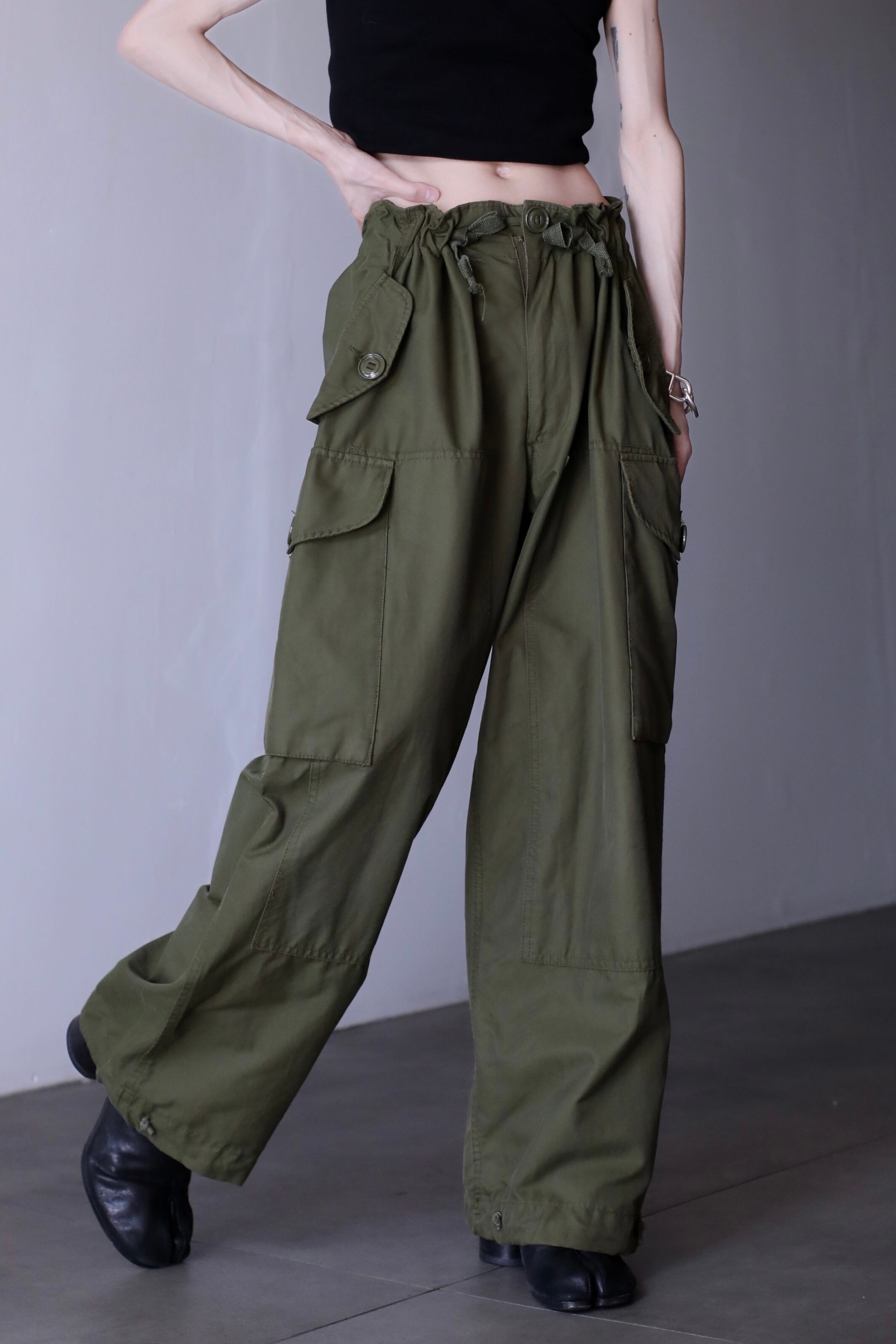 ウエスト 〜98cm (紐で最小まで絞れます) / 股下68 cm / 総丈 99cm / 裾幅 〜27cm (紐で絞れます)