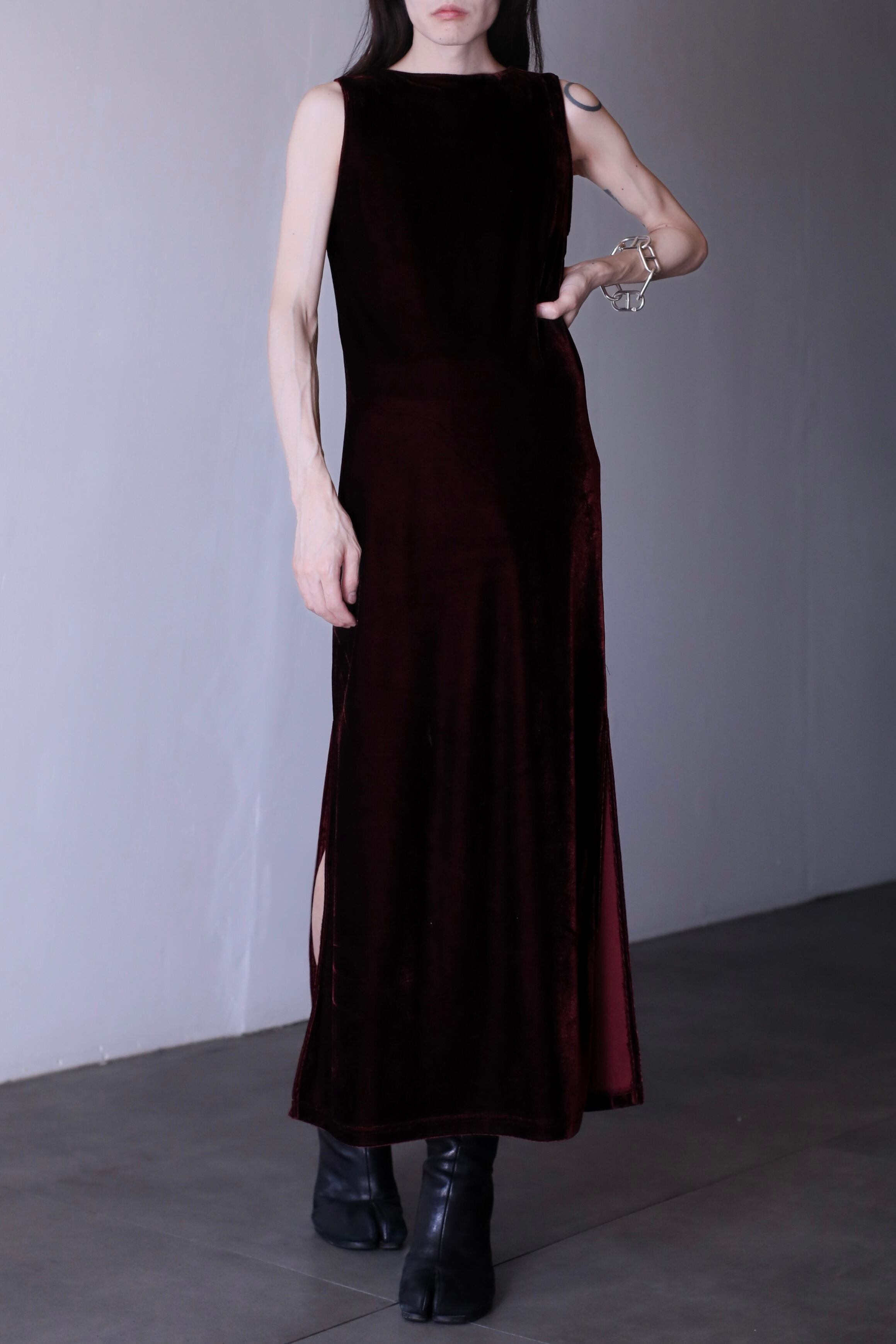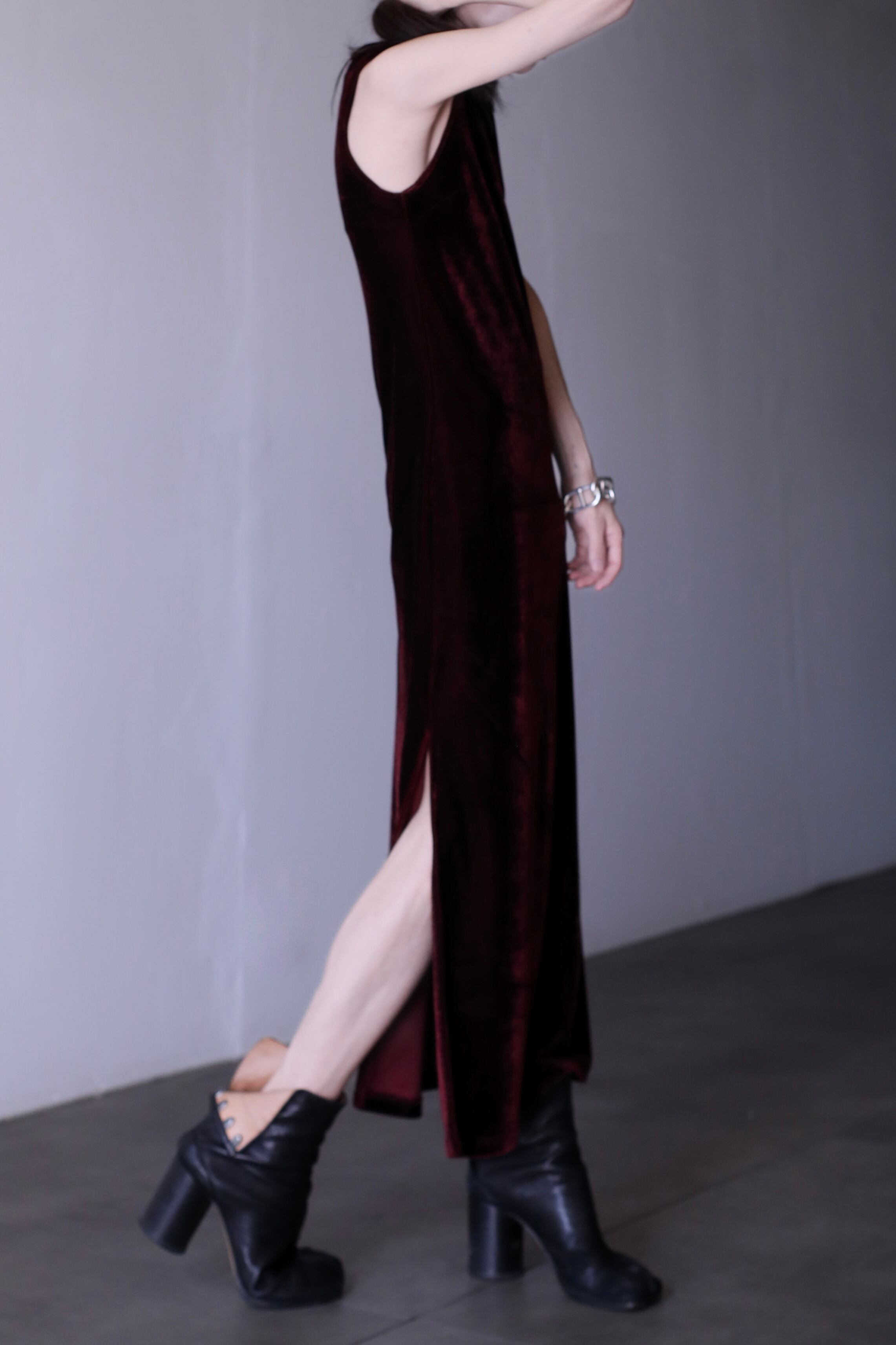 1990s~ velours fabric wine red color long one piece