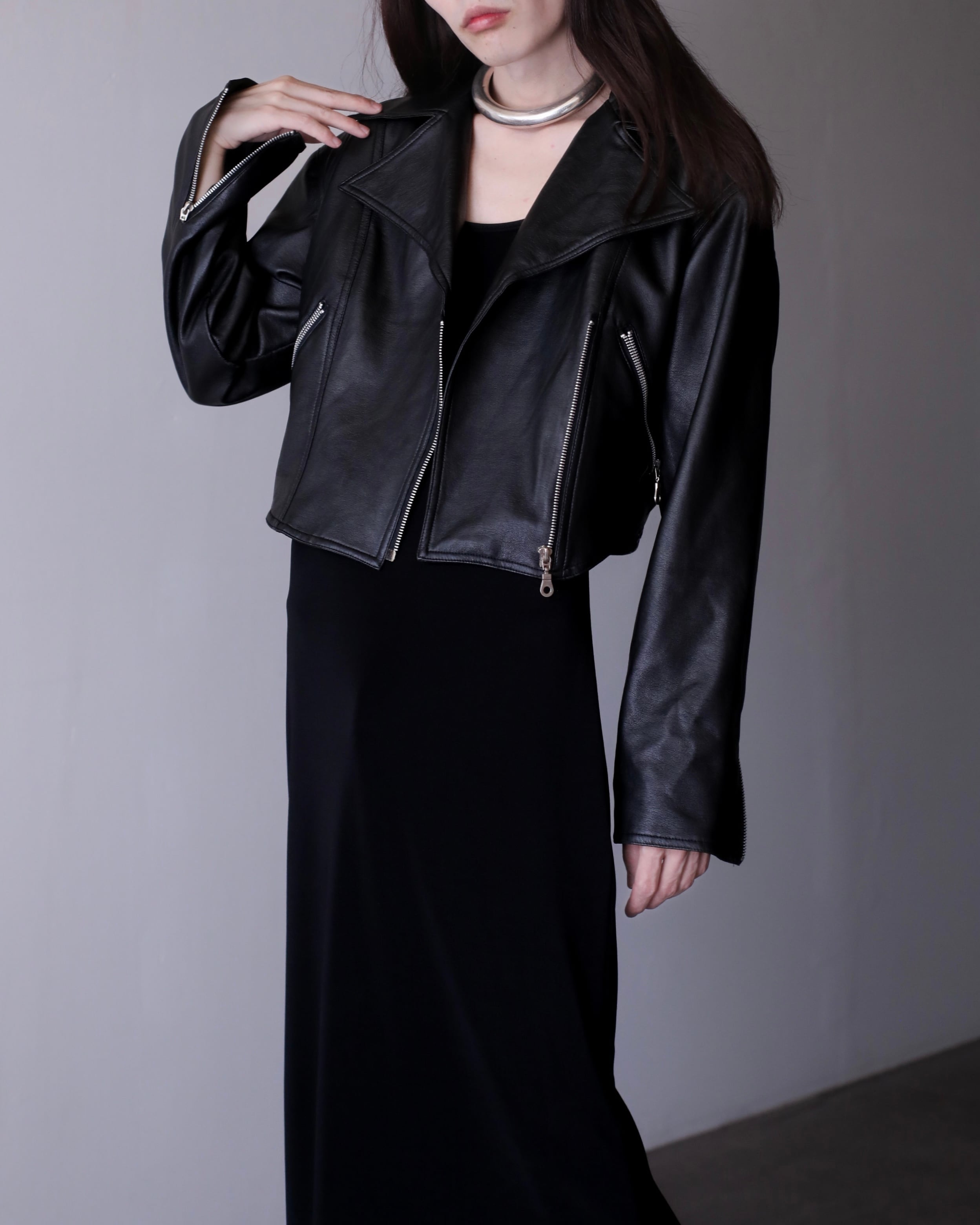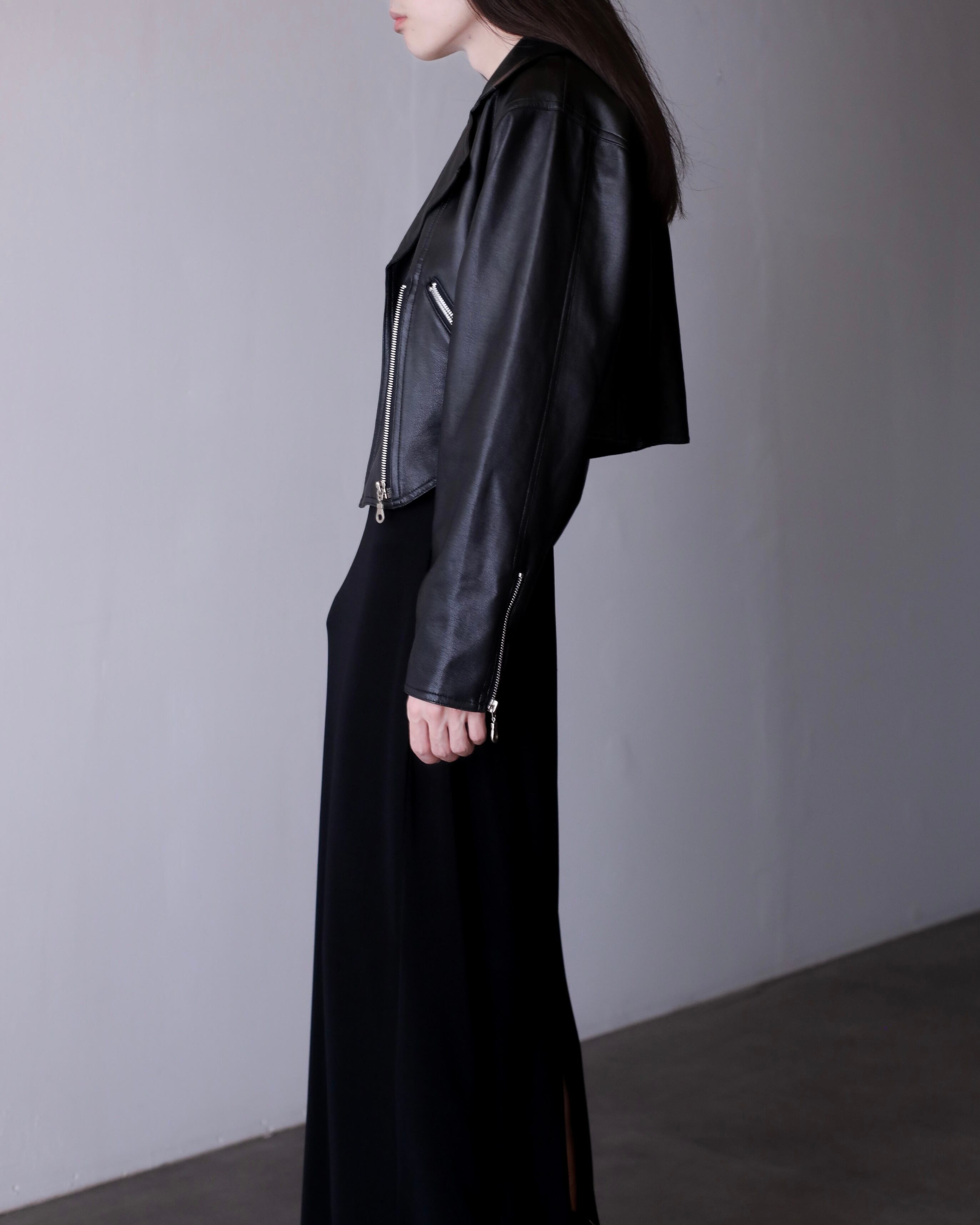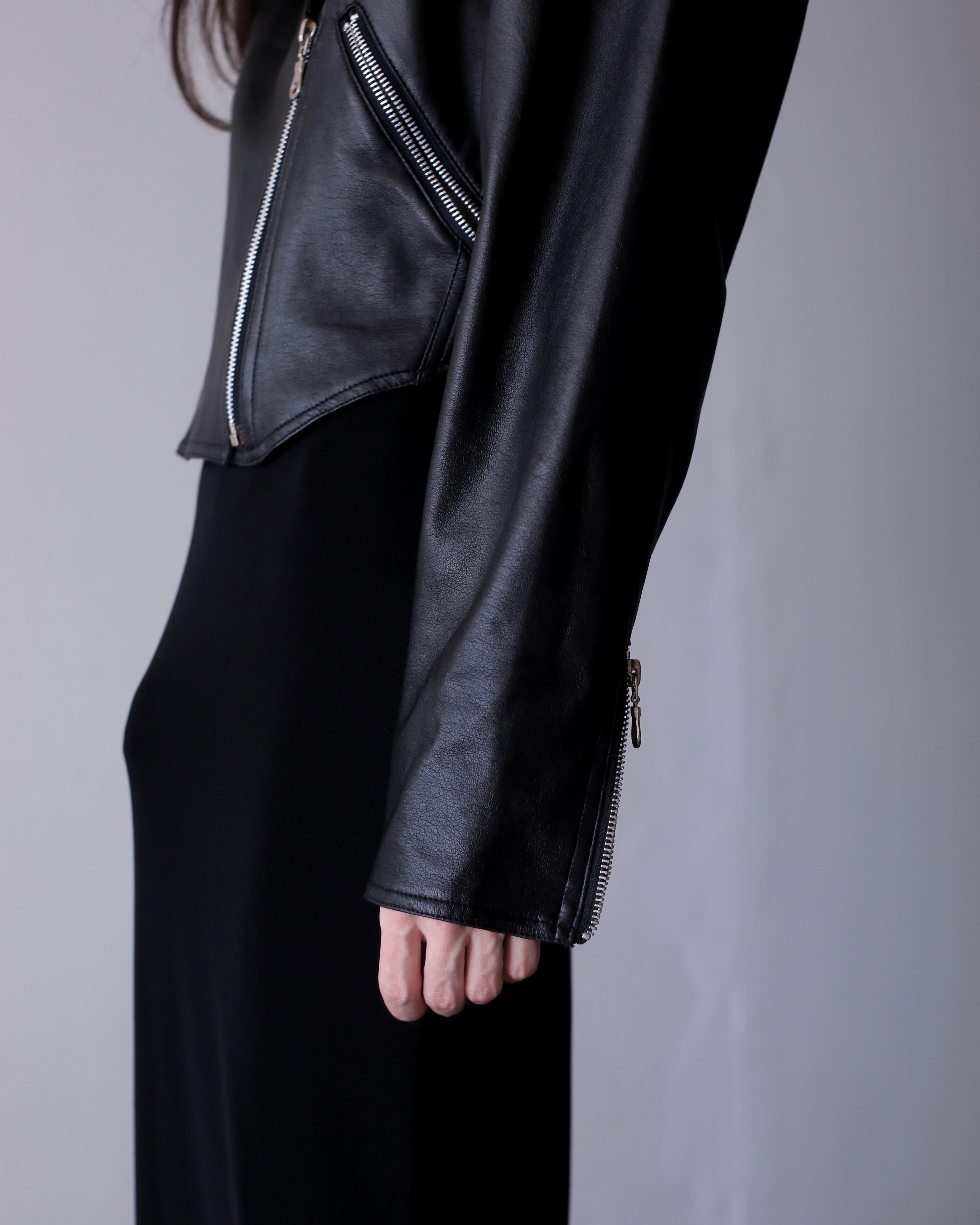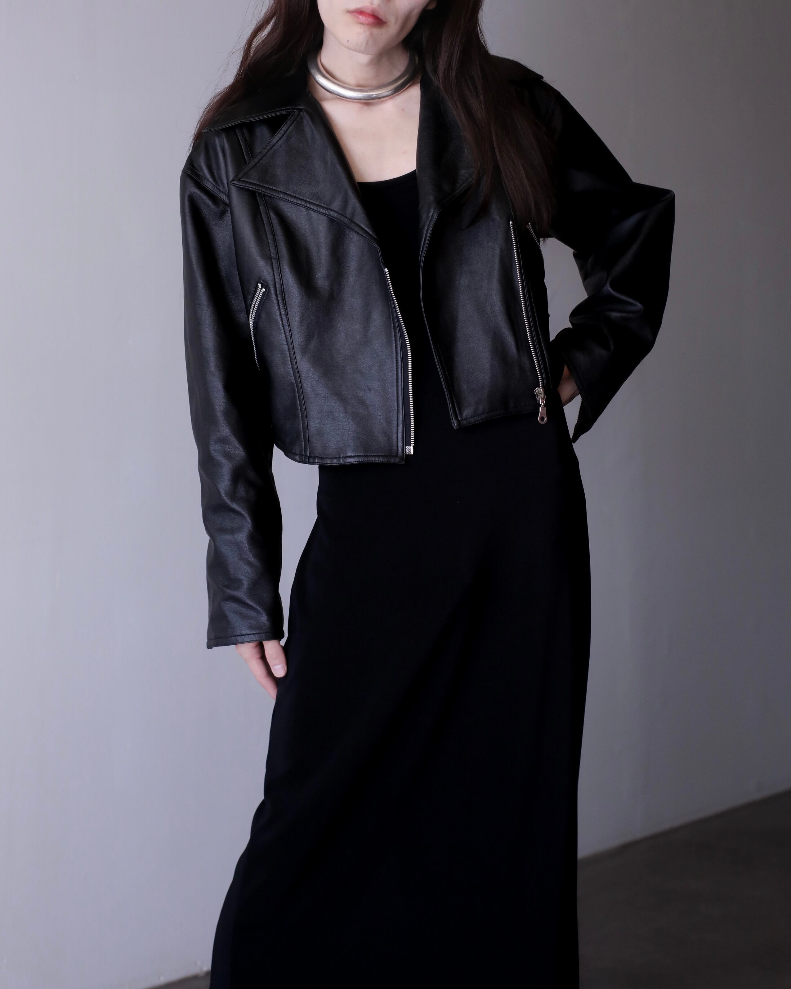 1990s faux leather very short length double breasted riders jacket