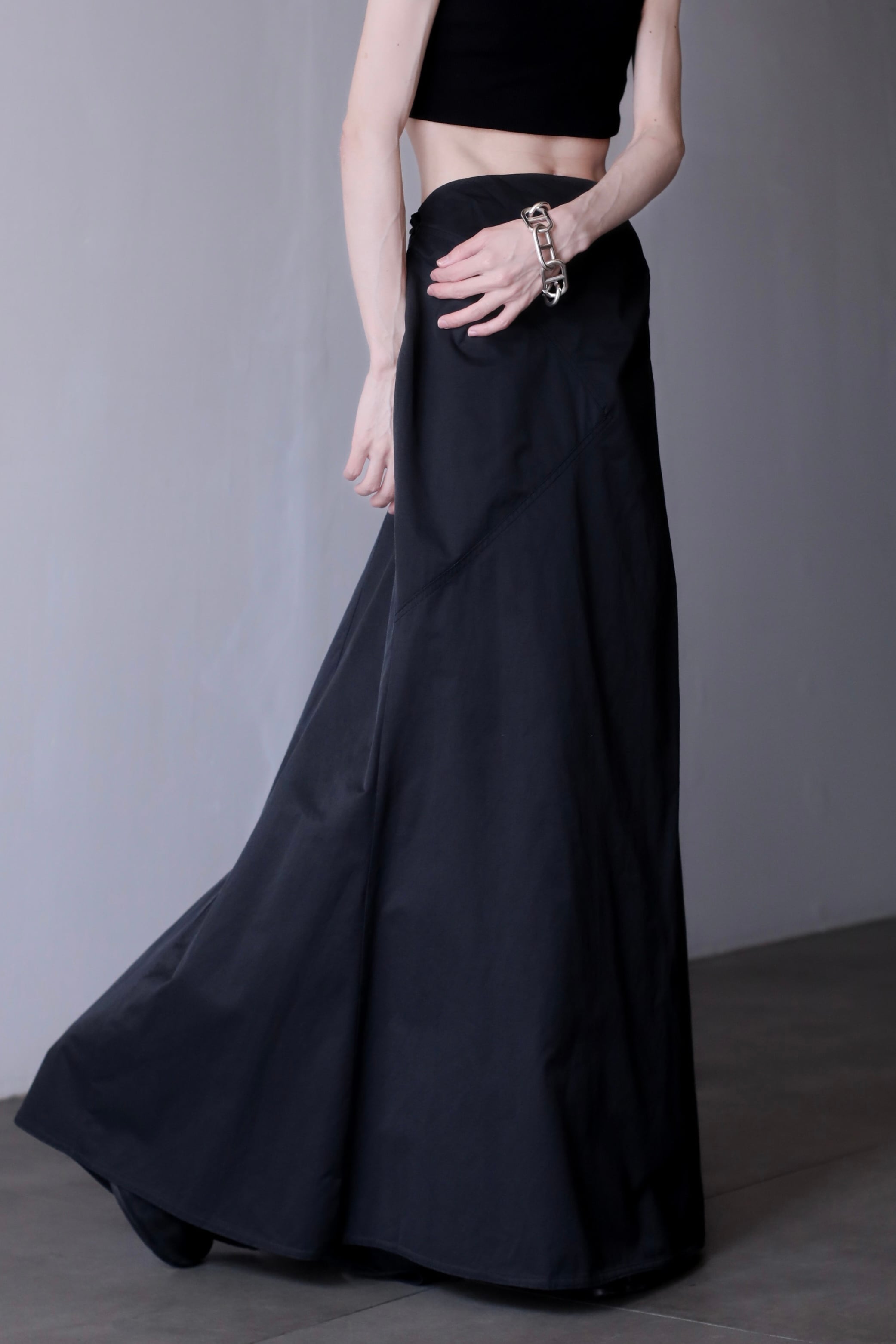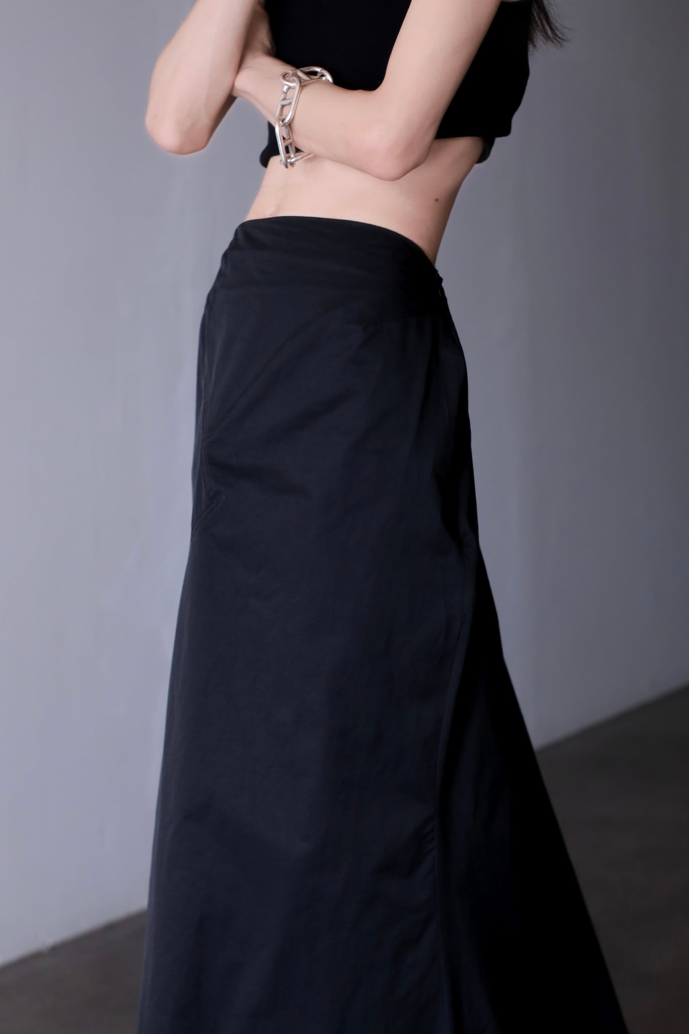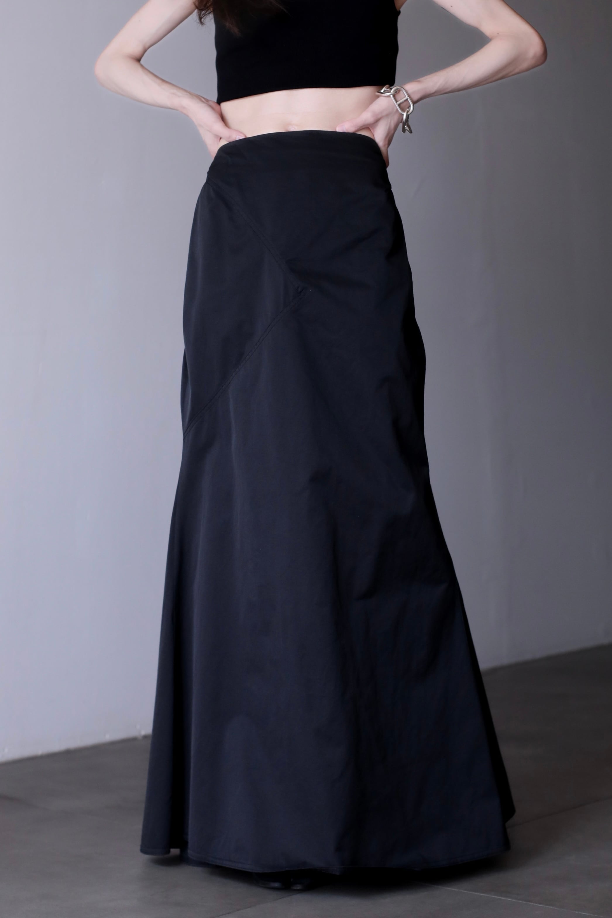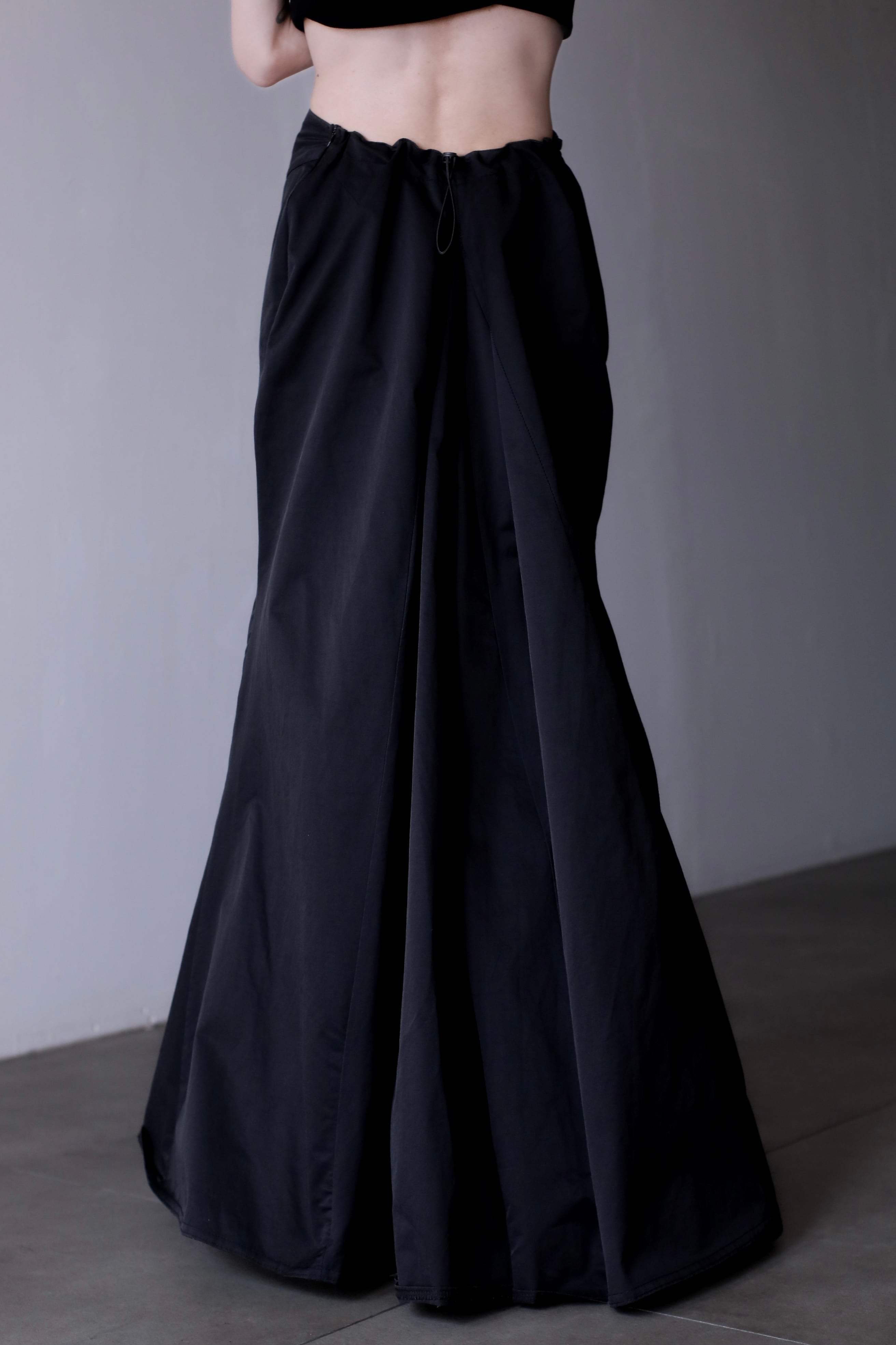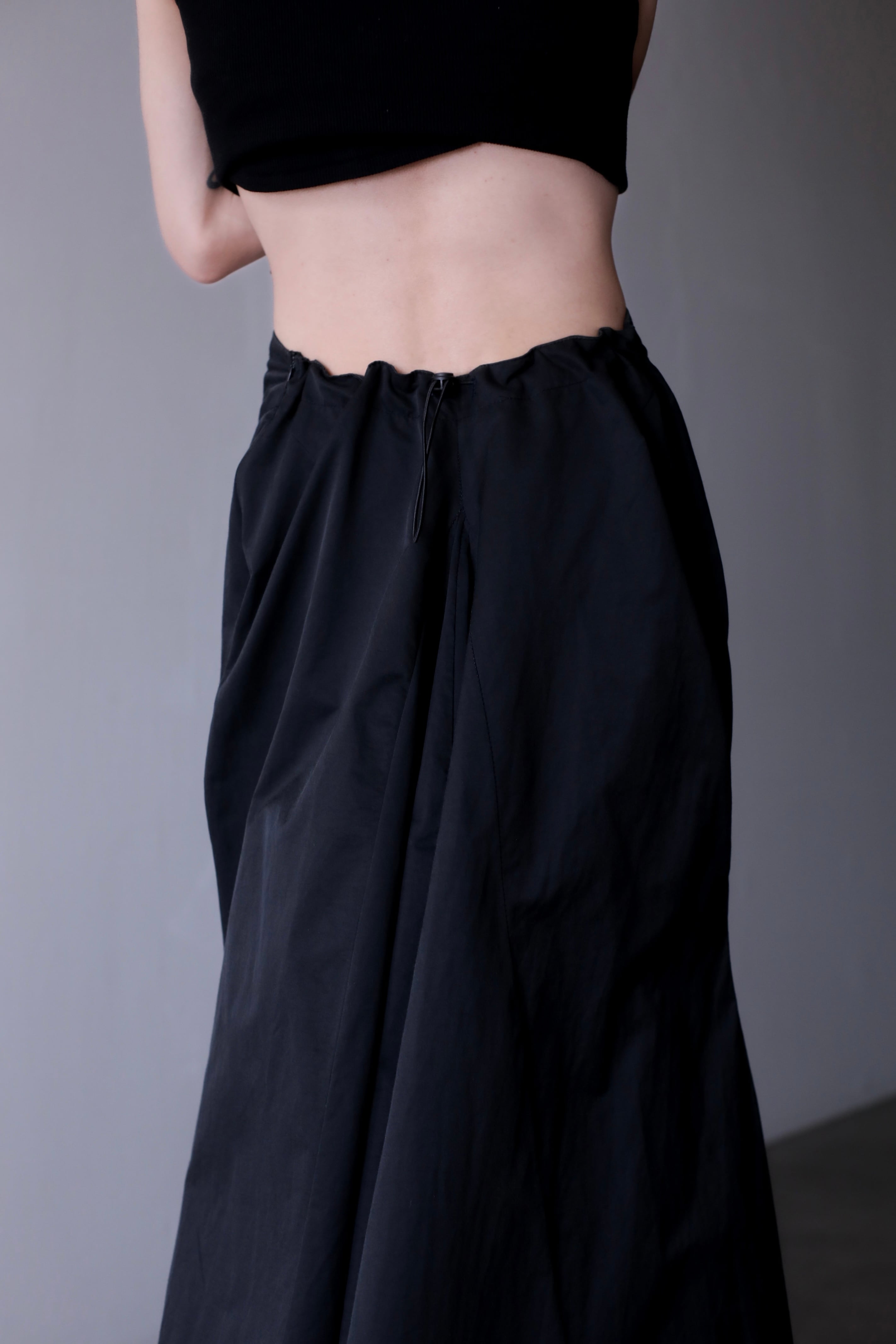 1980s nylon tech drawstring inverted pleats design maxi skirt Made In France