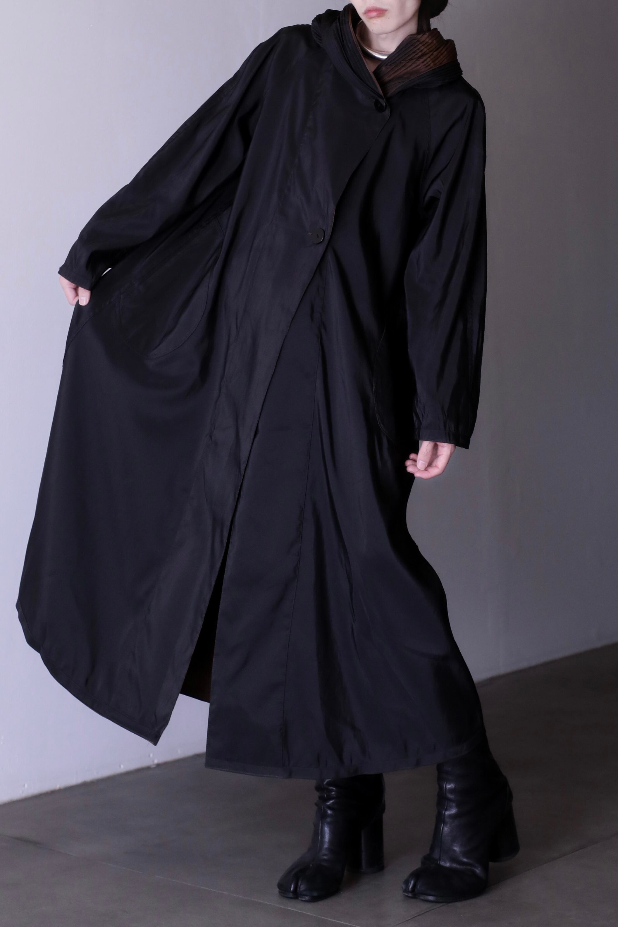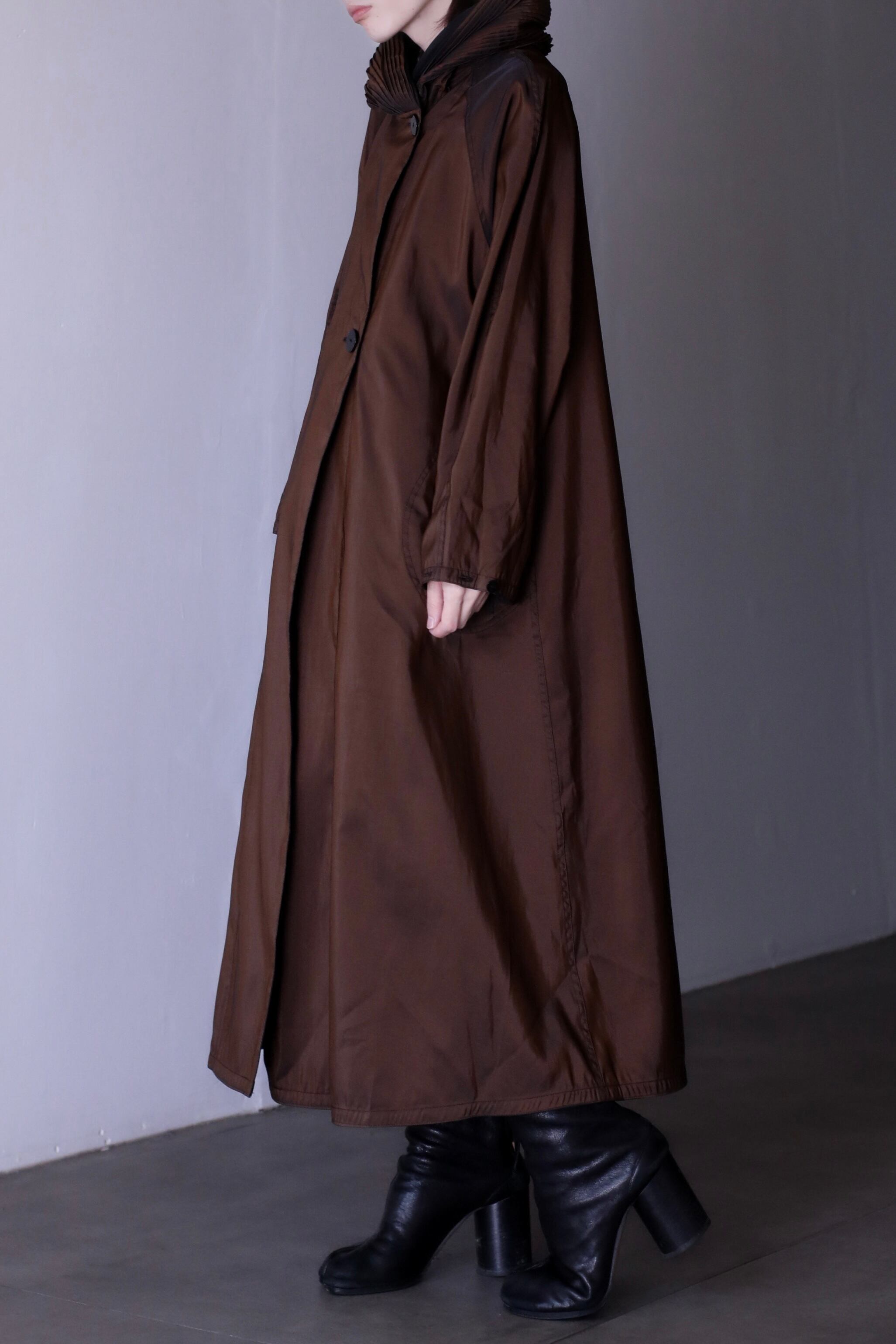 1990s double face nylon pleats hooded design maxi length coat made in USA