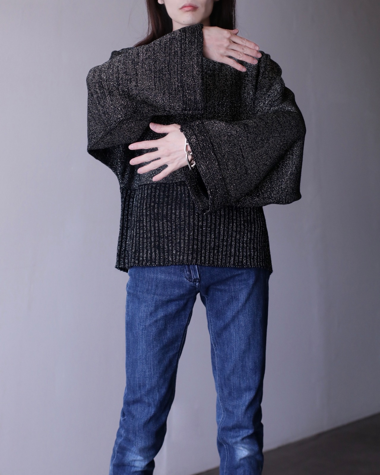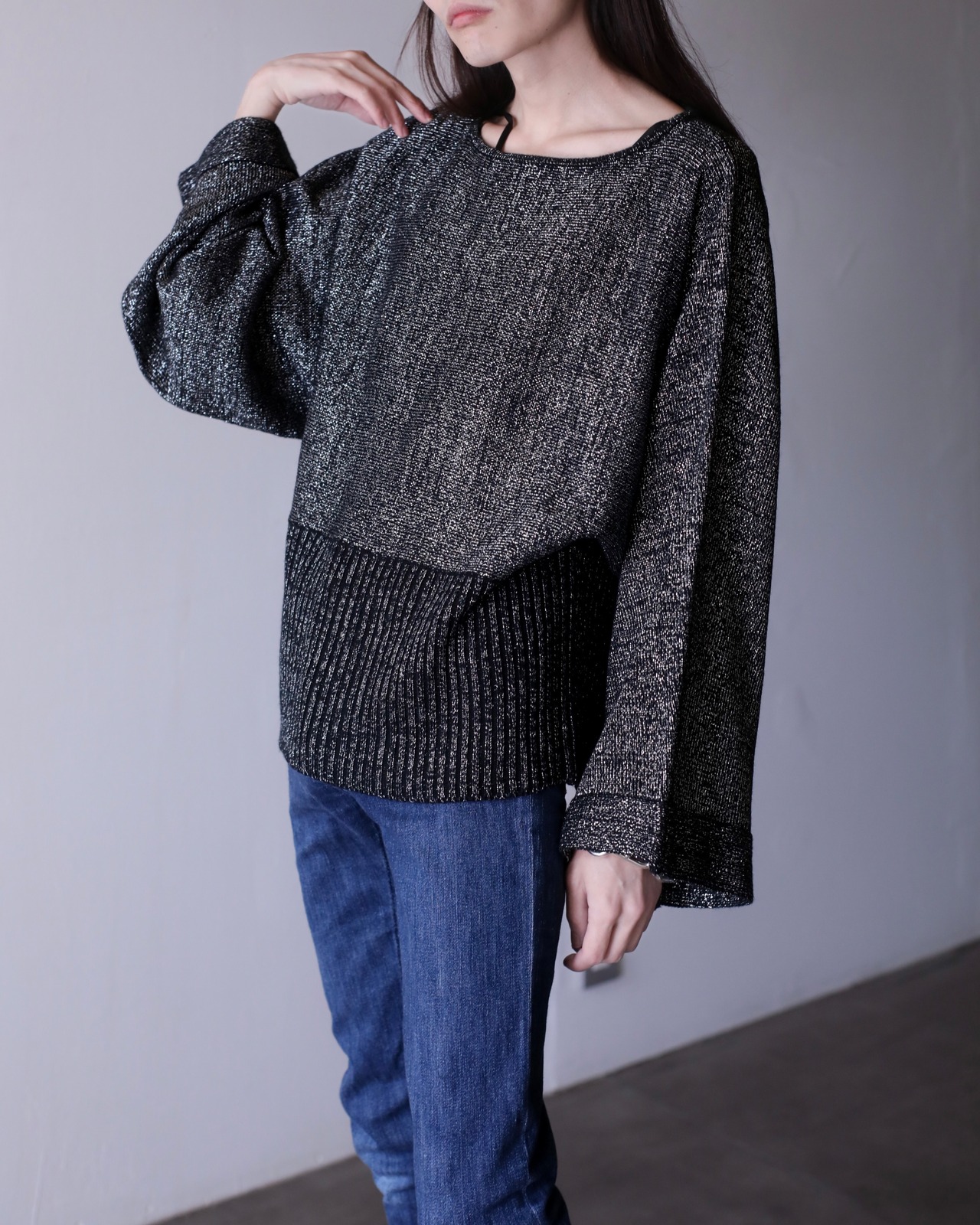 1990s "gokubuto" super wide straight sleeve haramki rib lame knit top