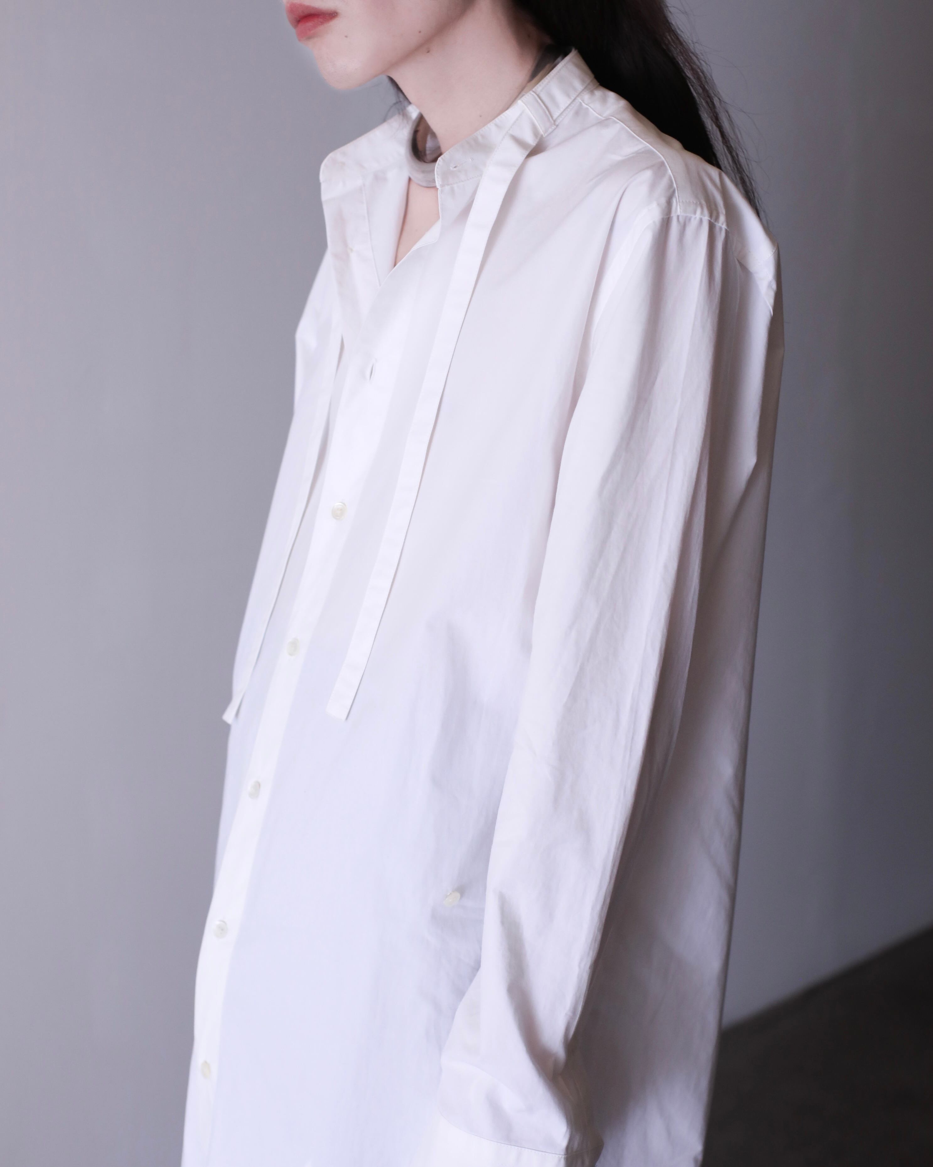 肩の落ちるゆったりとしたシルエットに、長めの袖とすっきりとした直線的なライン。