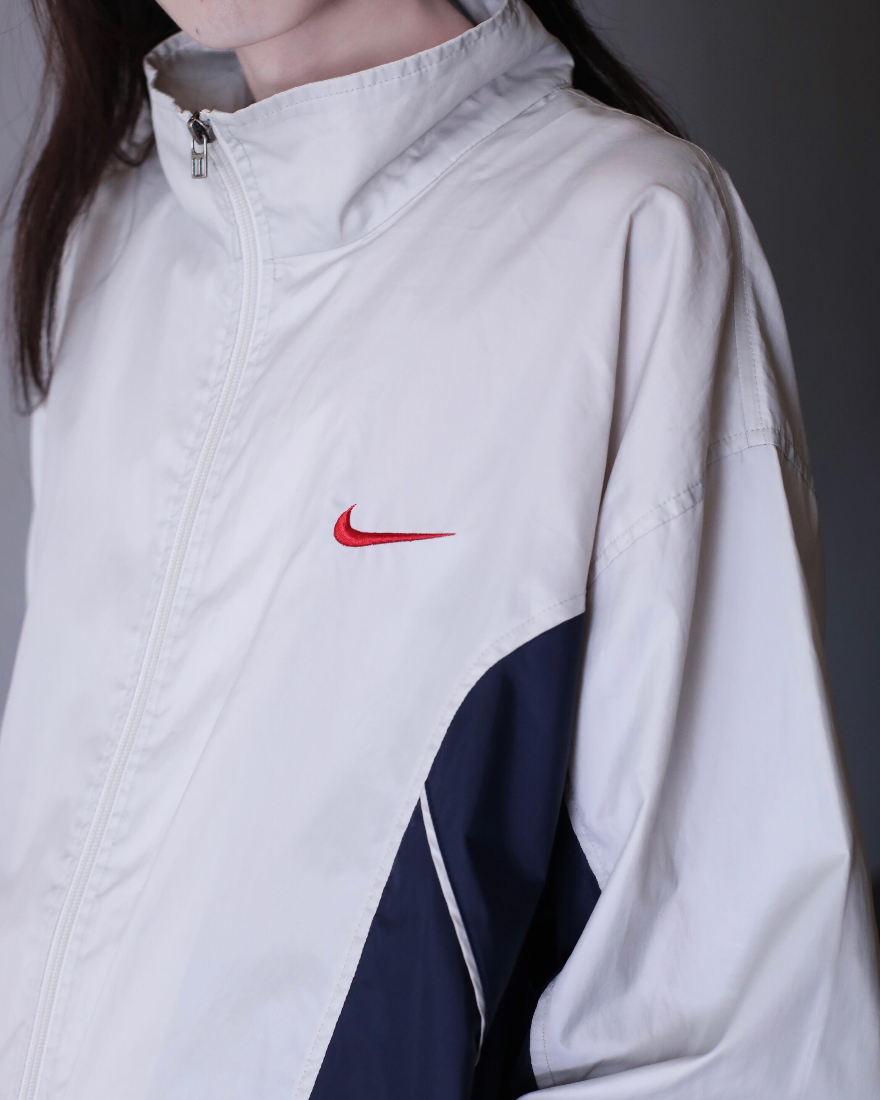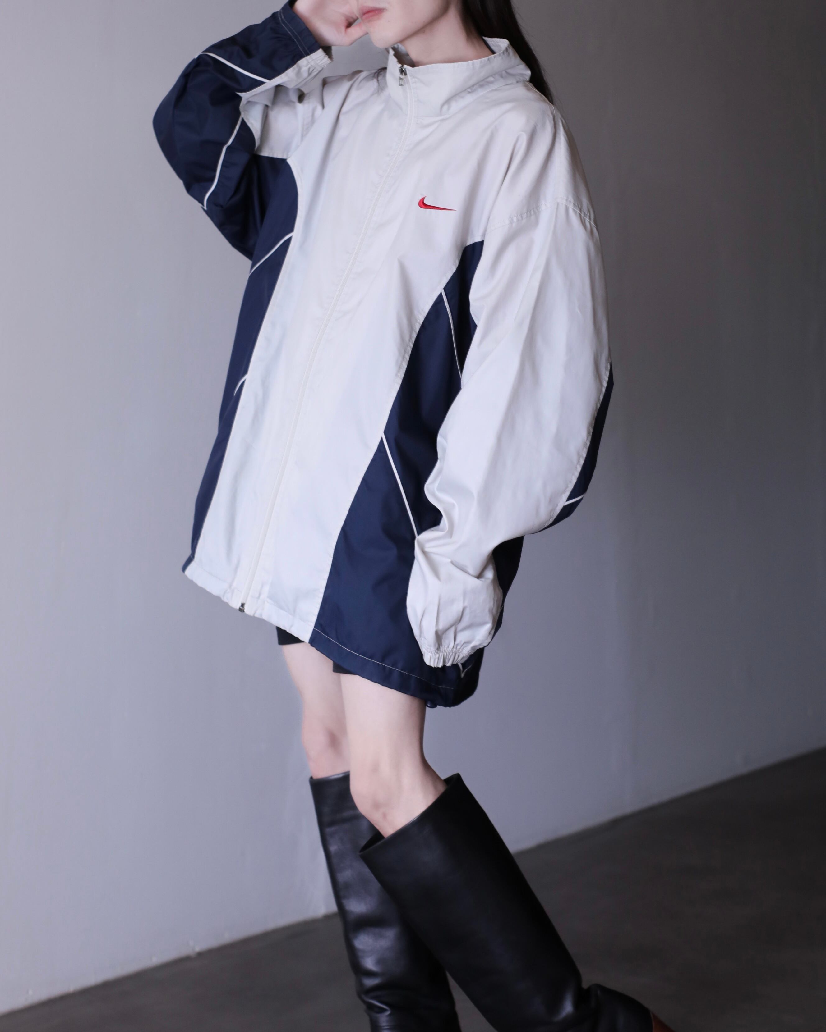 1990s NIKE nylon back center swoosh embroidery design hi-neck jacket oversized
