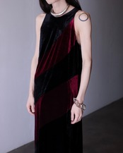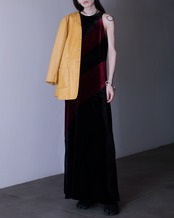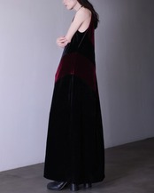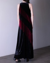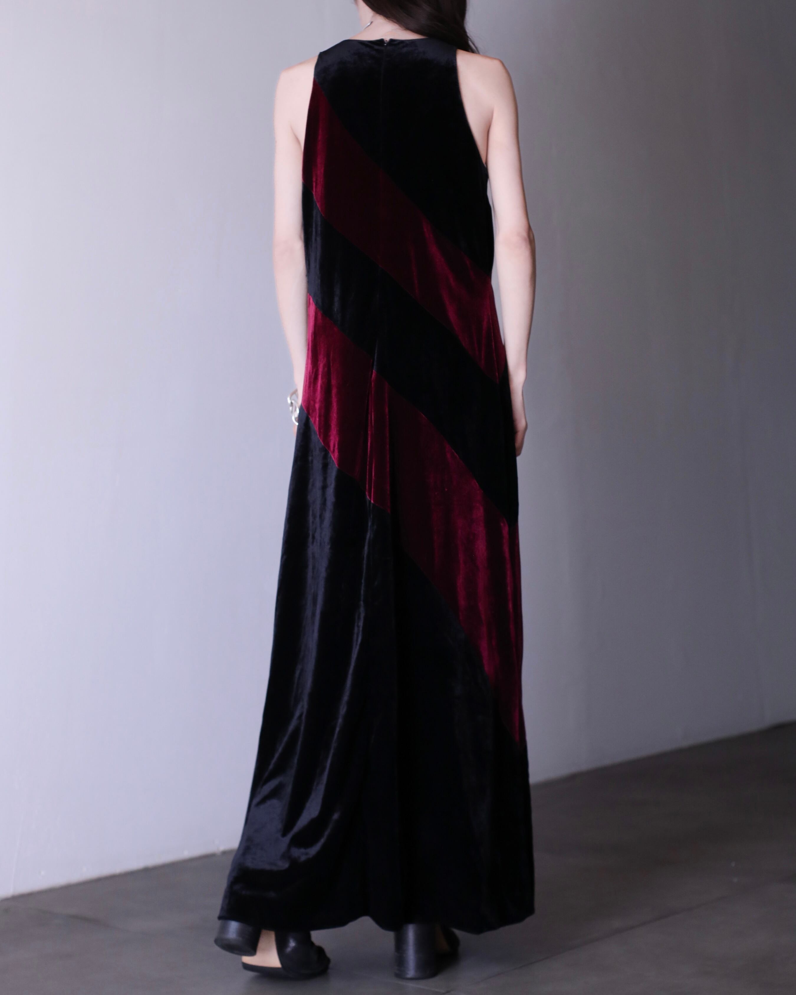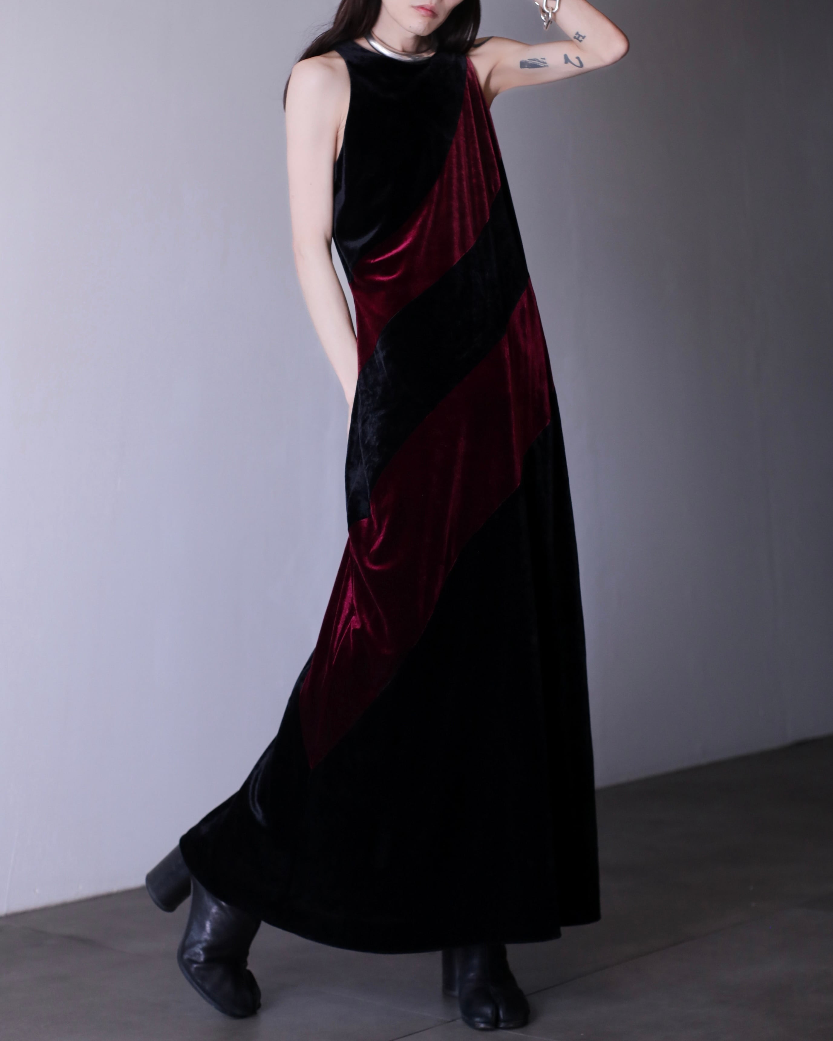 1990s velours fabric "guruguru" black × wine bi-color design maxi length dress one piece