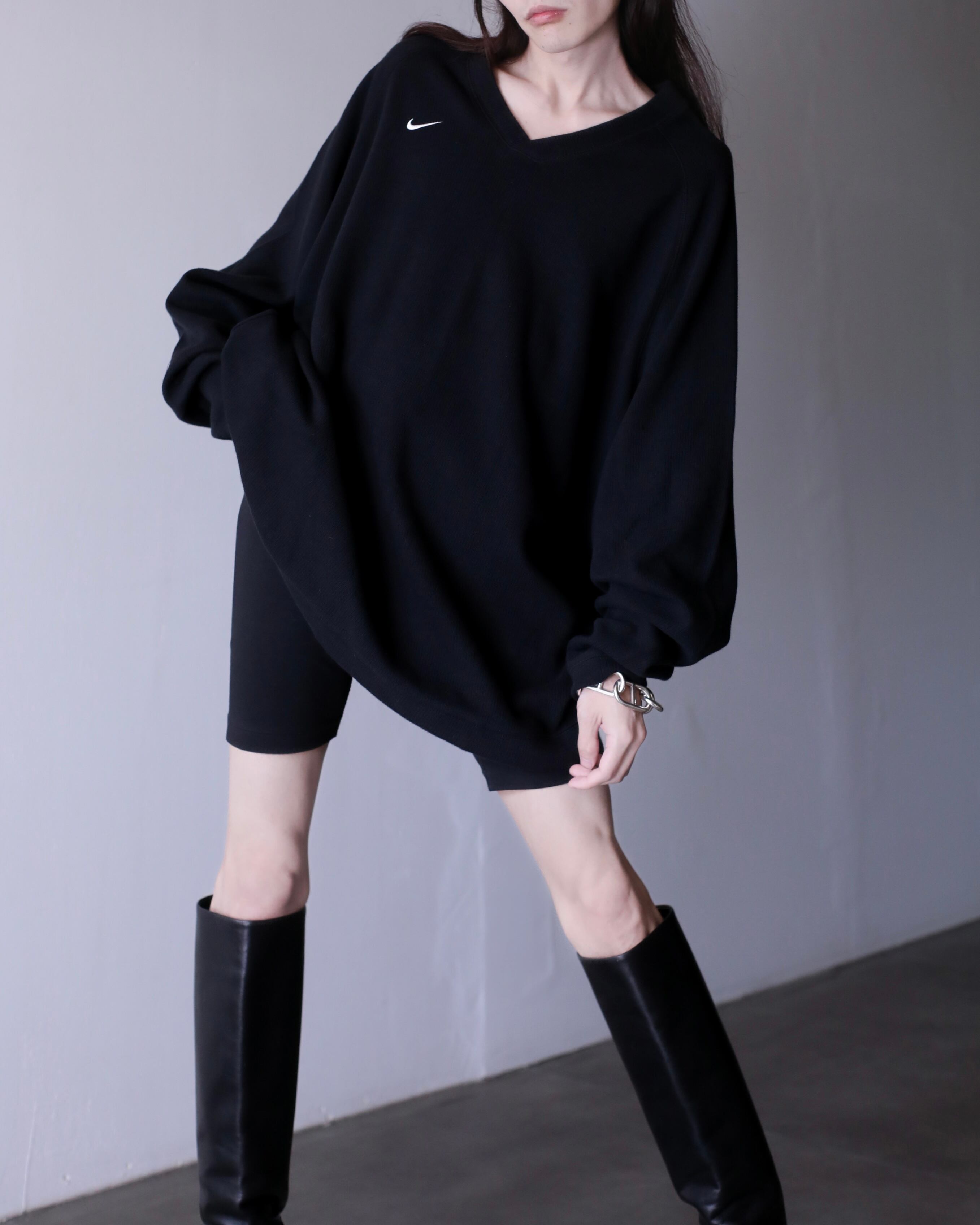 1990s~ NIKE deadstock heavy cotton knit v-neck top oversized