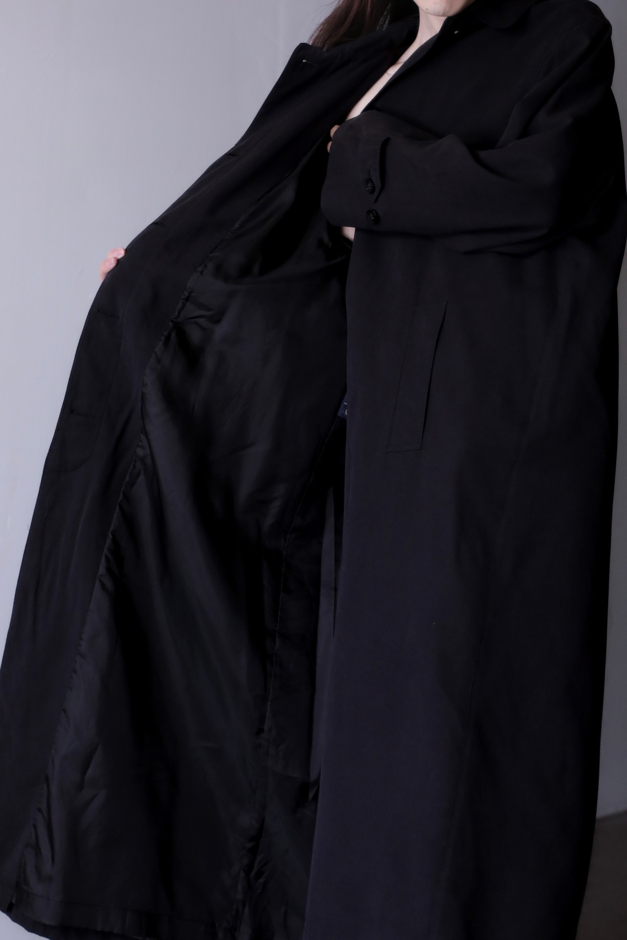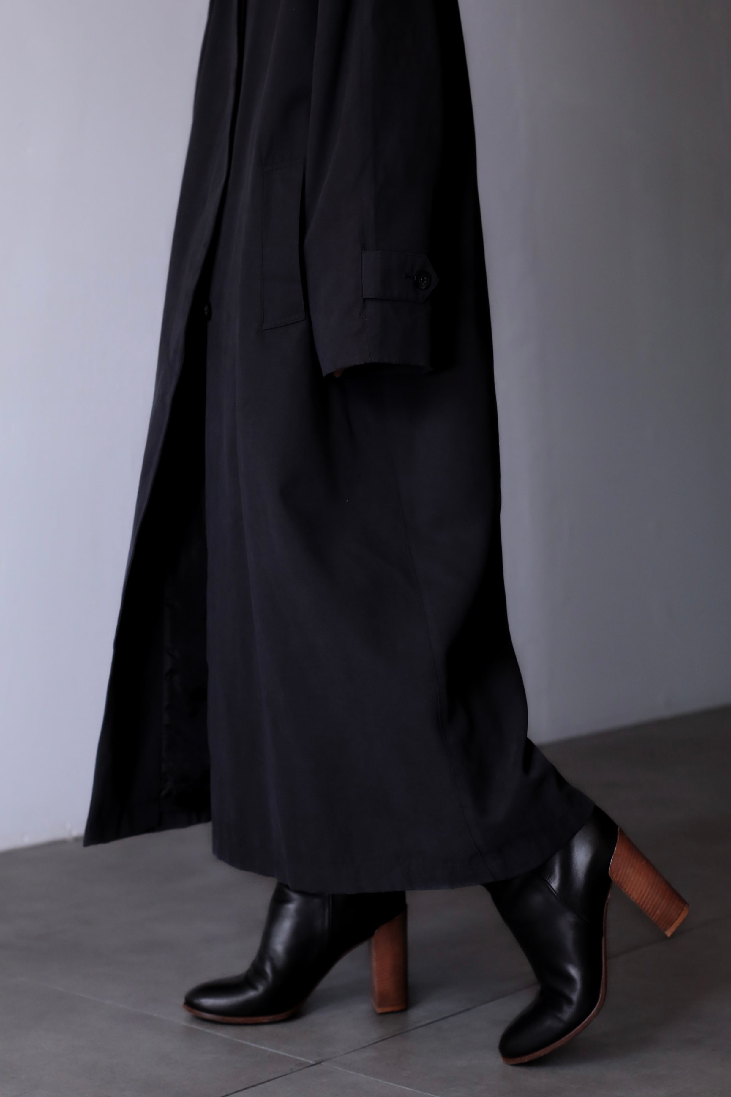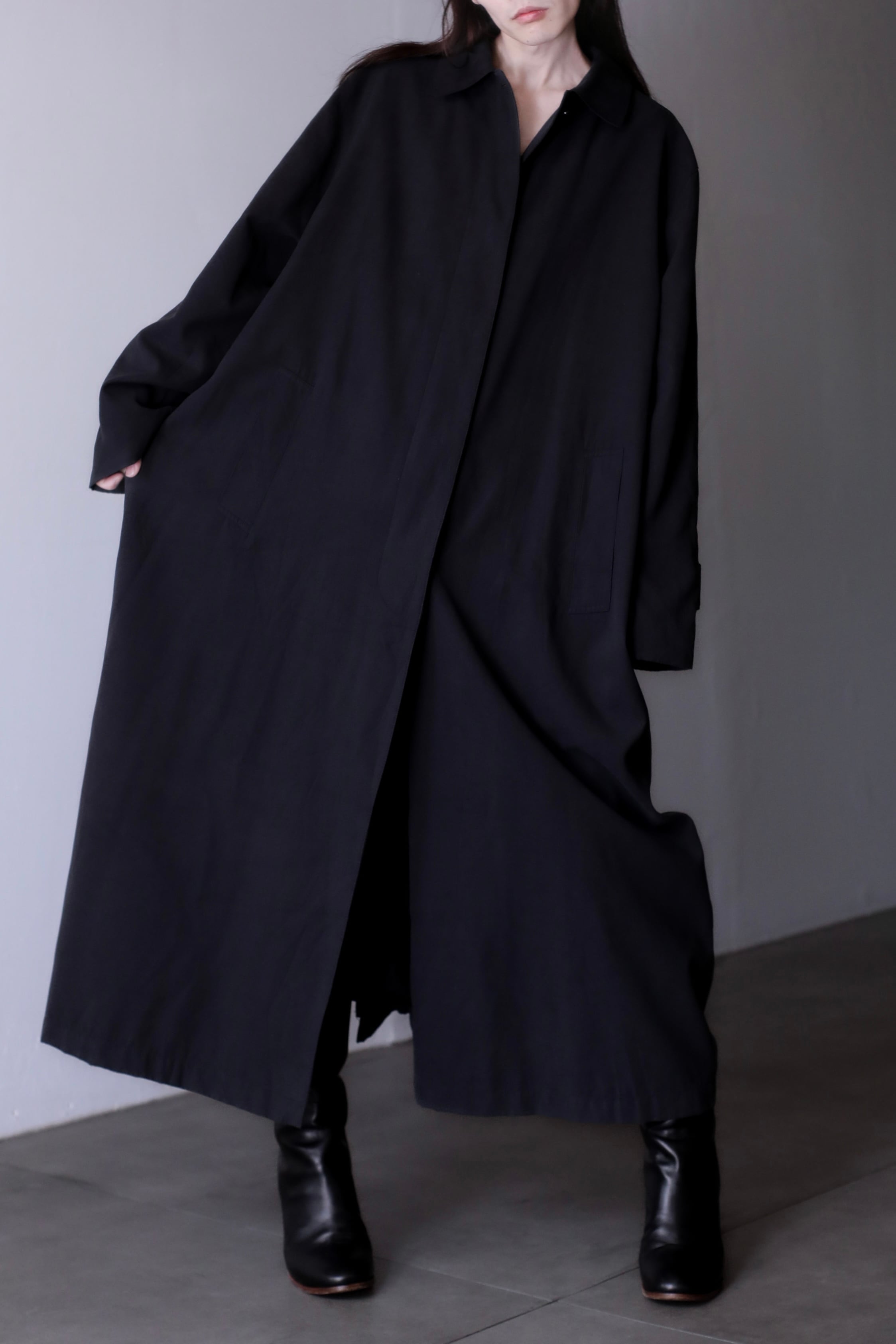 1990s smooth fabric deep inverted pleats design maxi length balmacaan coat