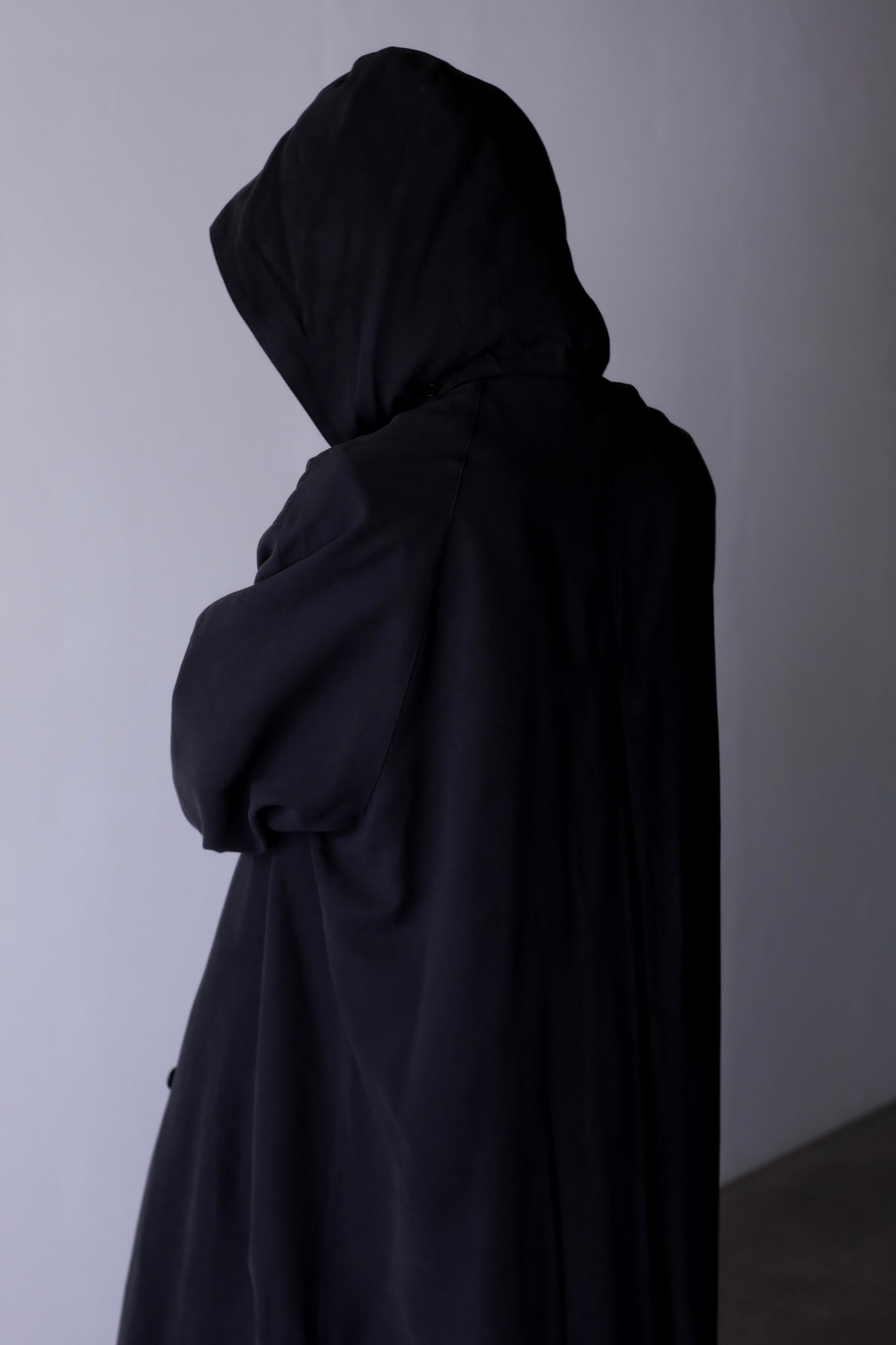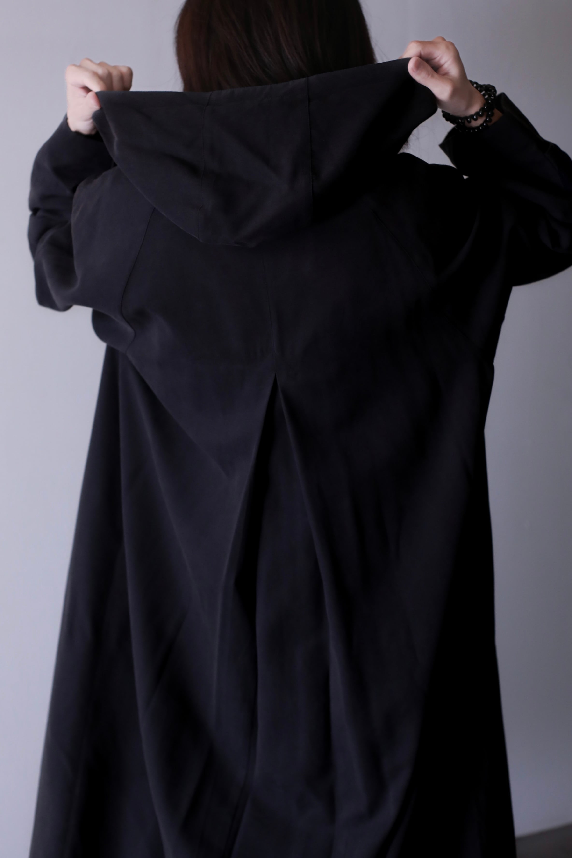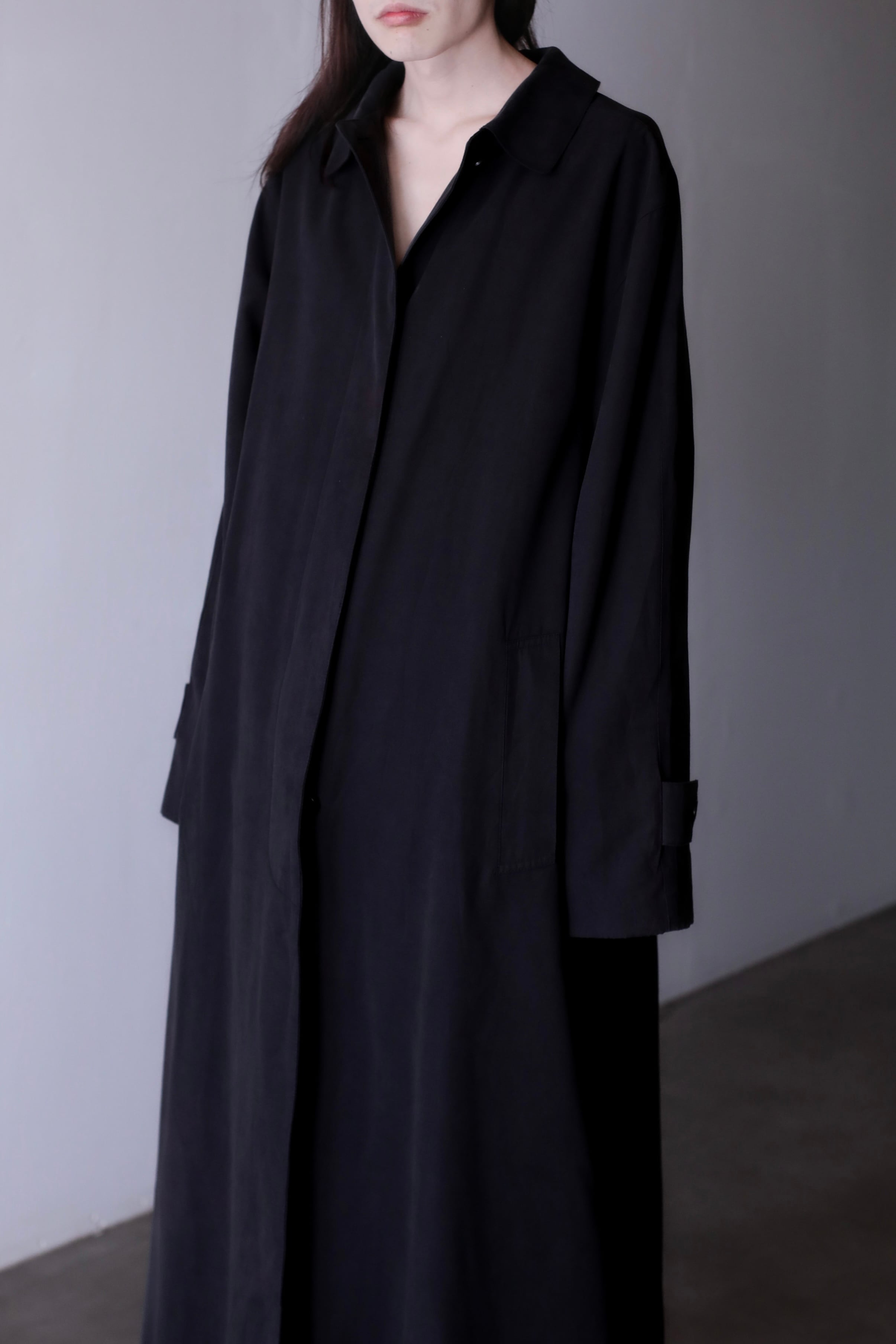 1990s smooth fabric deep inverted pleats design maxi length balmacaan coat