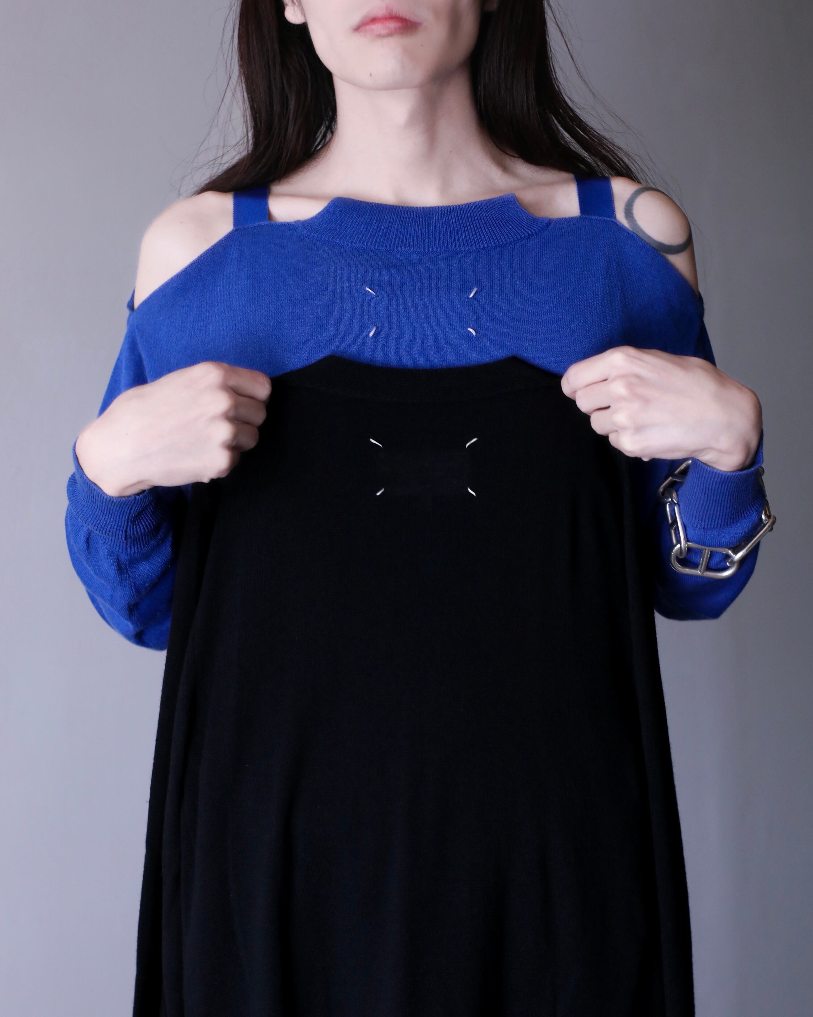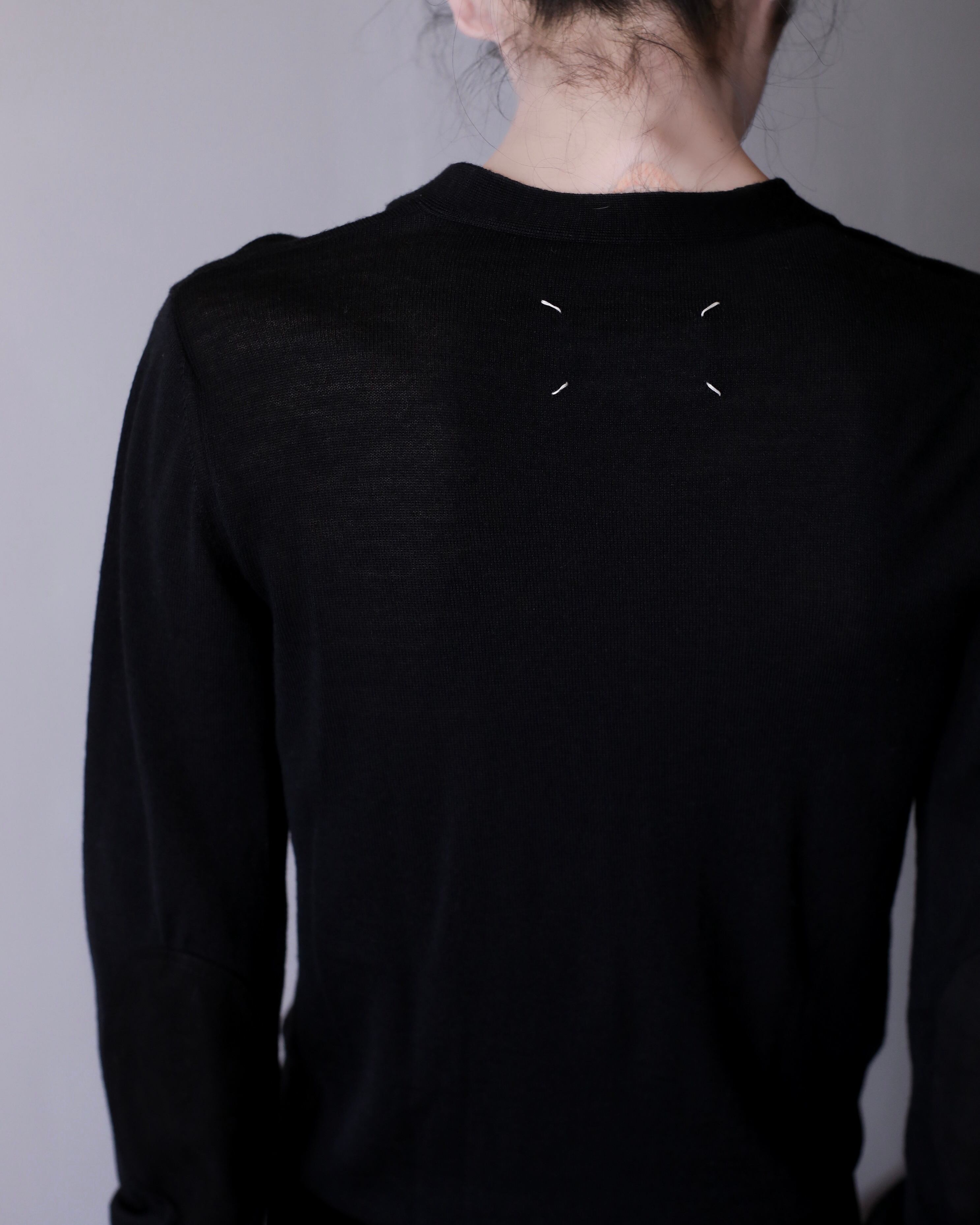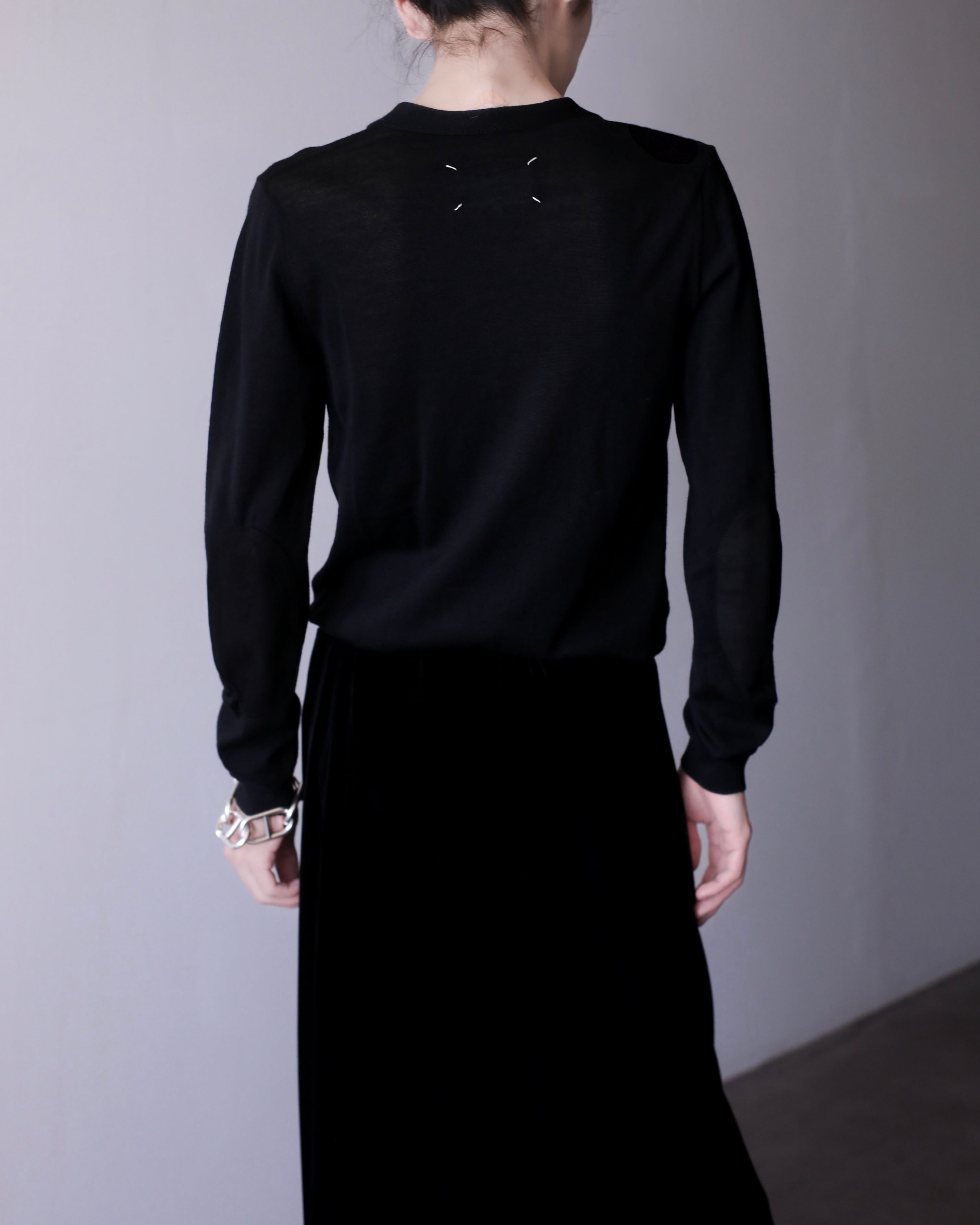 Maison Martin Margiela ④ lamb leather elbow patch wool fabric v-neck knit top Made In Italy