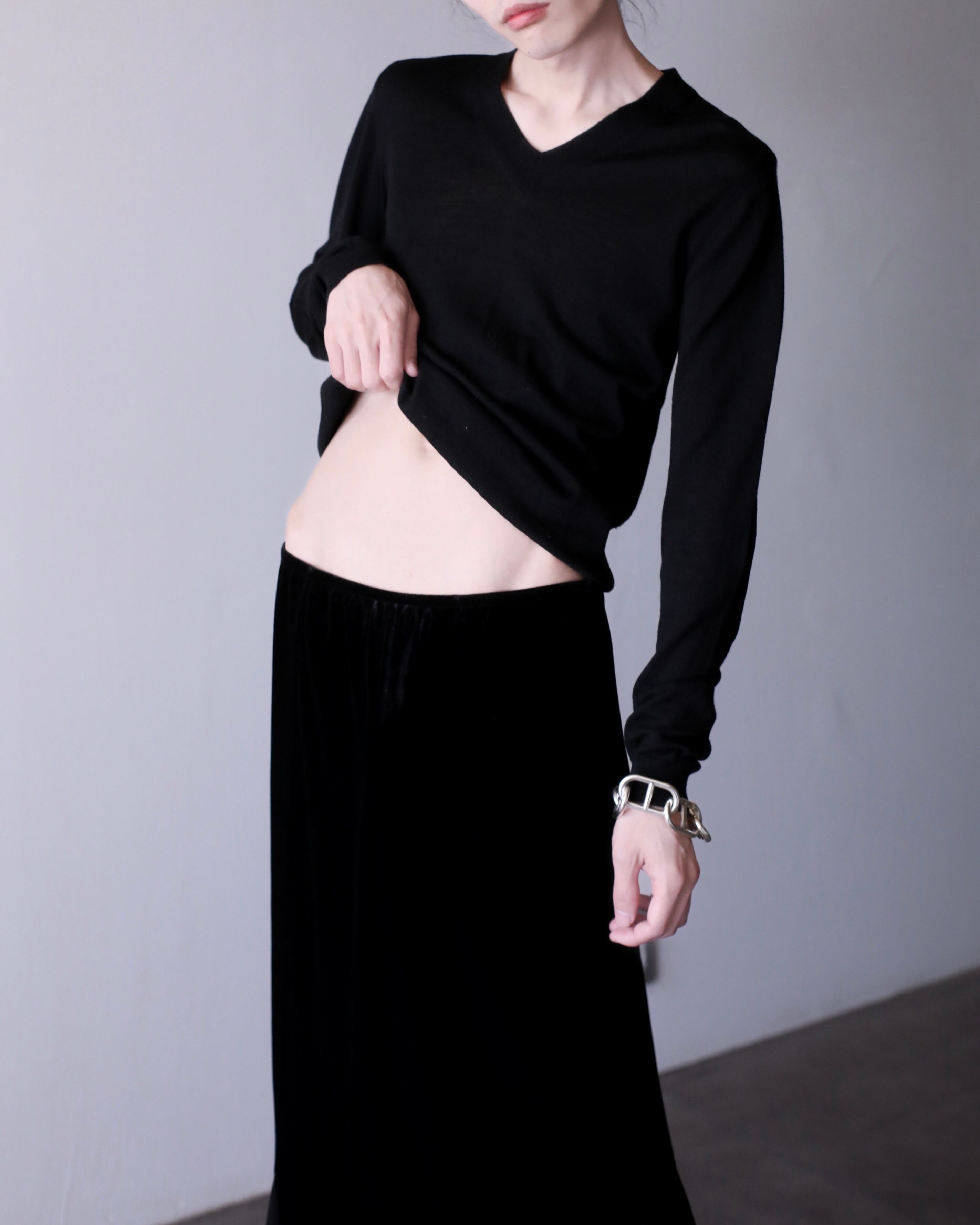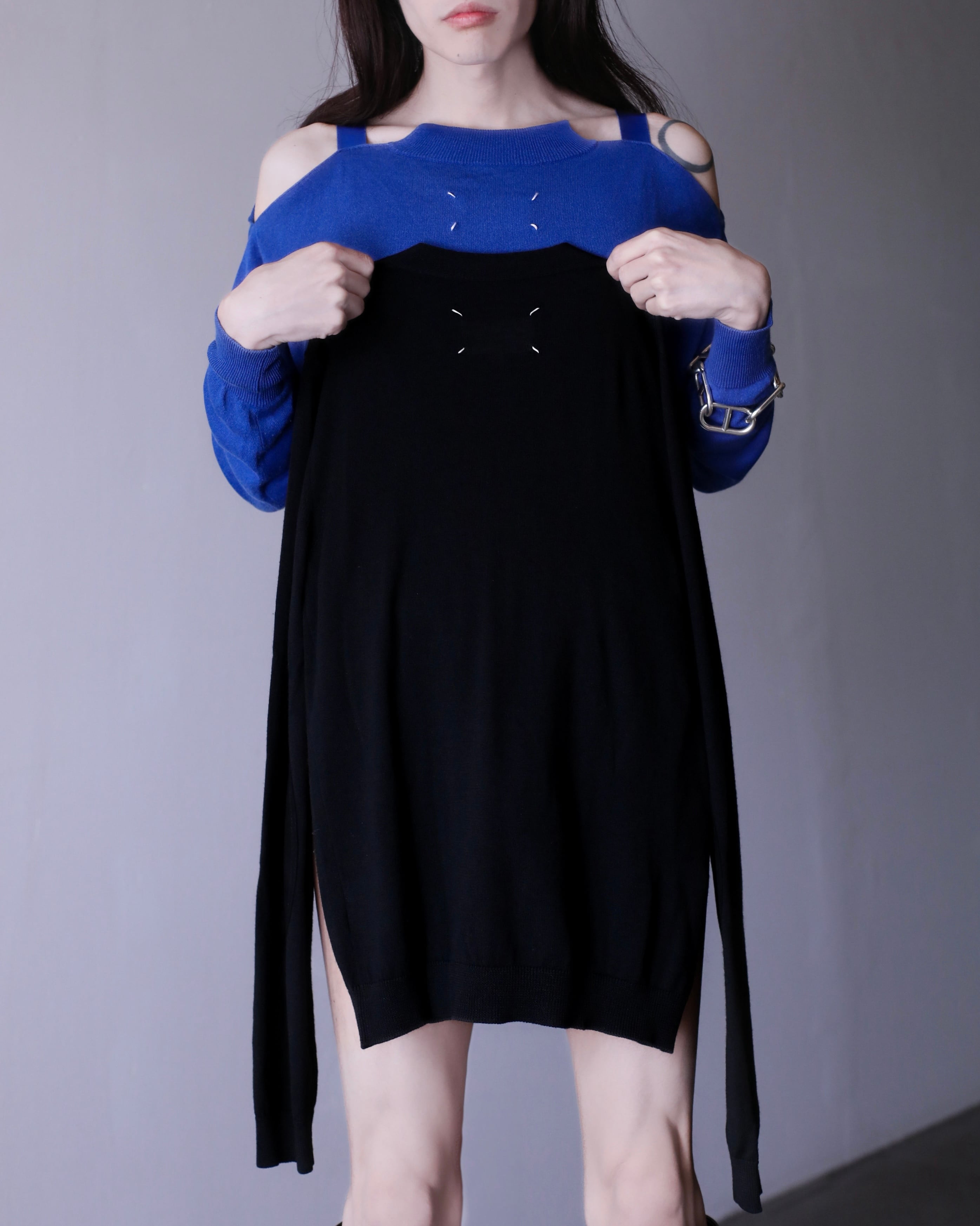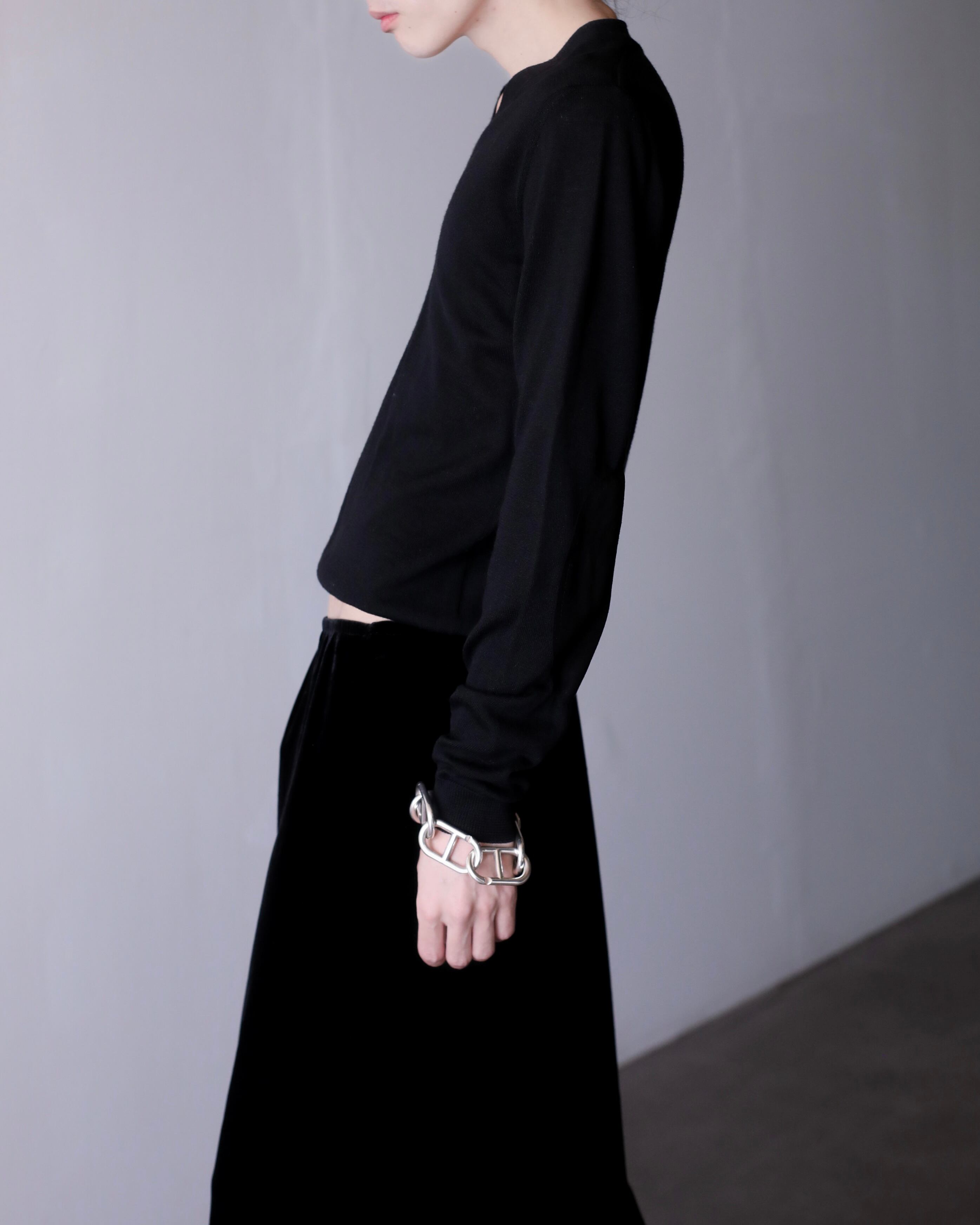 Maison Martin Margiela ④ lamb leather elbow patch wool fabric v-neck knit top Made In Italy