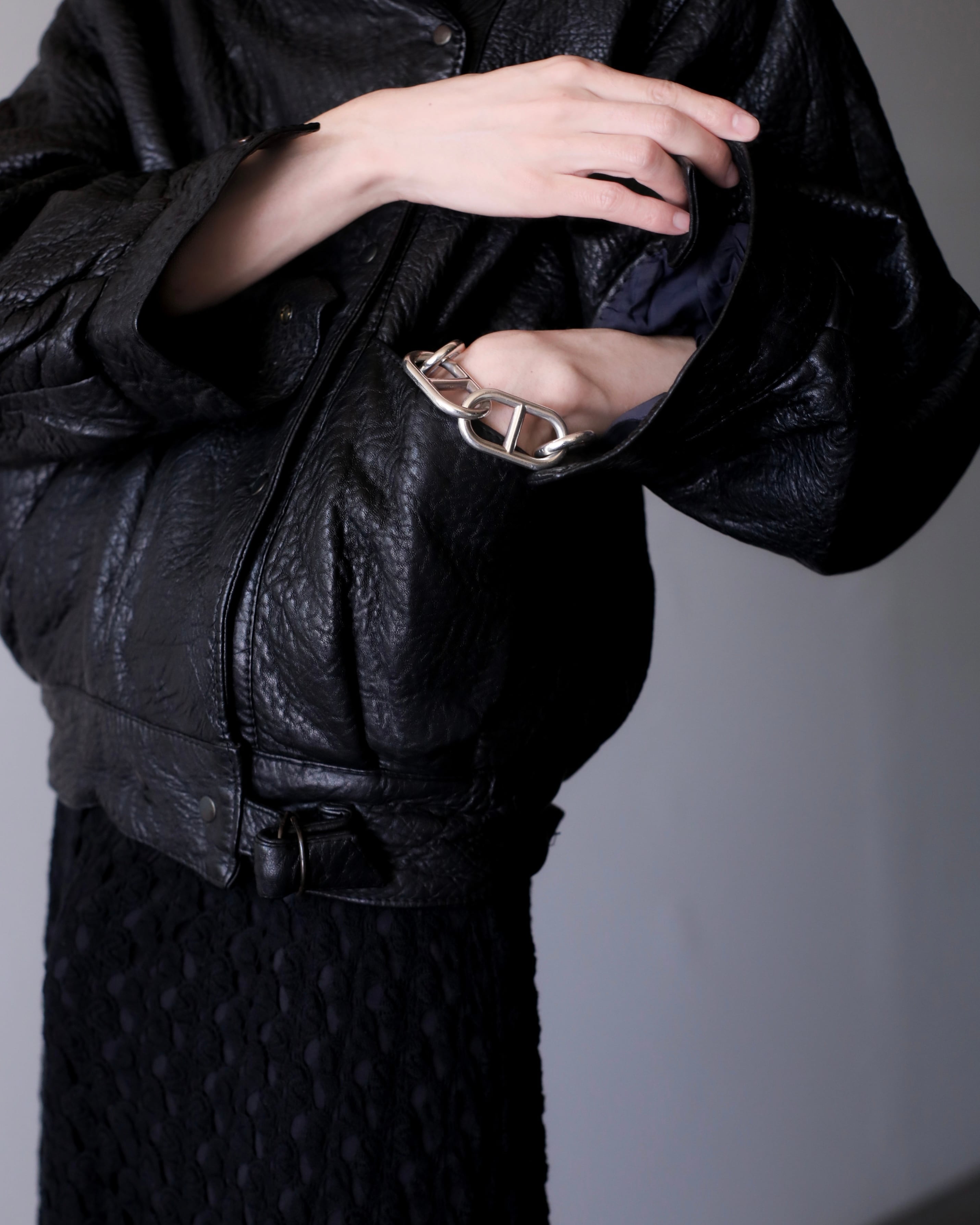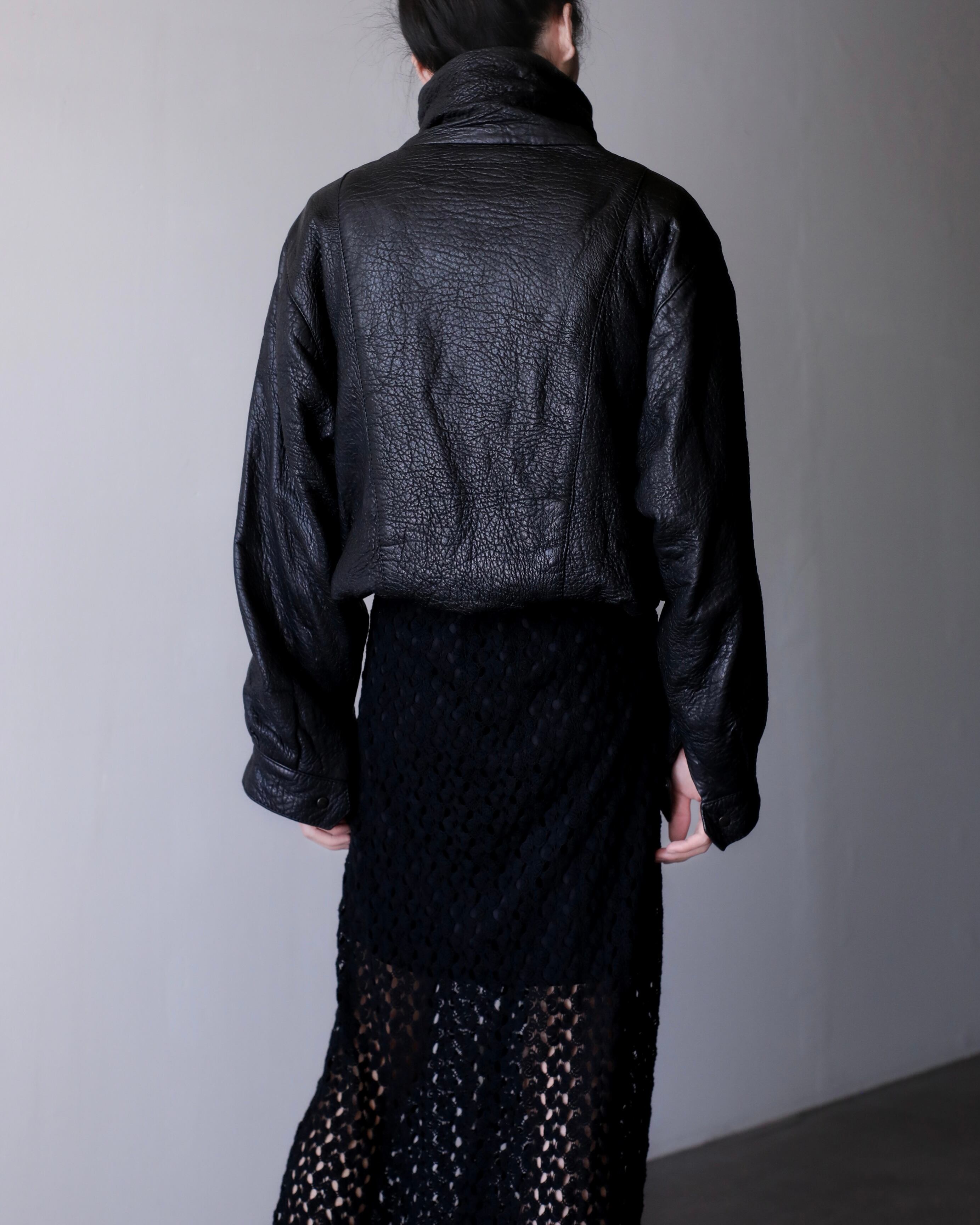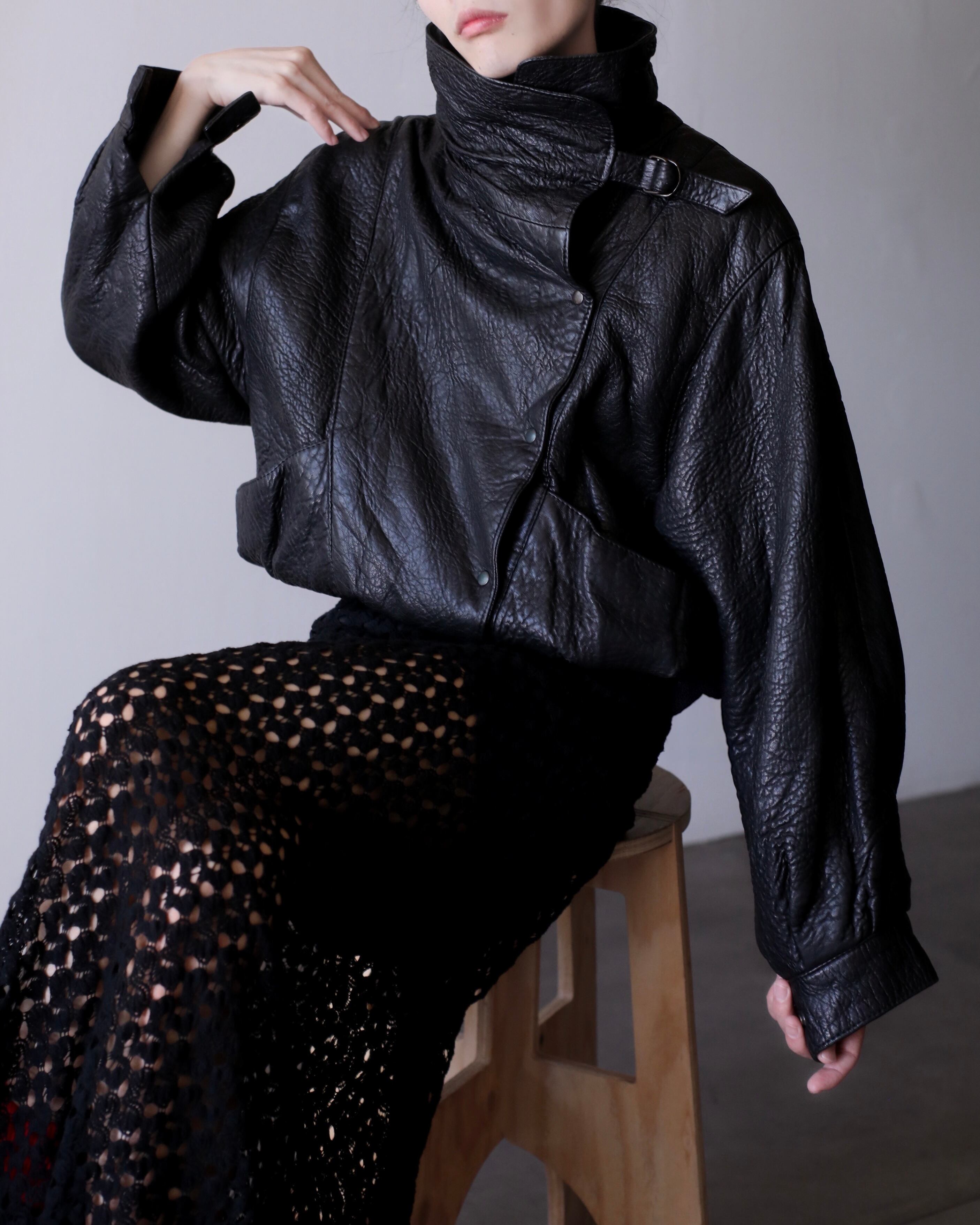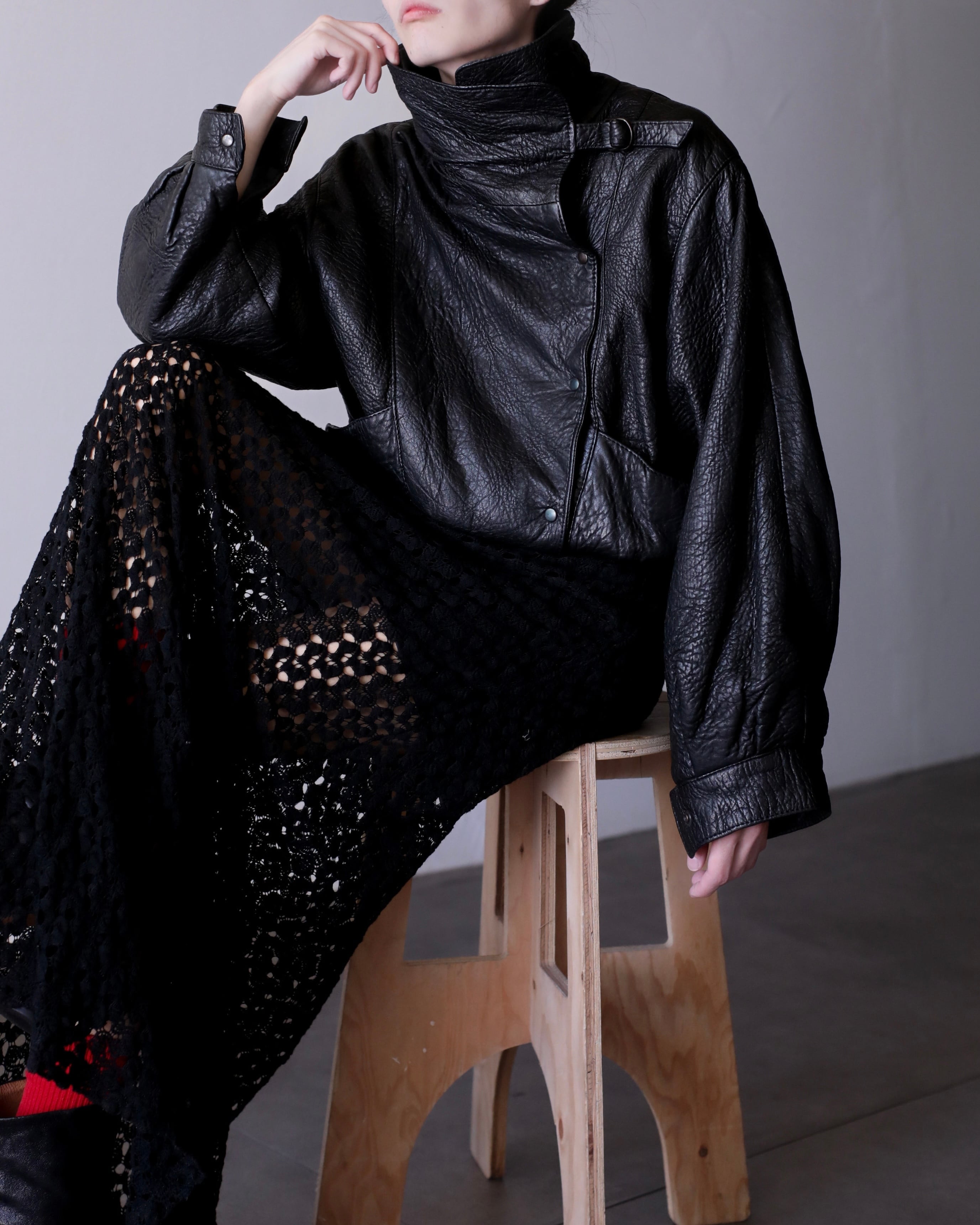 1980s special leather stand collar hi-neck design short length jacket oversized made in Spain