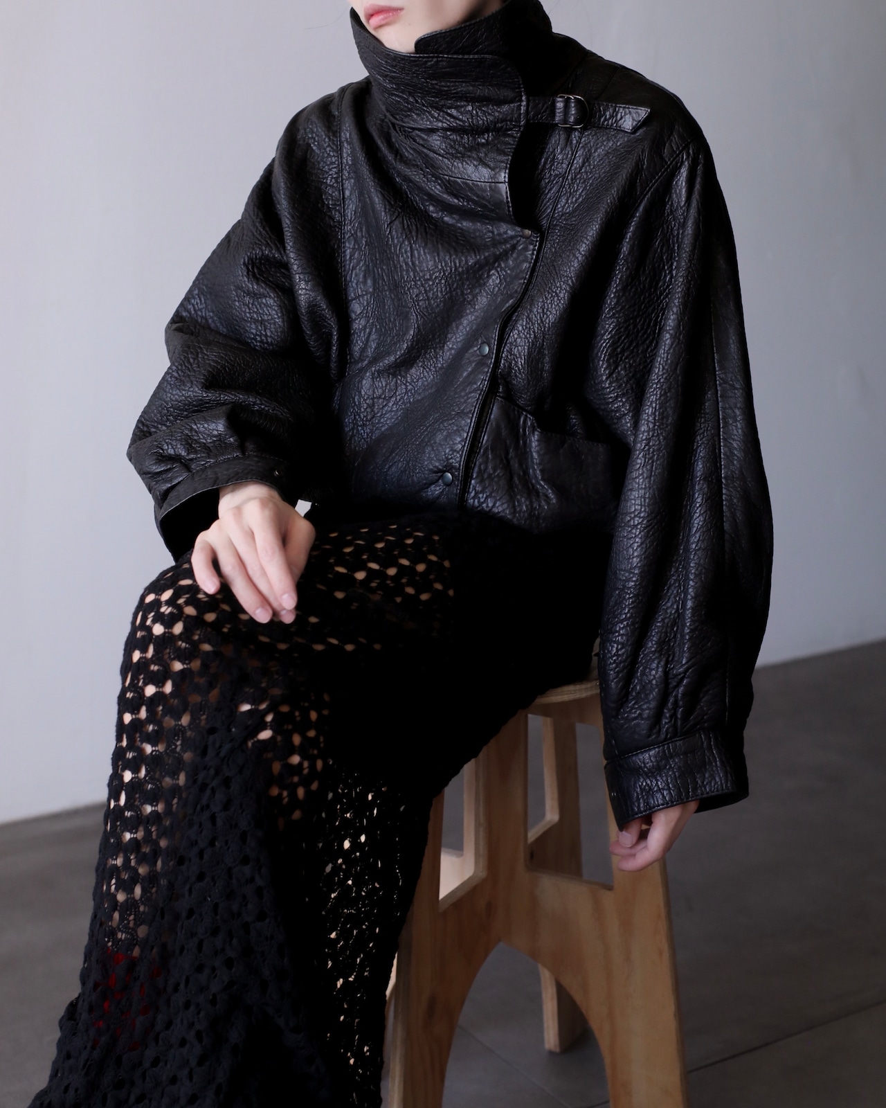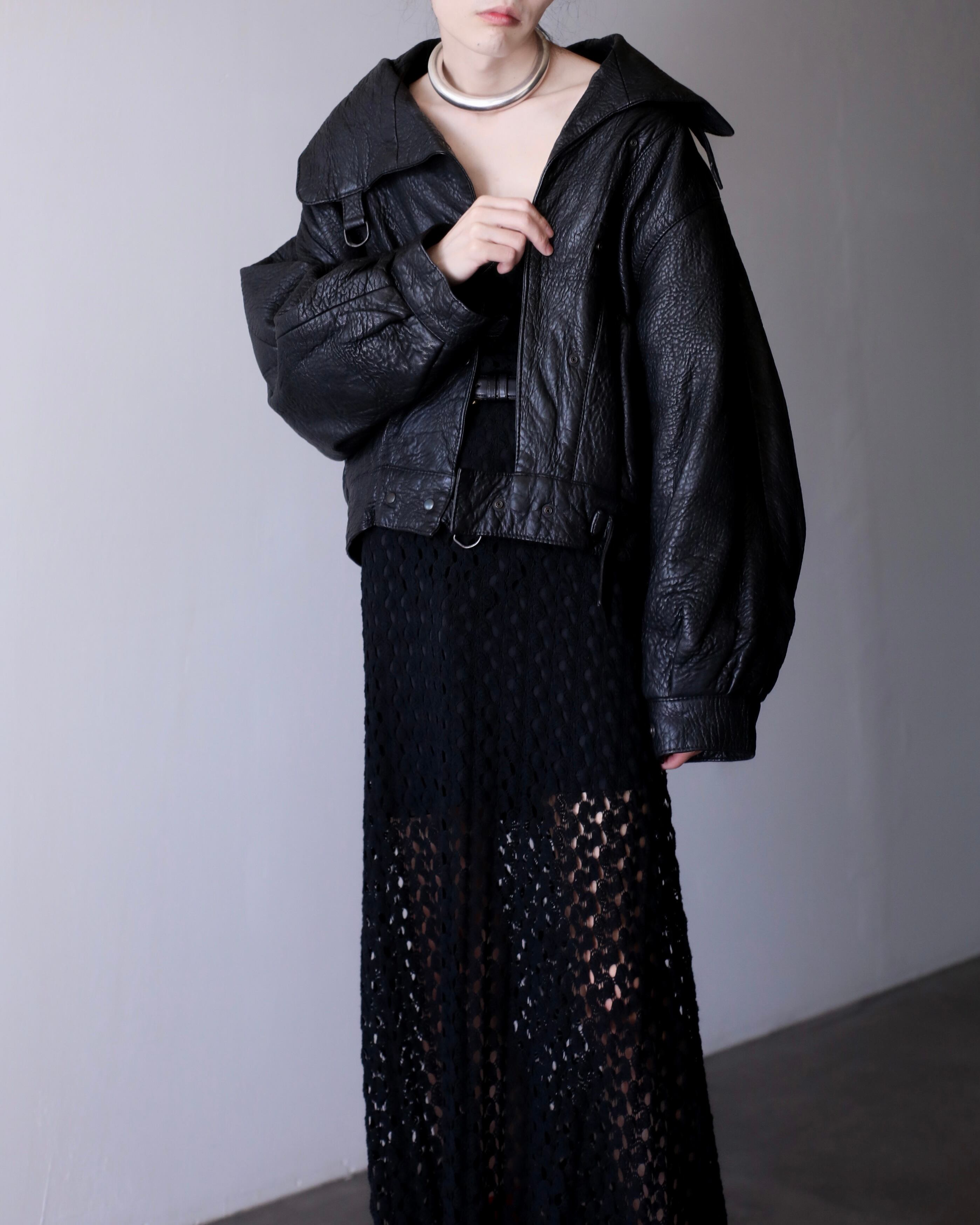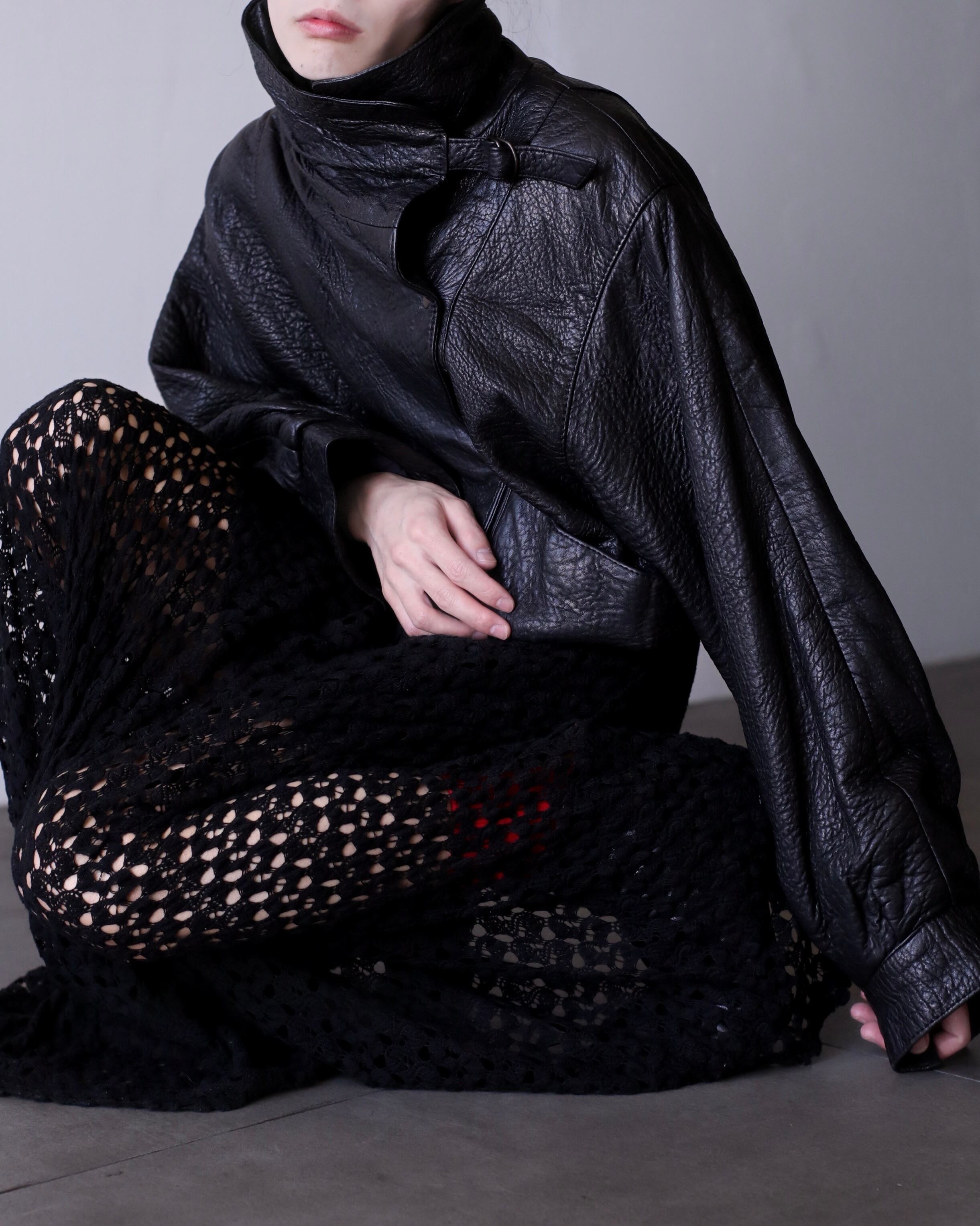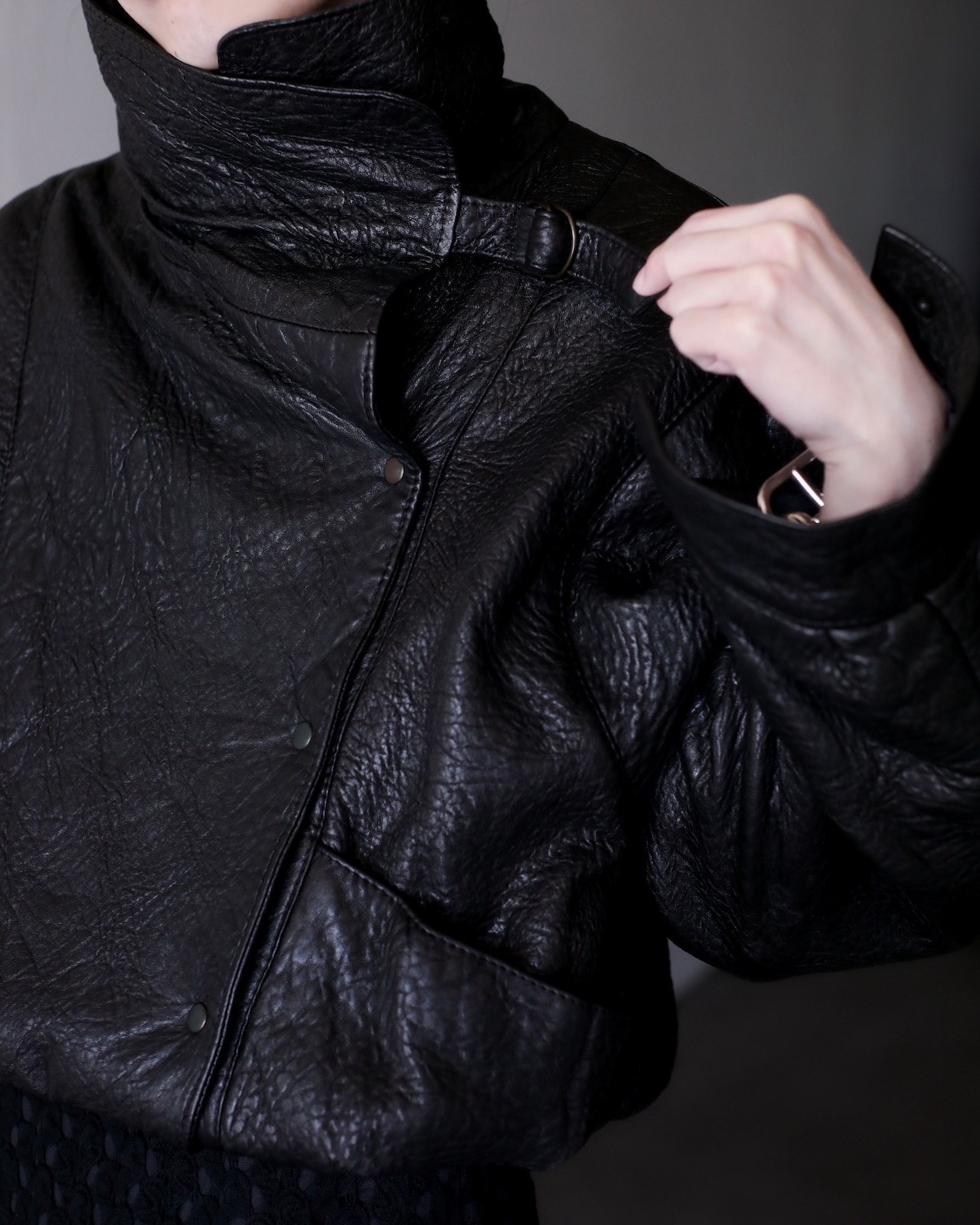1980s special leather stand collar hi-neck design short length jacket oversized made in Spain