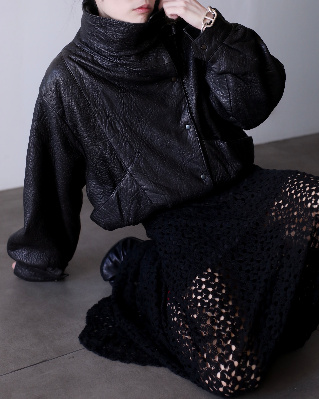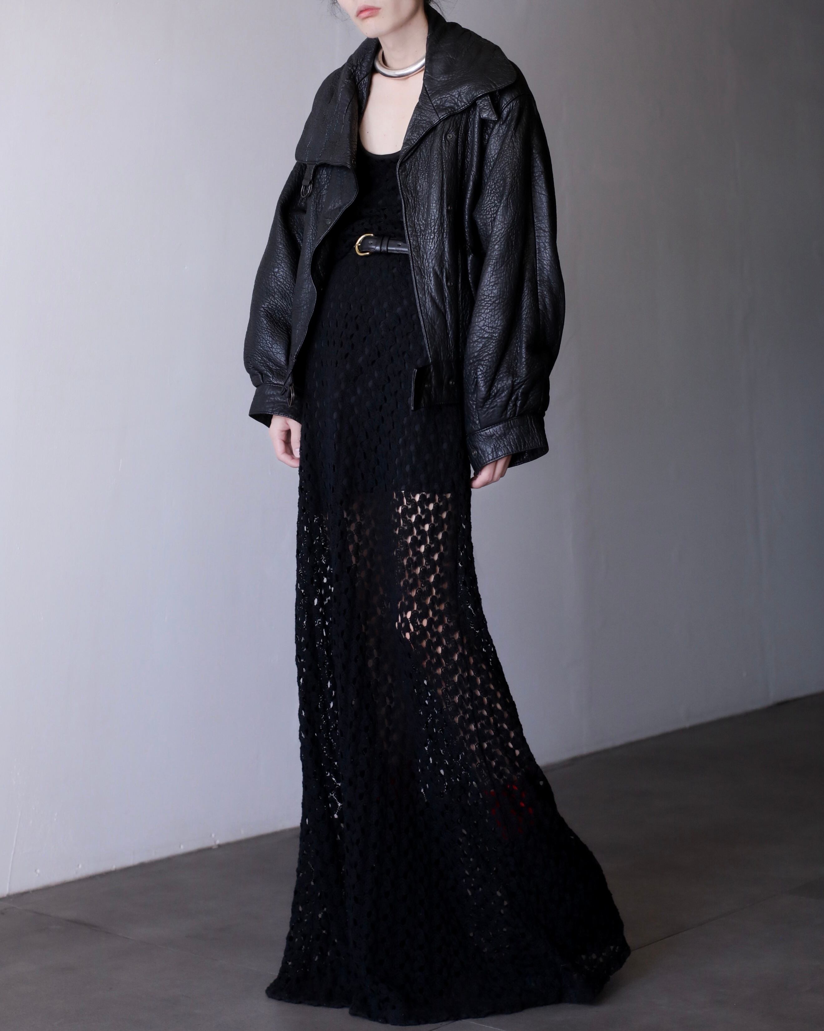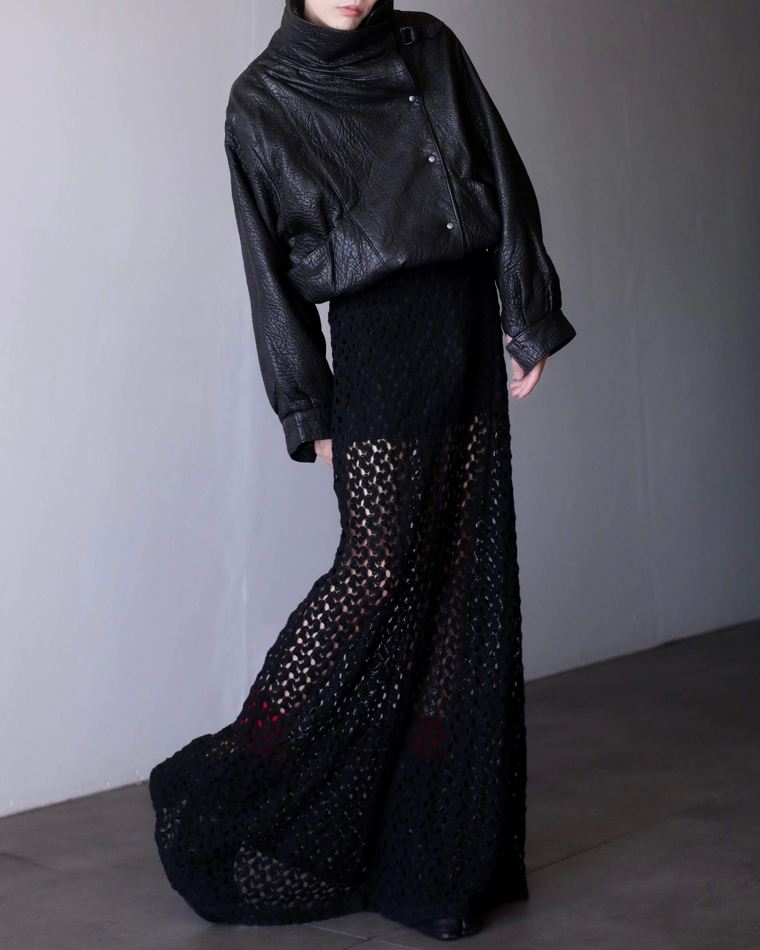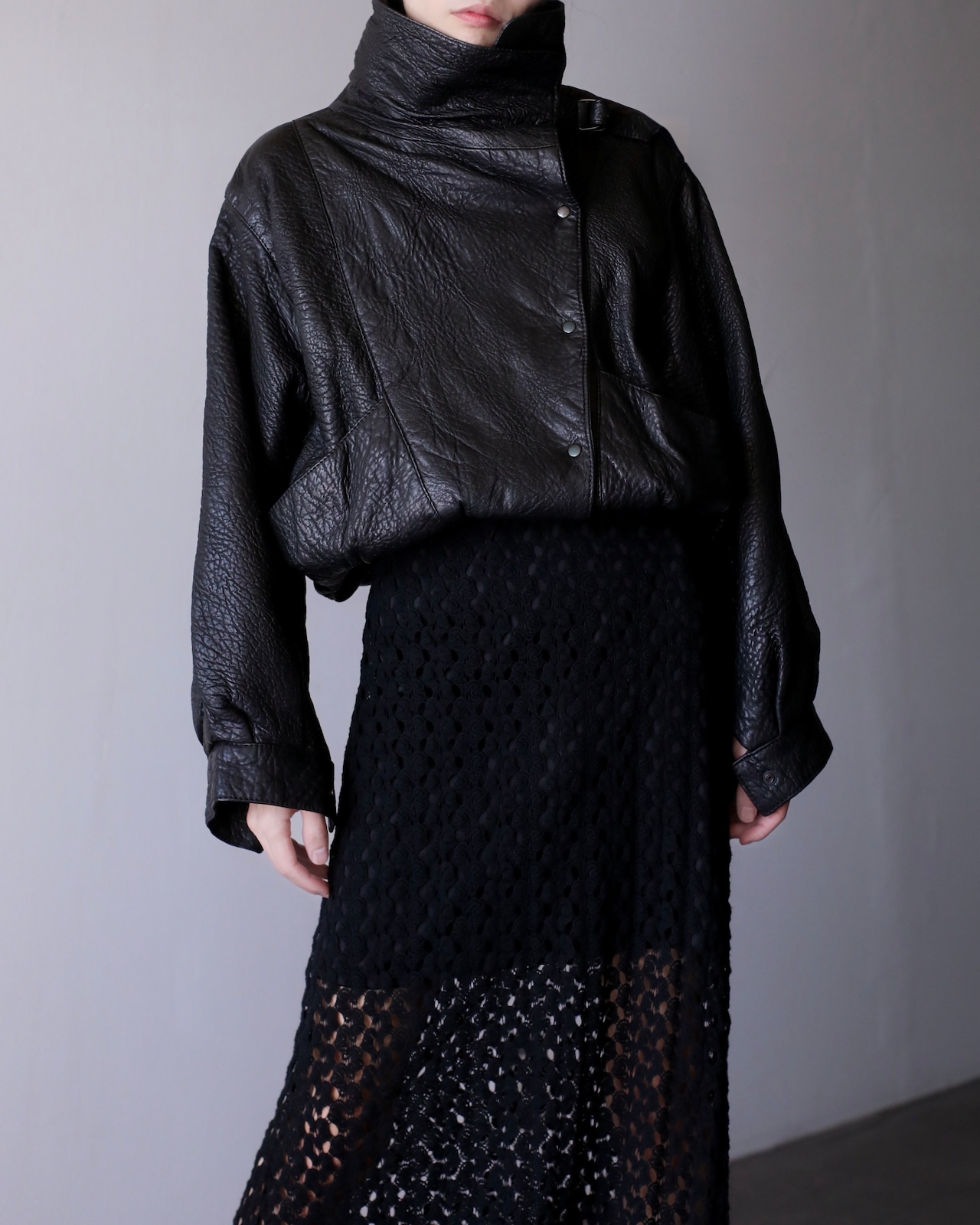 1980s special leather stand collar hi-neck design short length jacket oversized made in Spain