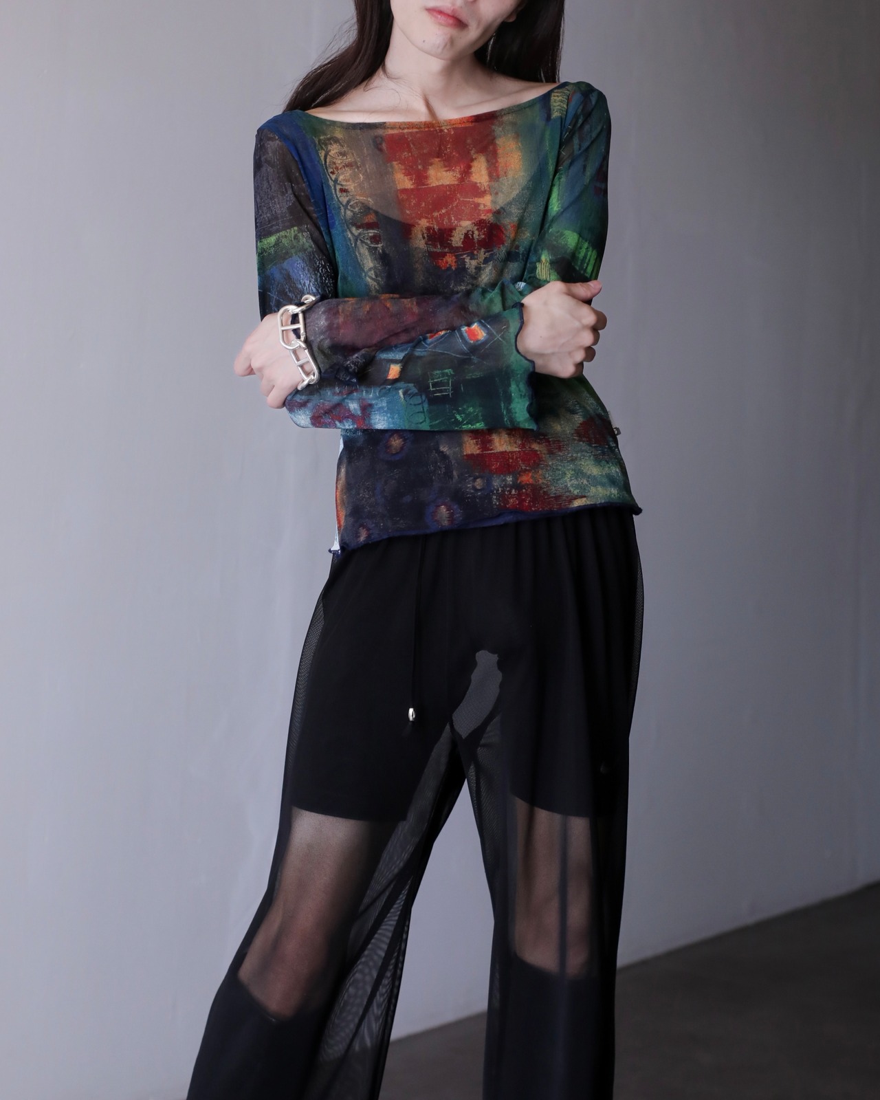 art design power net sheer top made in Spain
