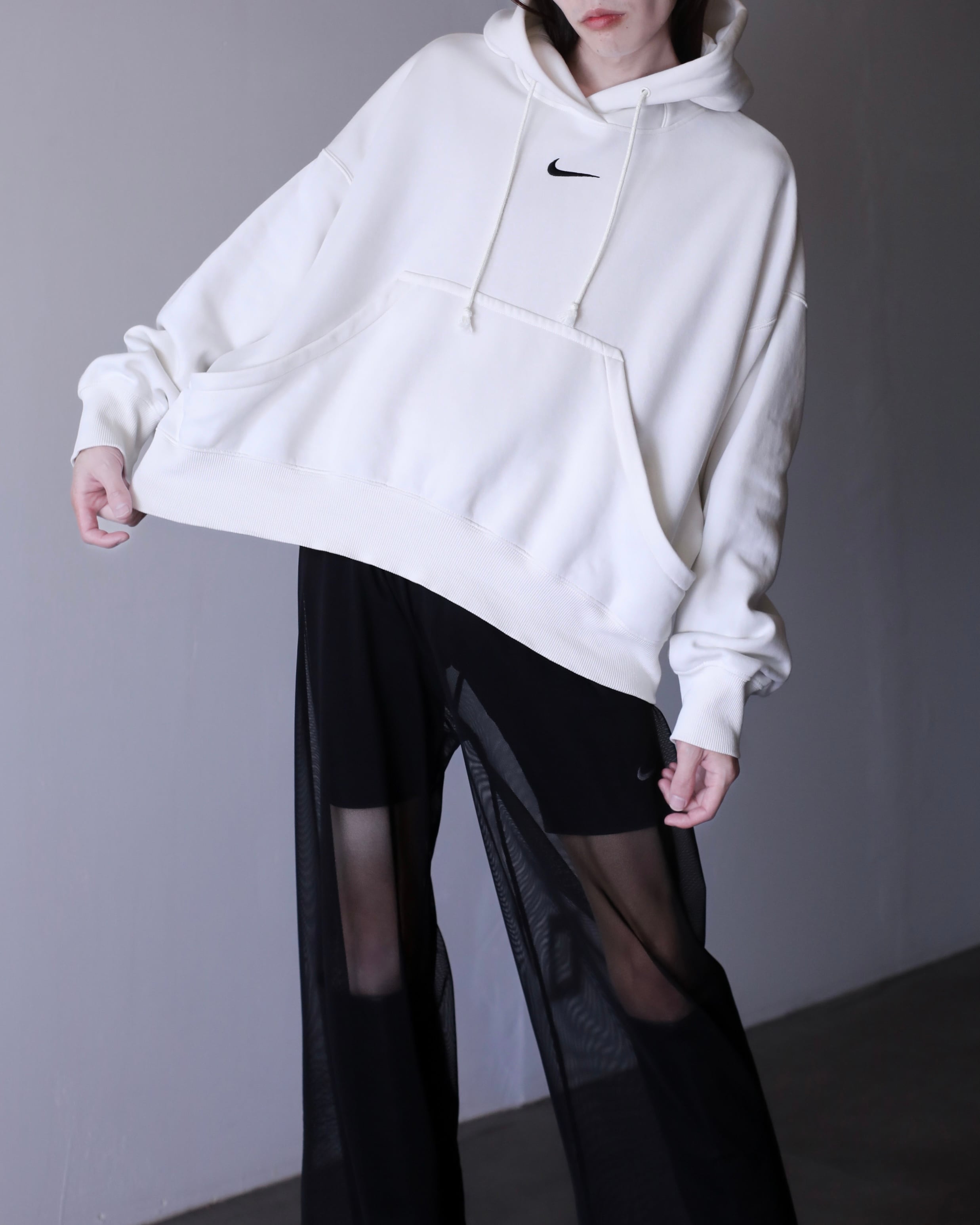 NIKE center swoosh embroidery short & wide silhouette sweat hoodie