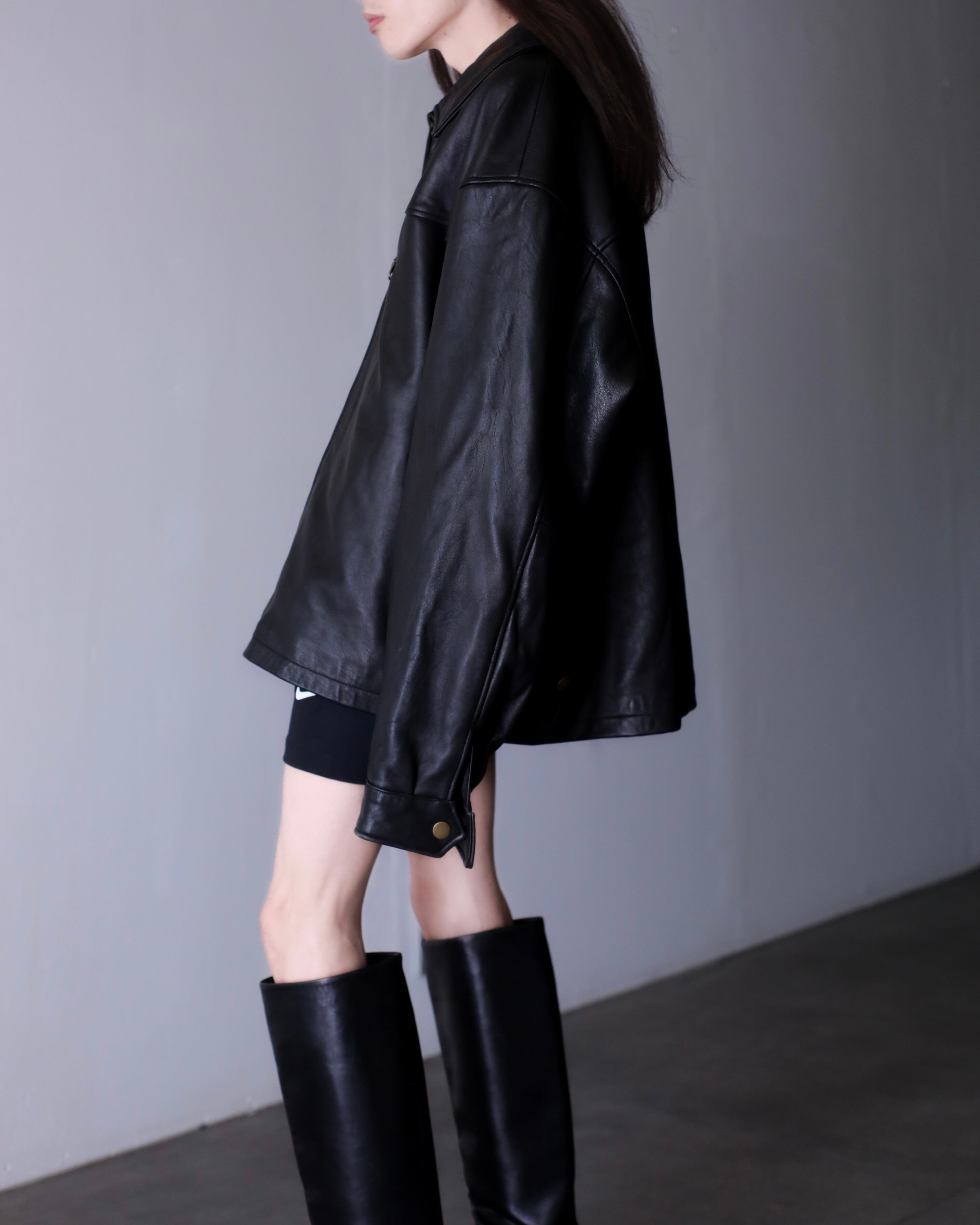 こちらはラムレザーで軽やか、肩がしっかりと体に沿っておちてくれるので着膨れ感がなくさらっとご着用いただけます。