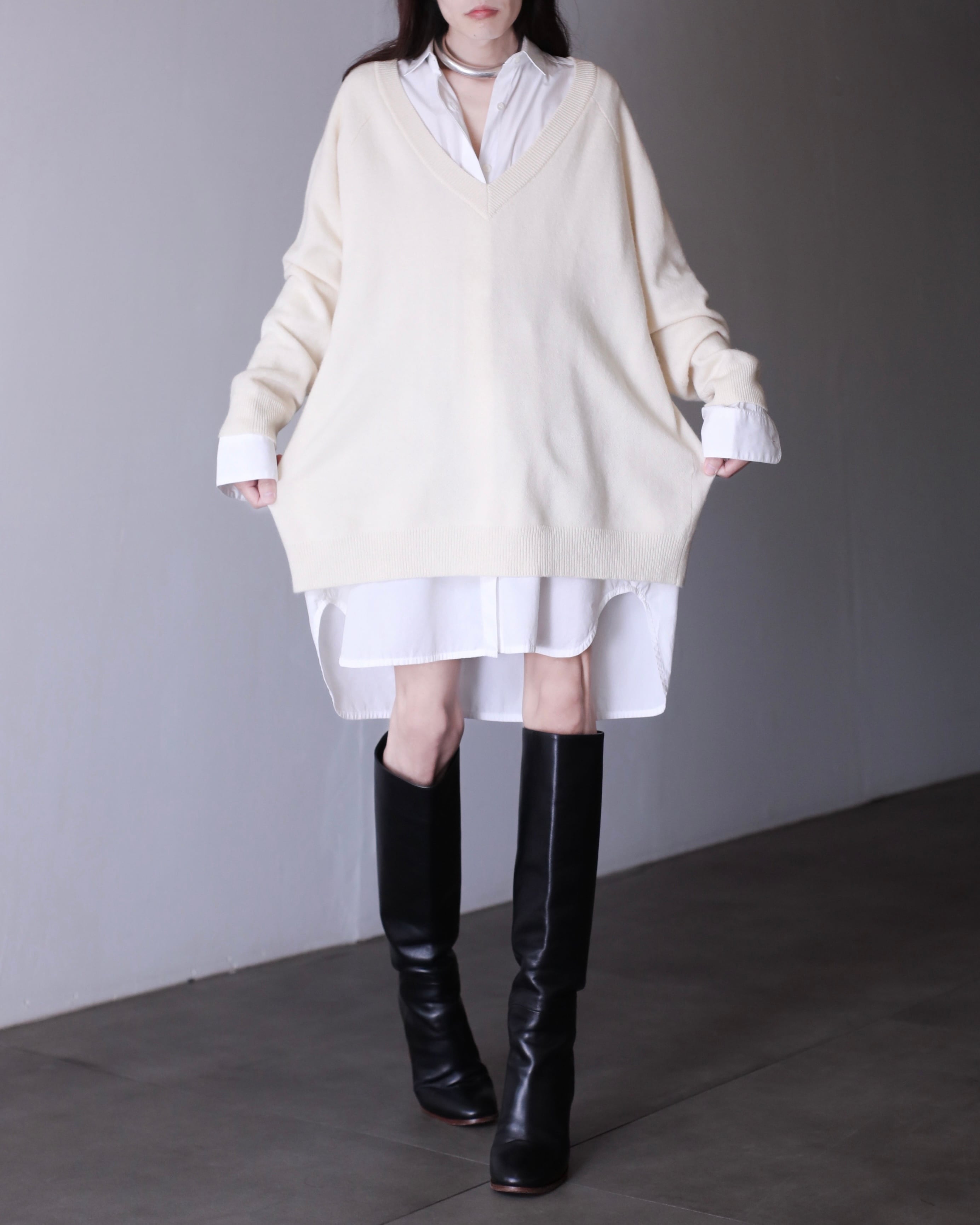 カシミヤミックスオーバーニット。