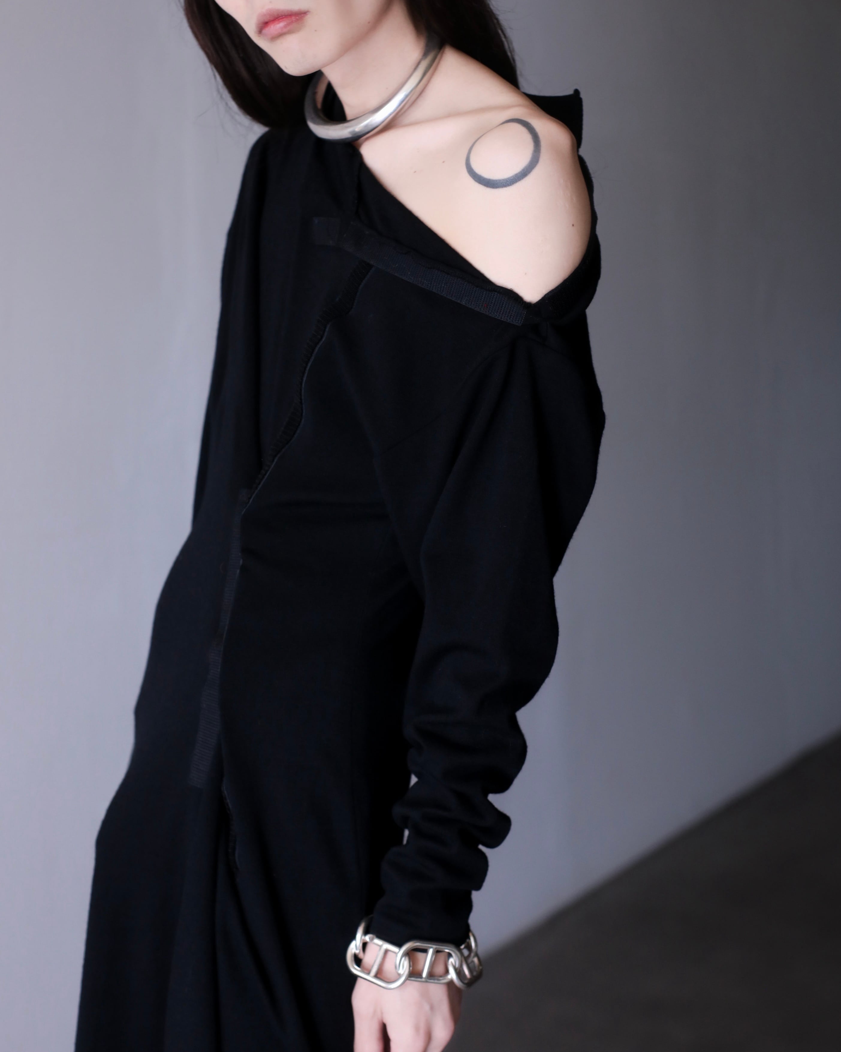 首元のベルクロでオフショルダーにもできるデザイン。
