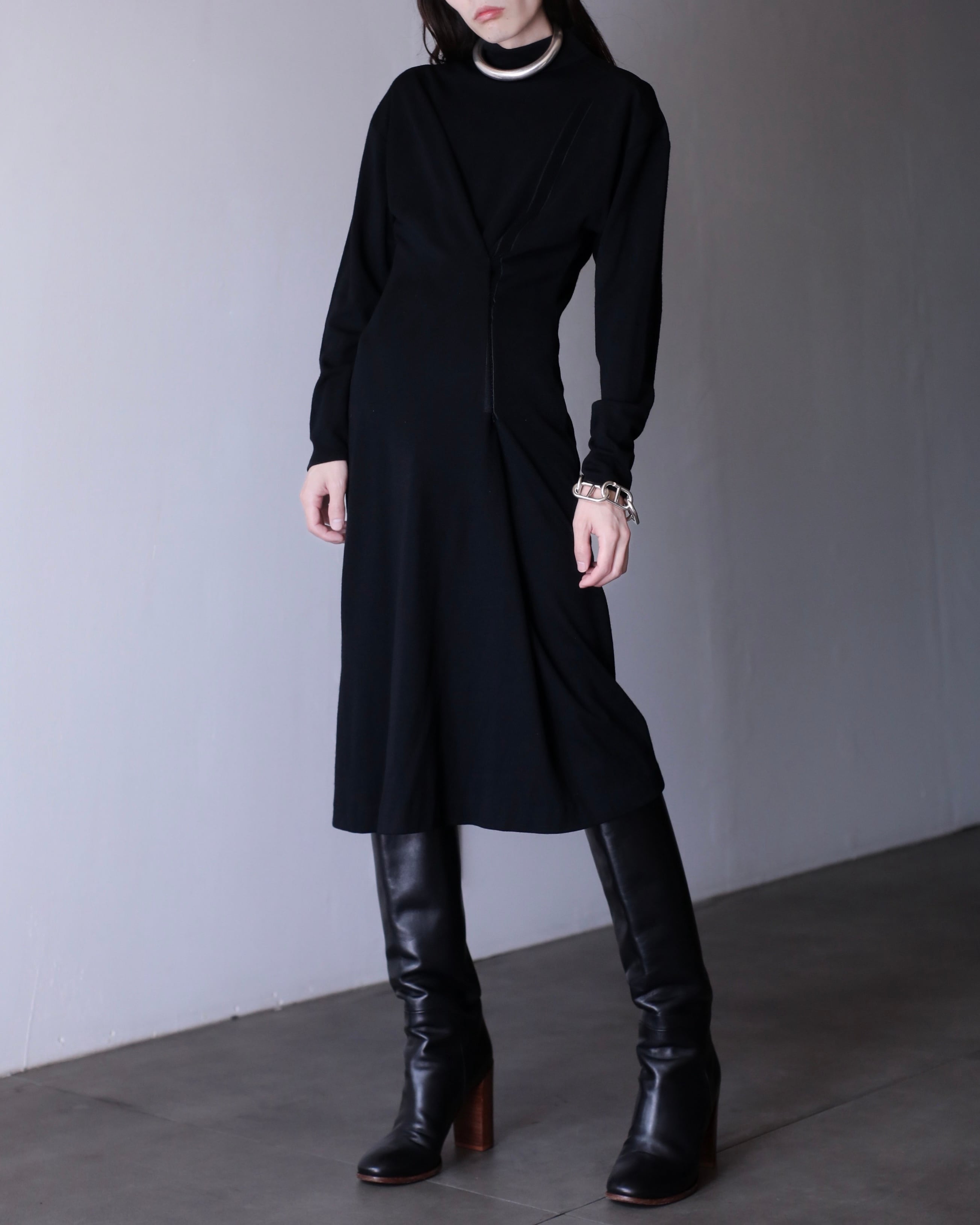 1990s Jean Paul GAULTIER velcro design hi-neck & off shoulder knit dress one piece