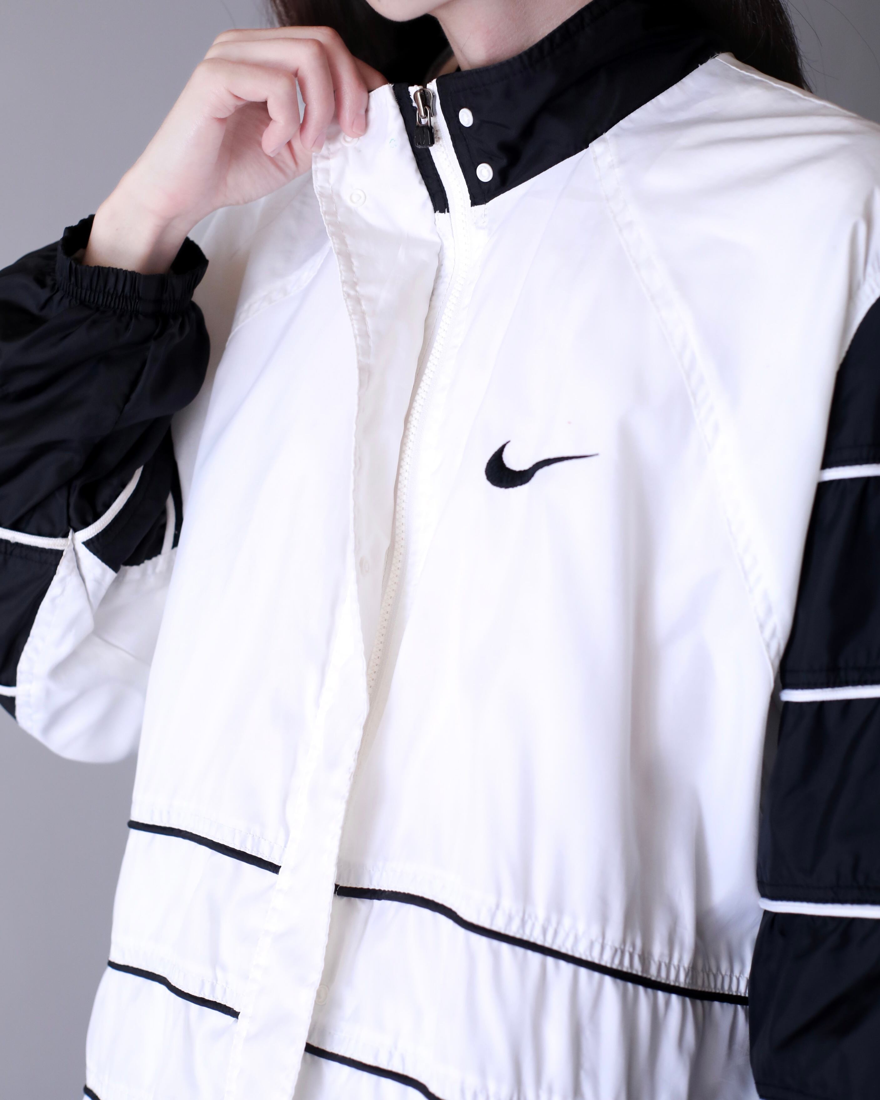 1990s NIKE layered line design big swoosh embroidery hi-neck nylon jacket