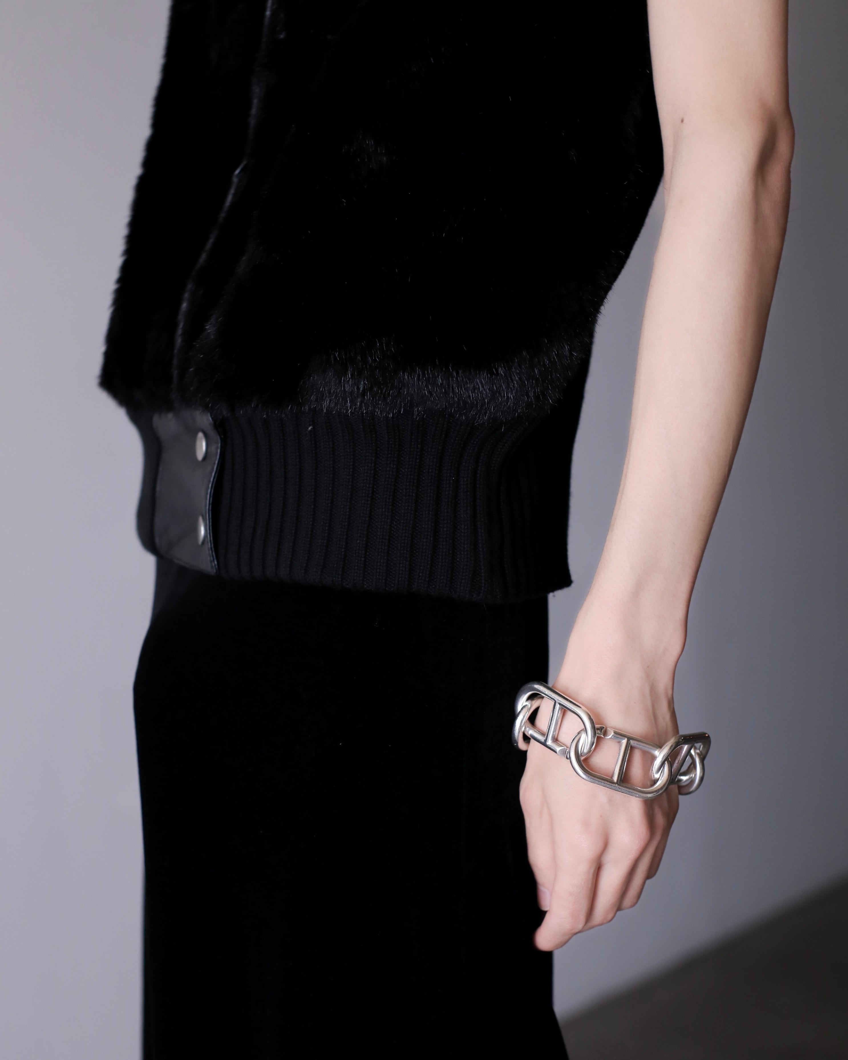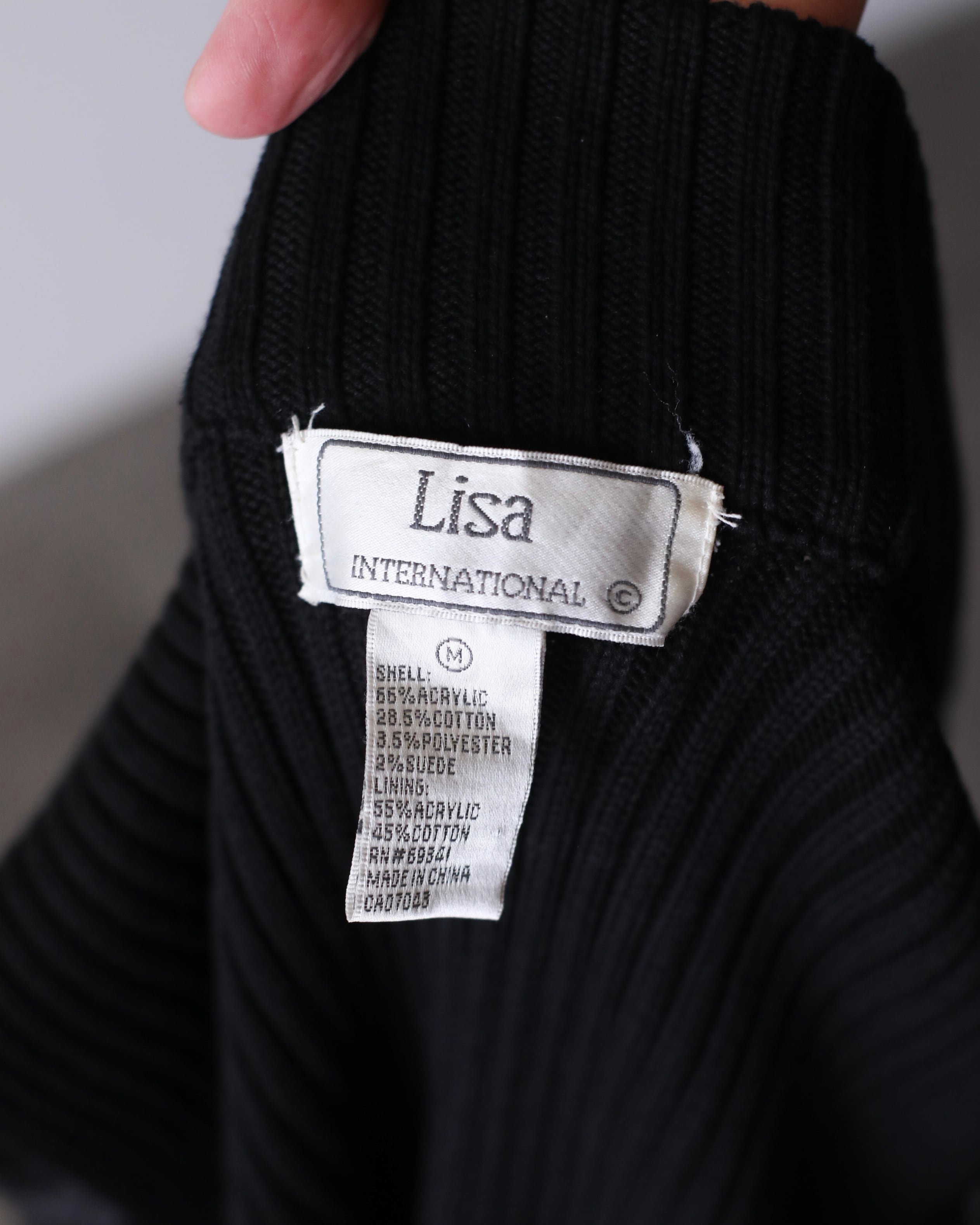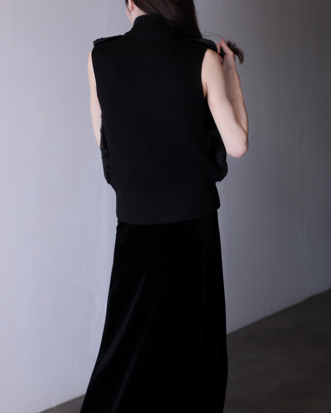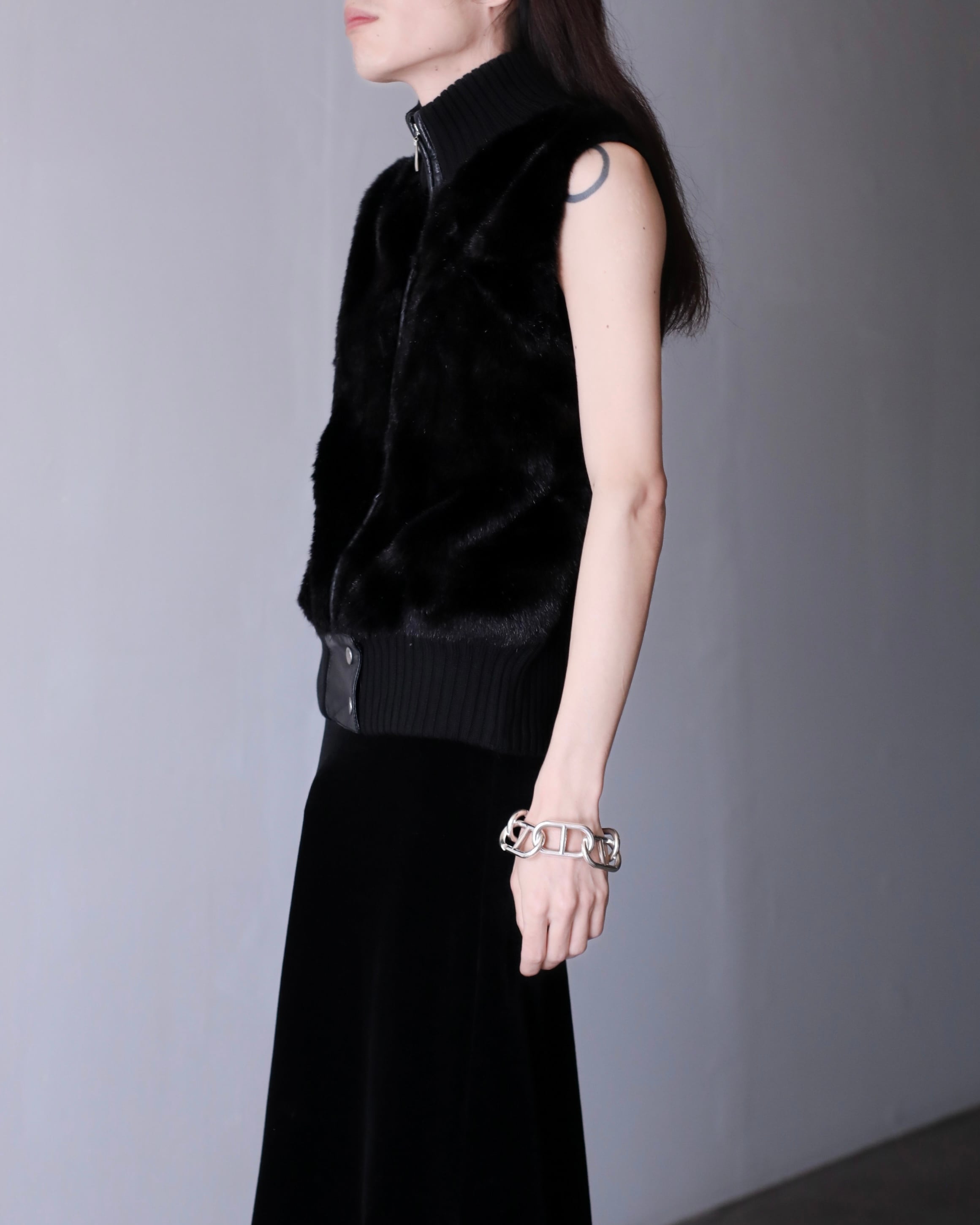 1990s fur × knit × leather "mofu mofu" hi-neck design vest