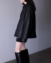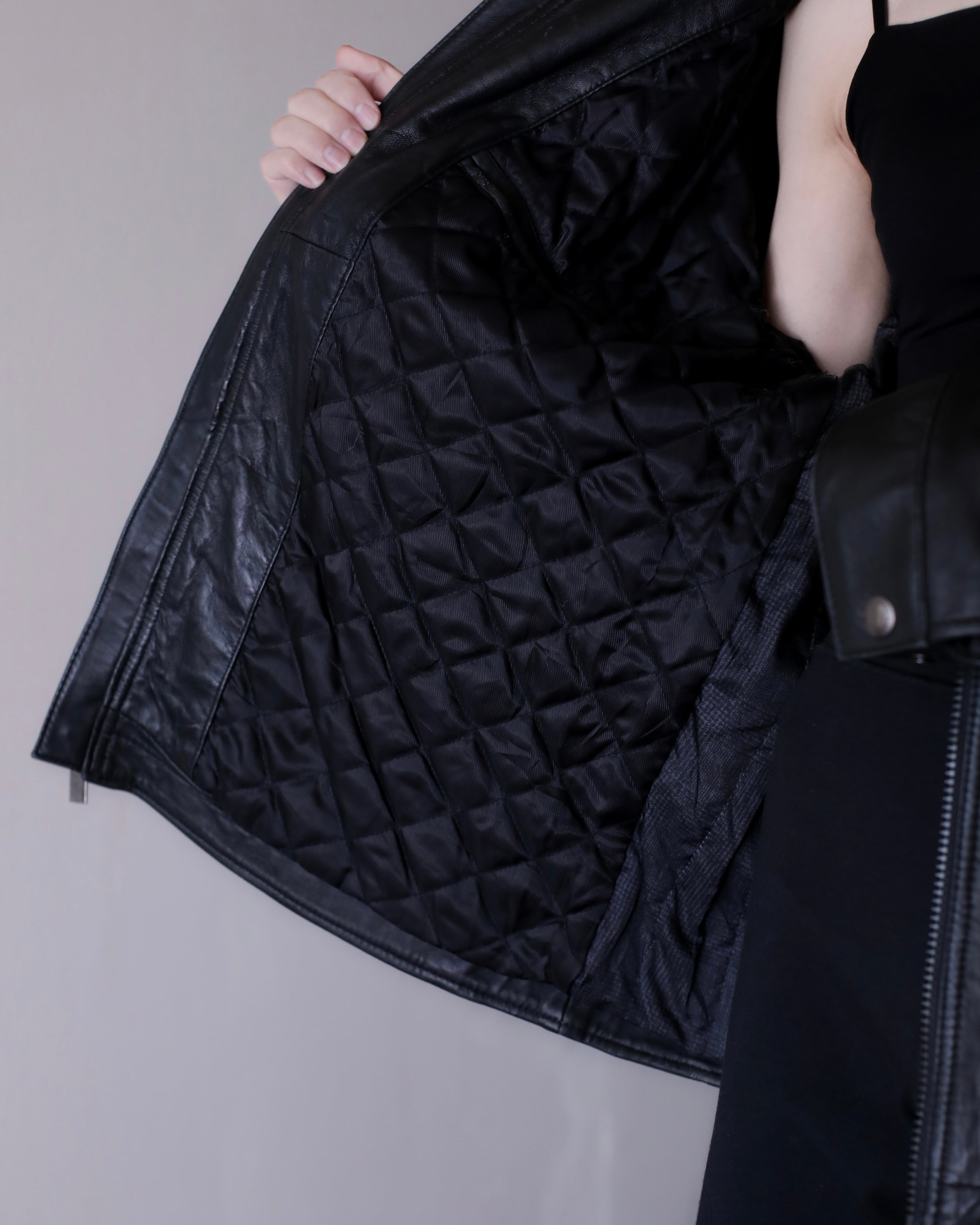こちらはラムレザーで軽やか、肩がしっかりと体に沿っておちてくれるので着膨れ感がなくさらっとご着用いただけます。