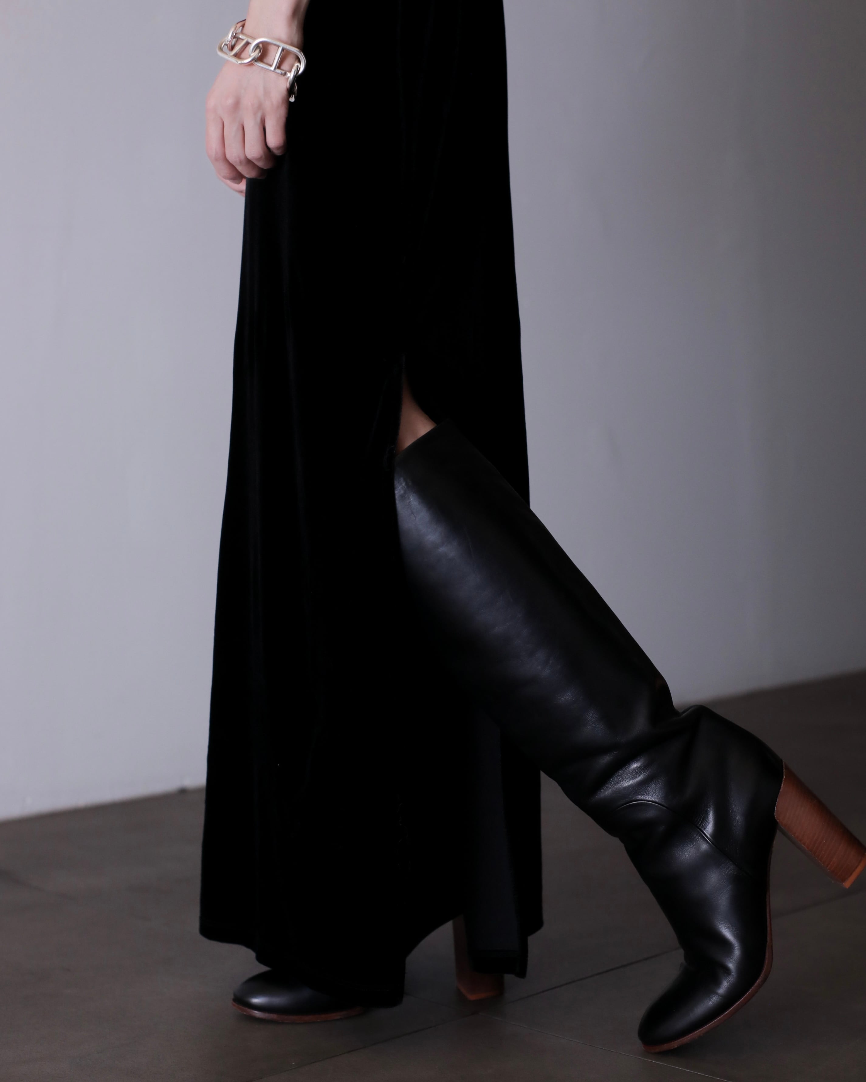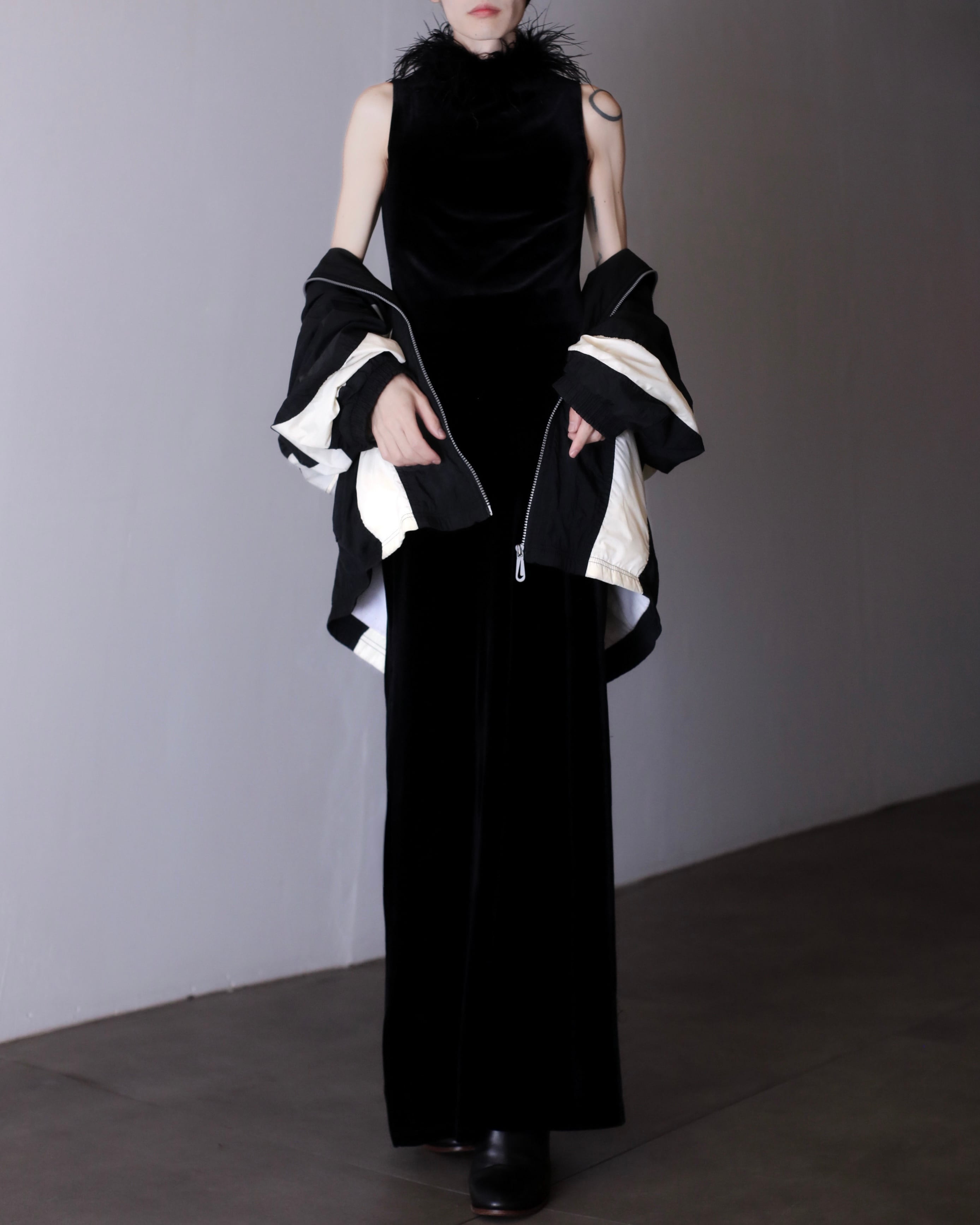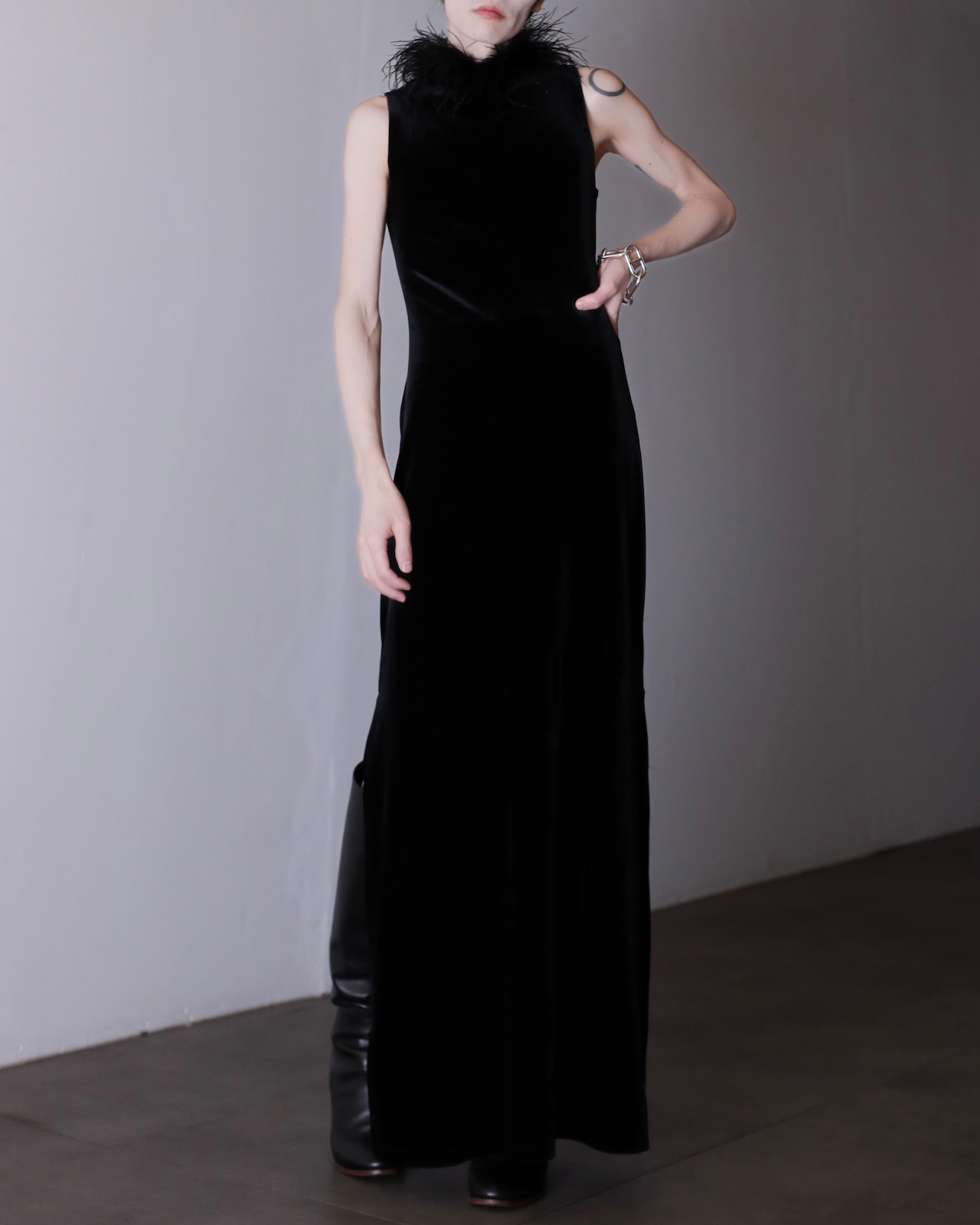 1980s velours × mofu mofu fur maxi length dress one piece Made In USA