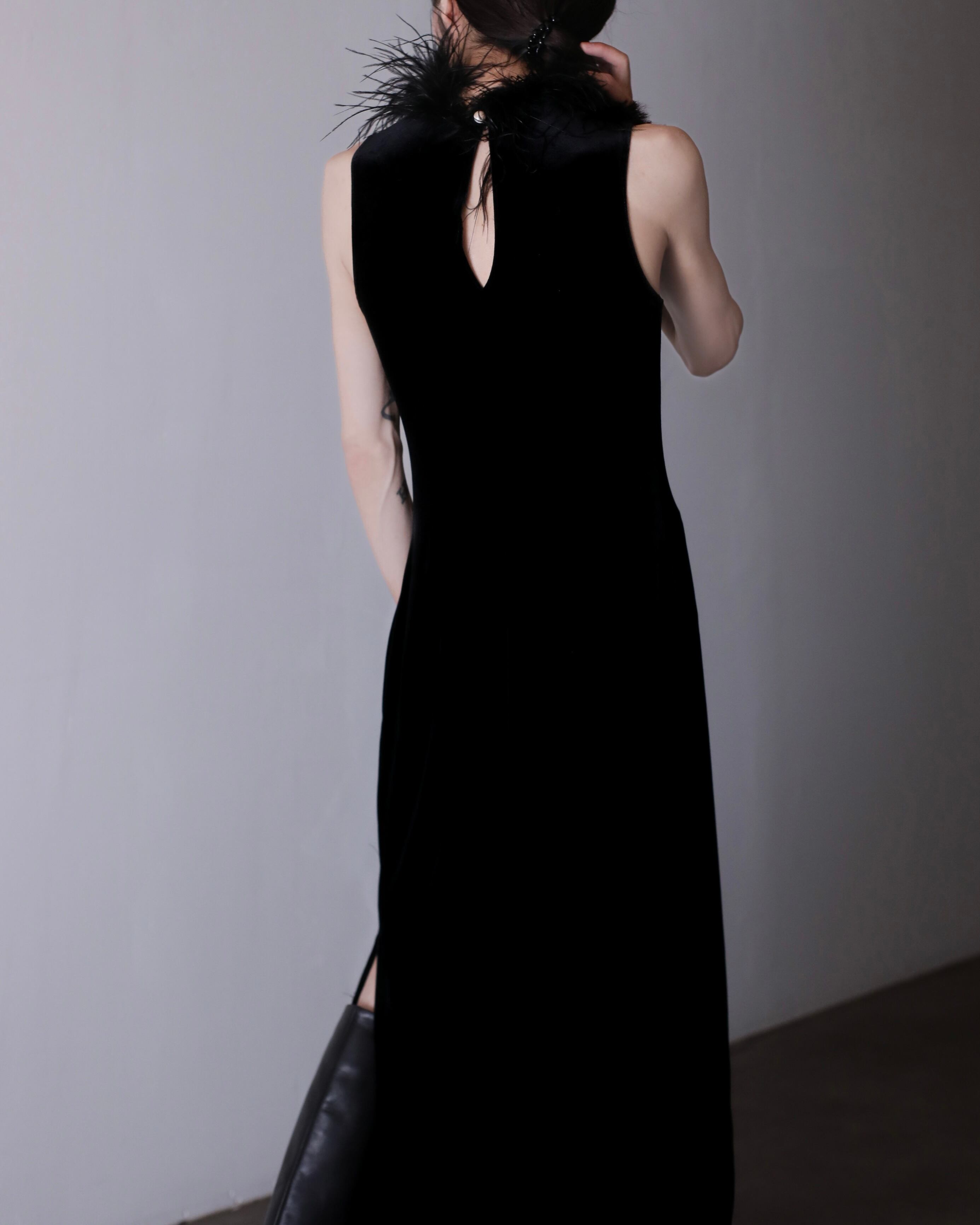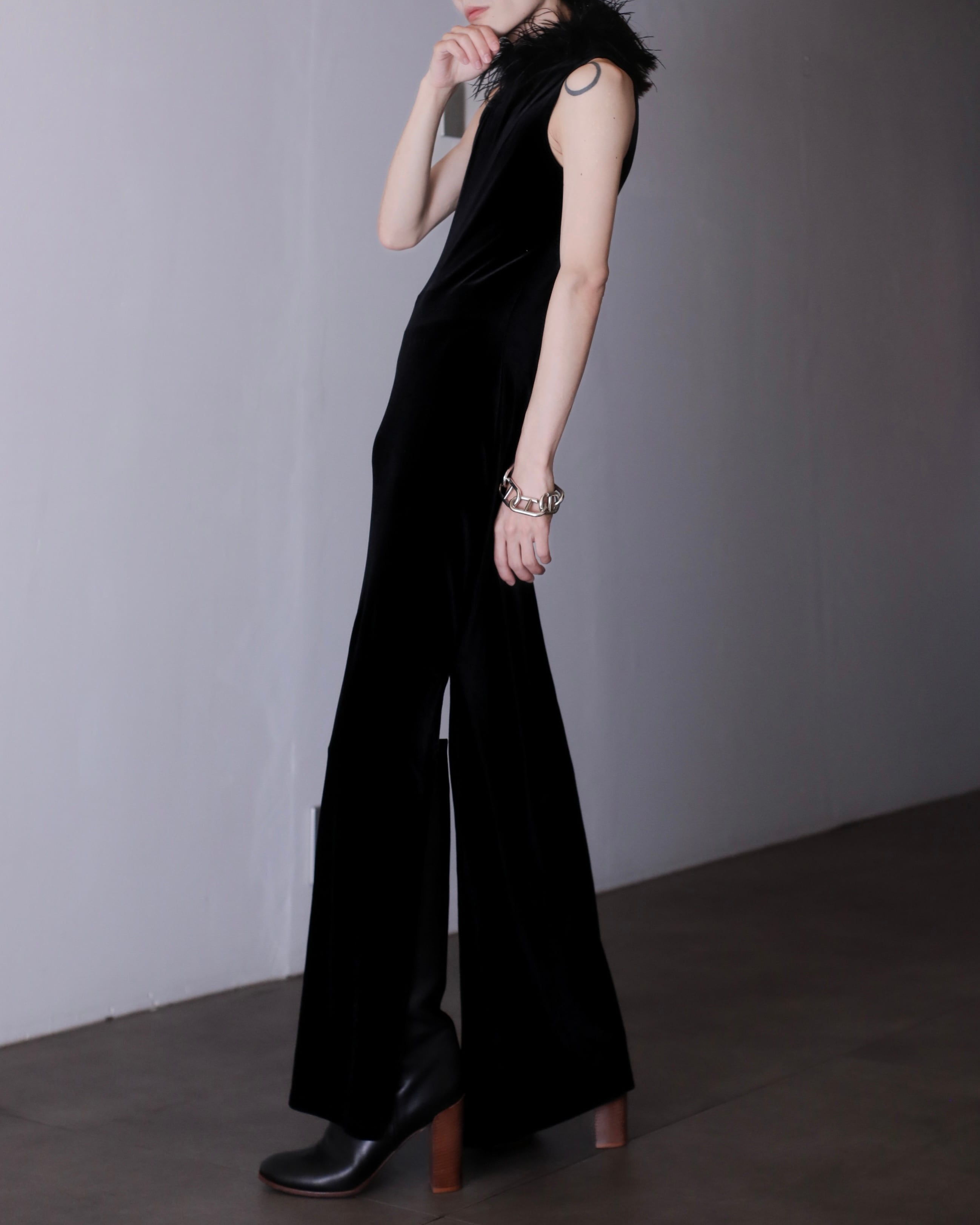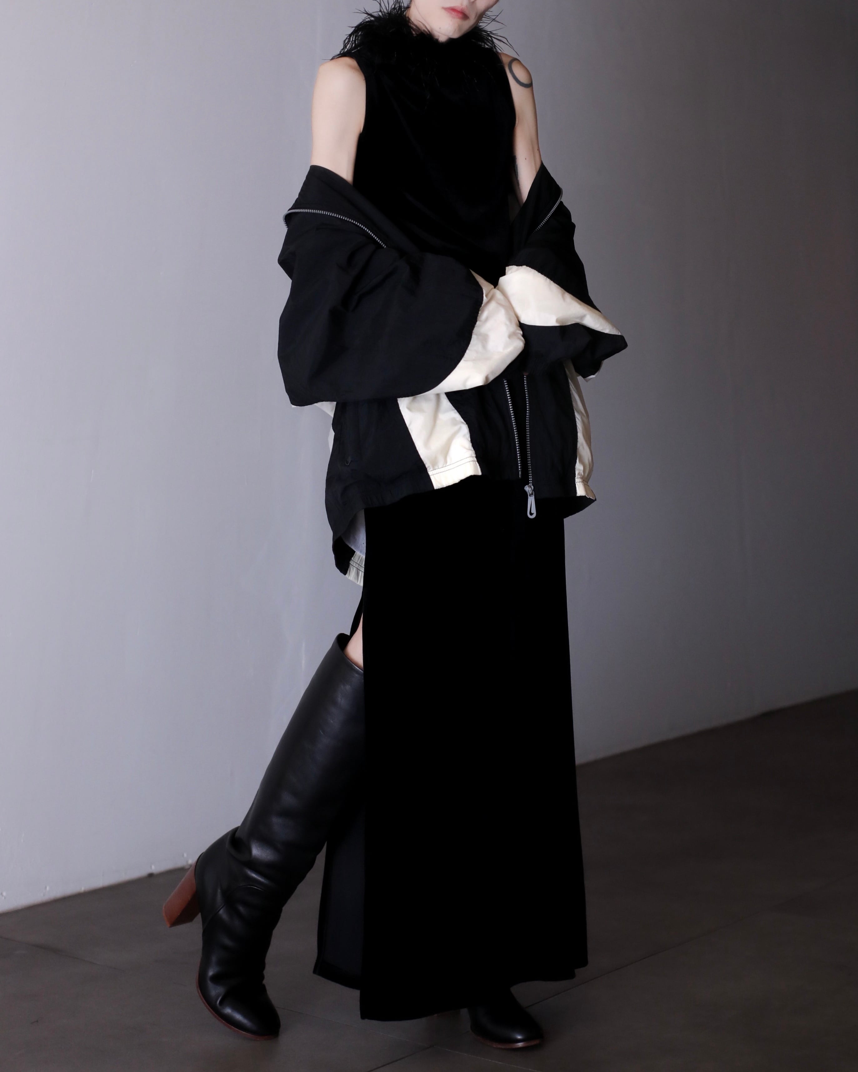 1980s velours × mofu mofu fur maxi length dress one piece Made In USA
