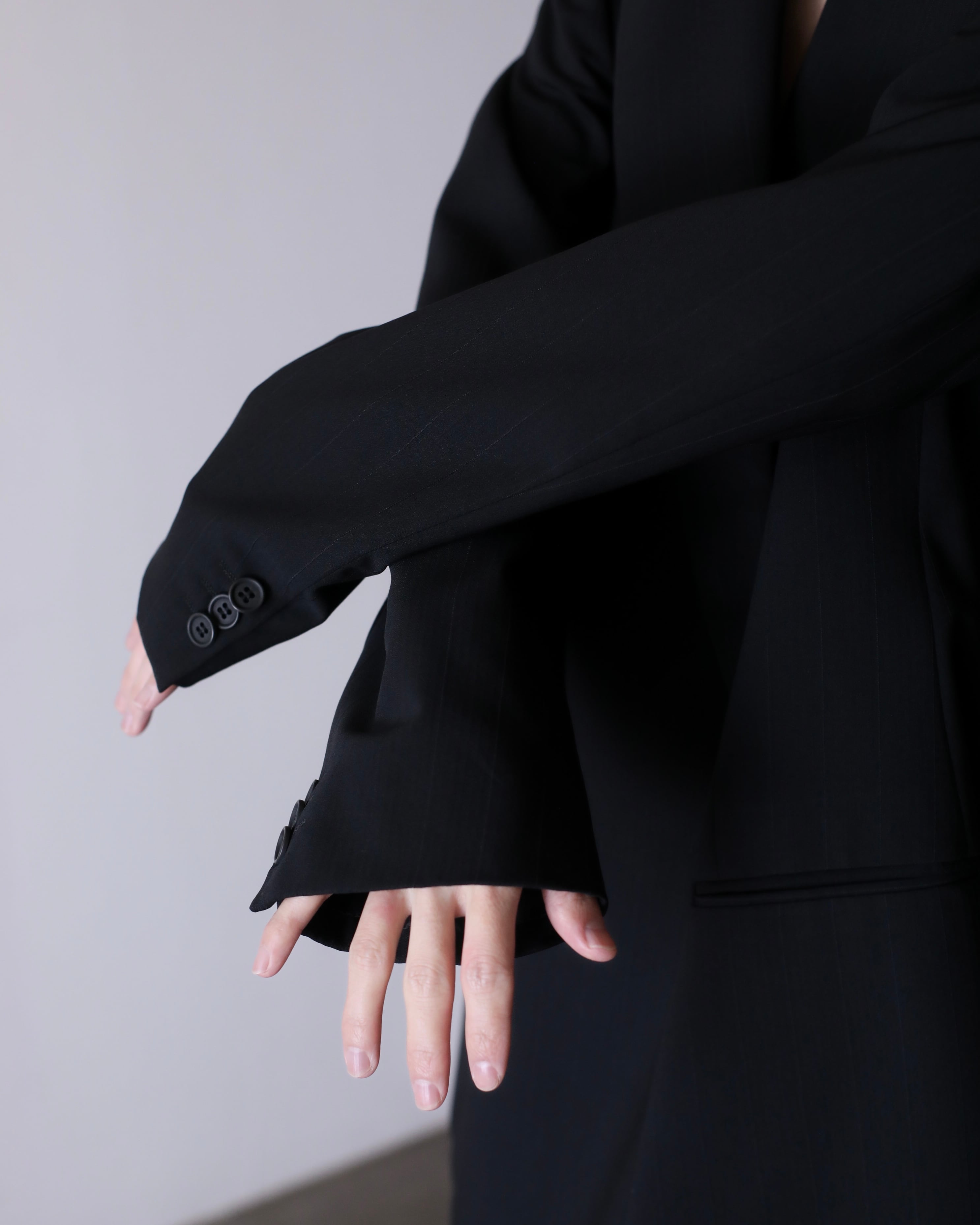 ブラックカラーにとろっとしたこのブランドならではウール素材。明らかに上質なファブリックに流れるようなオーバーシルエットが極上。