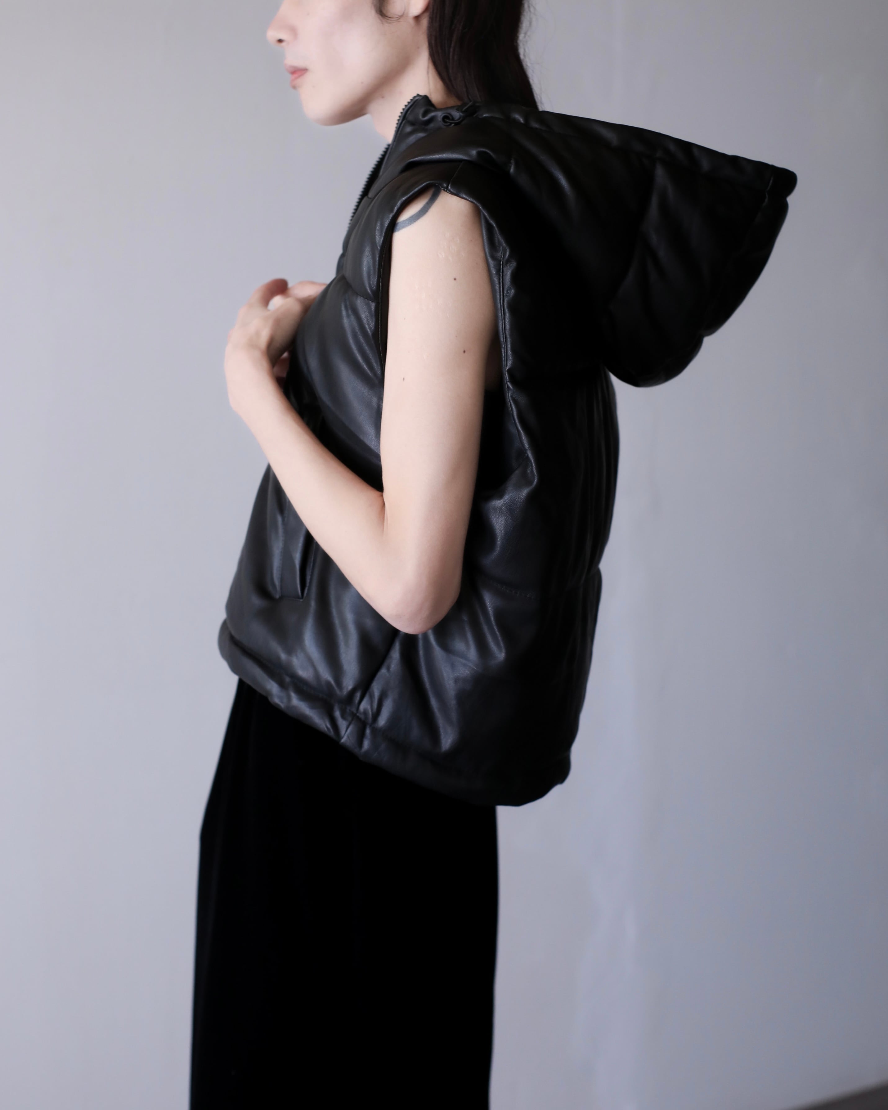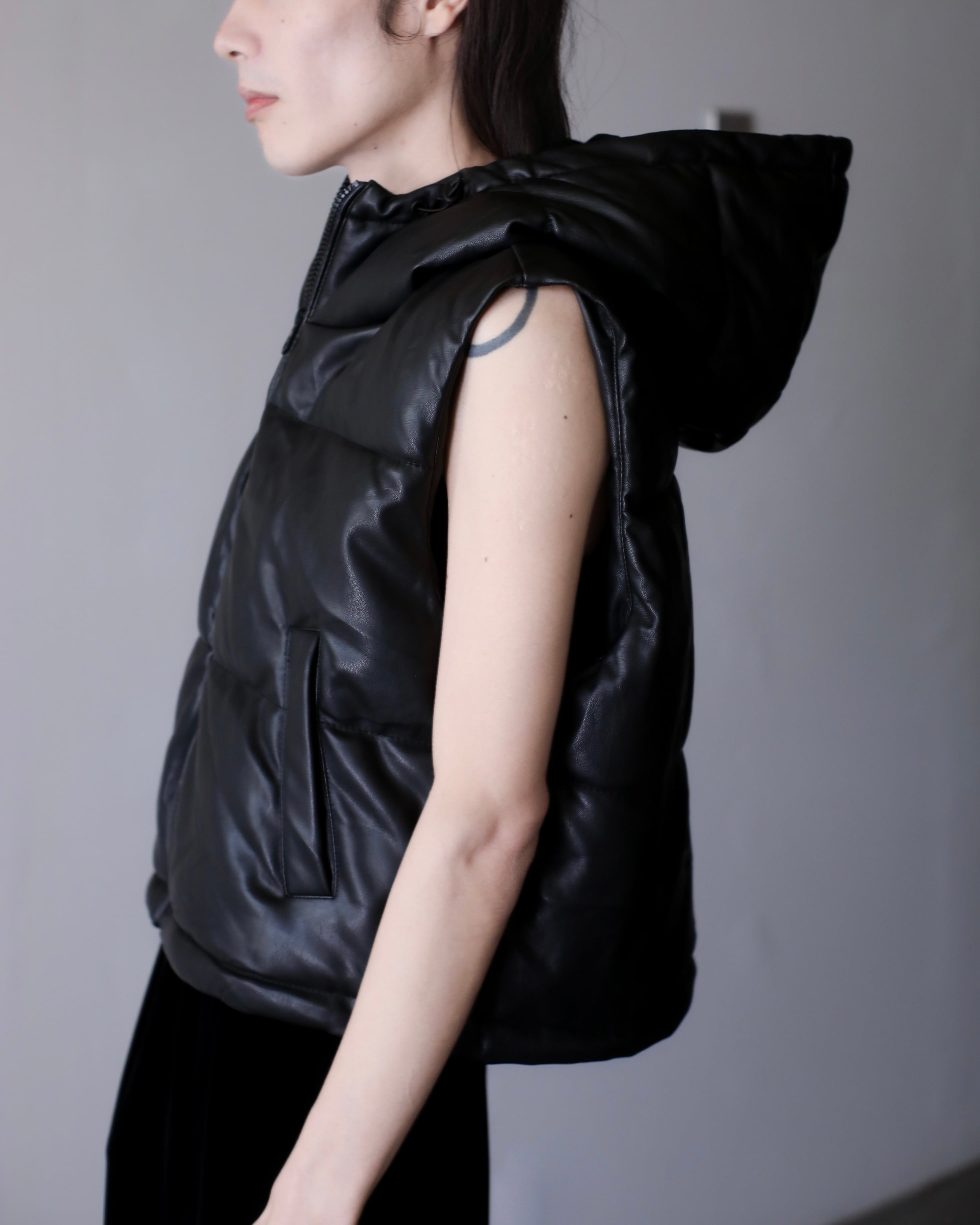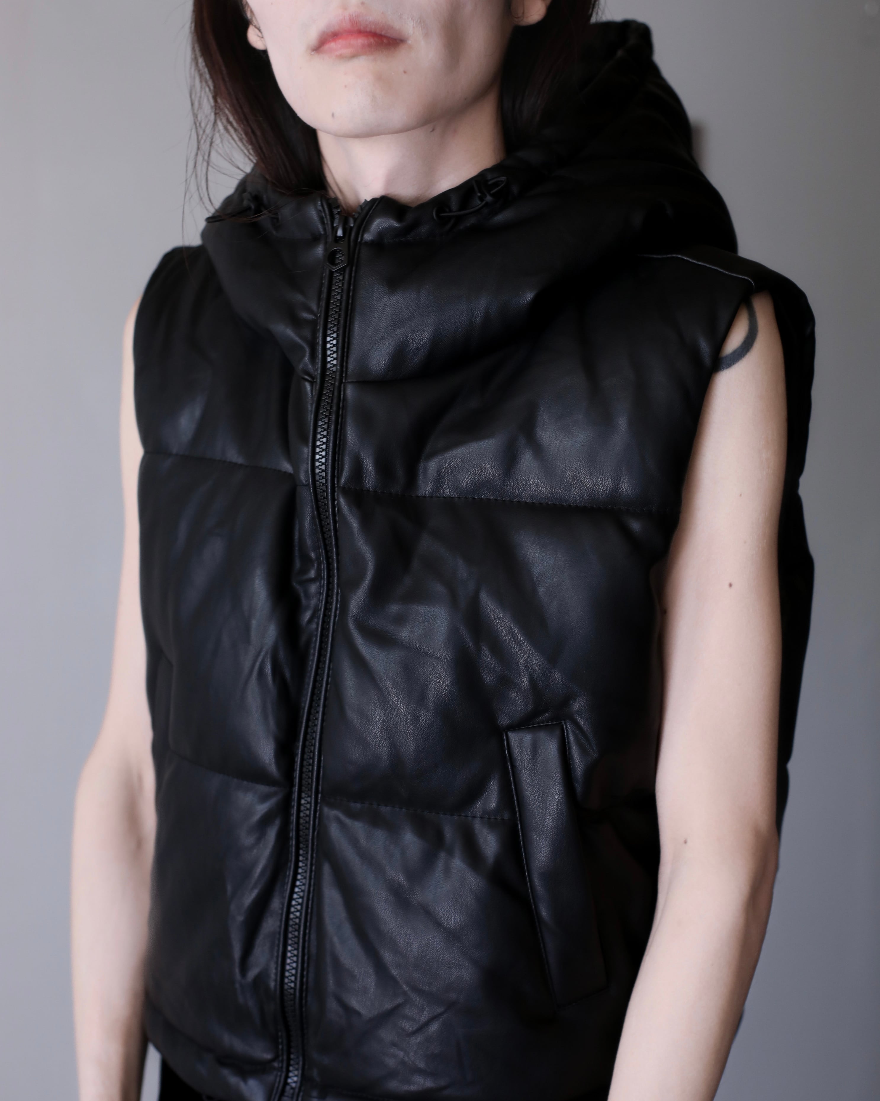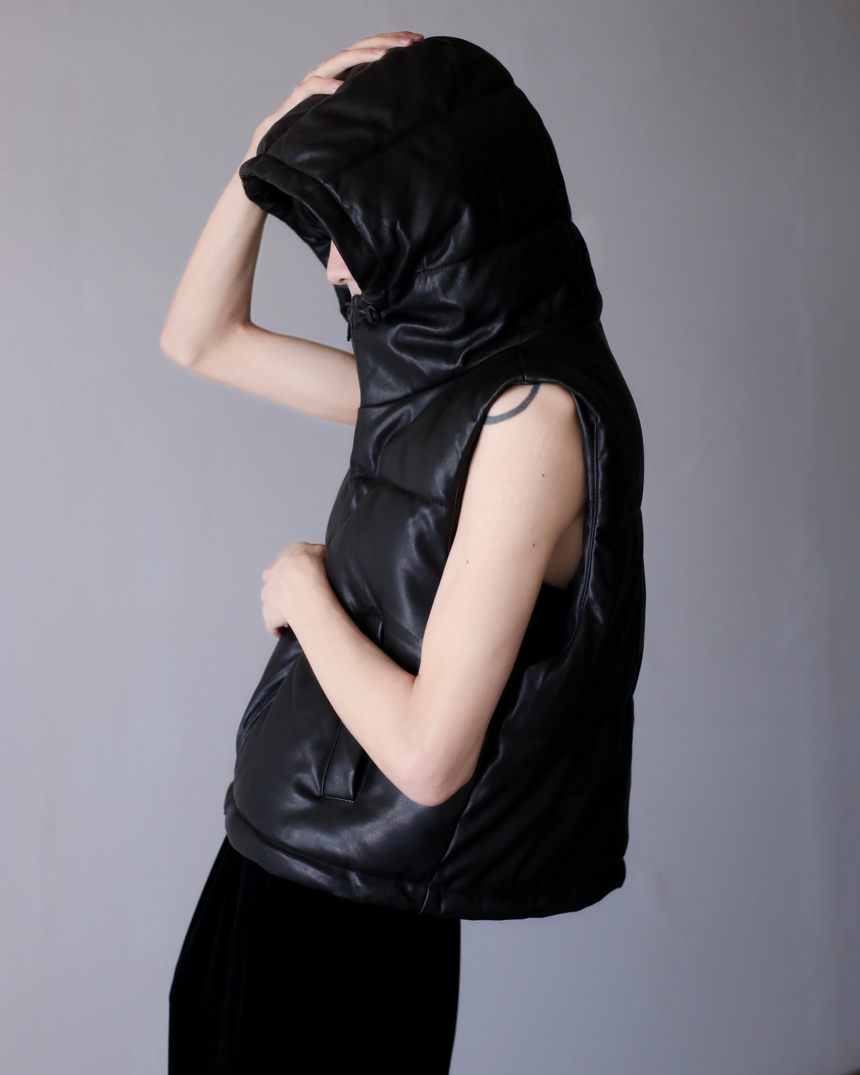 faux leather padding volume hooded design vest oversized