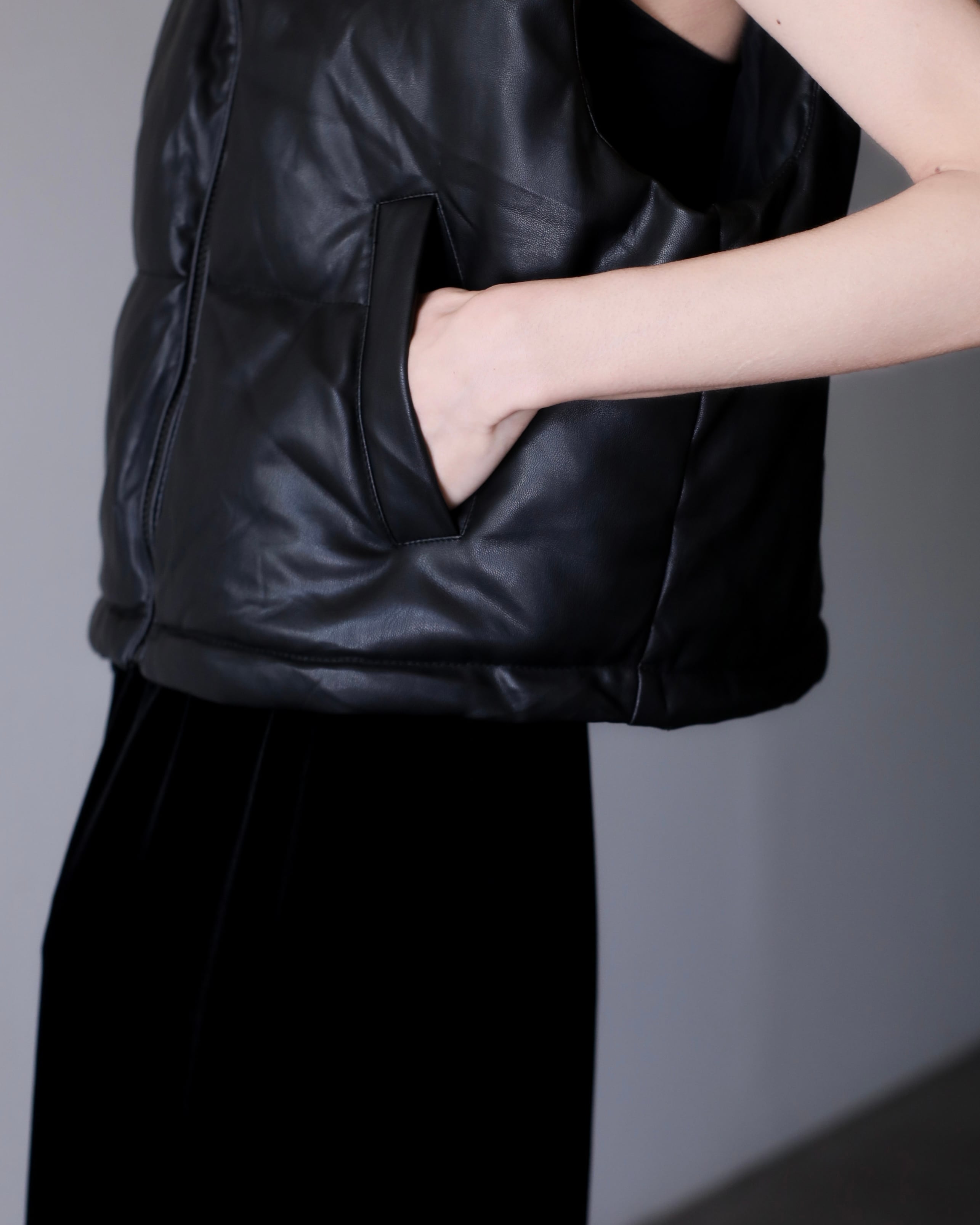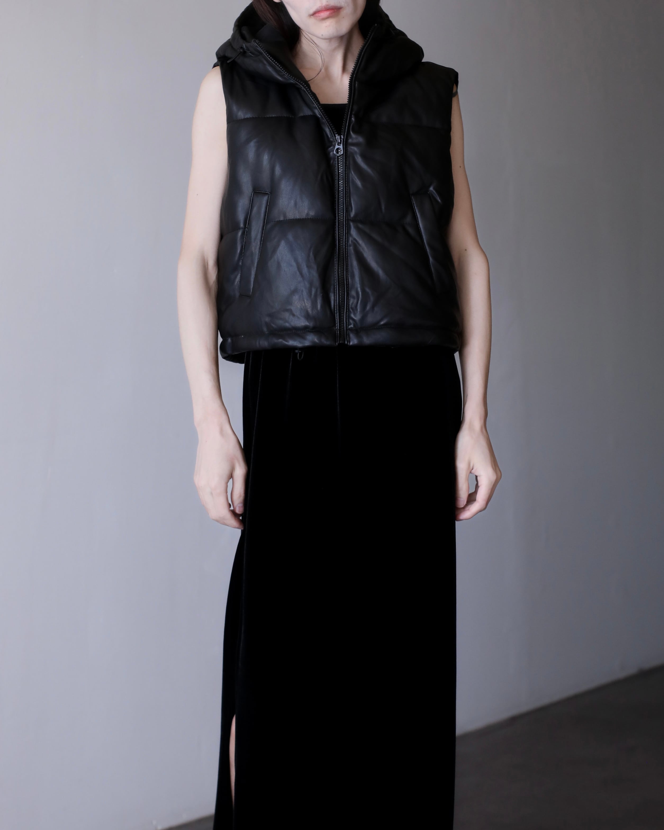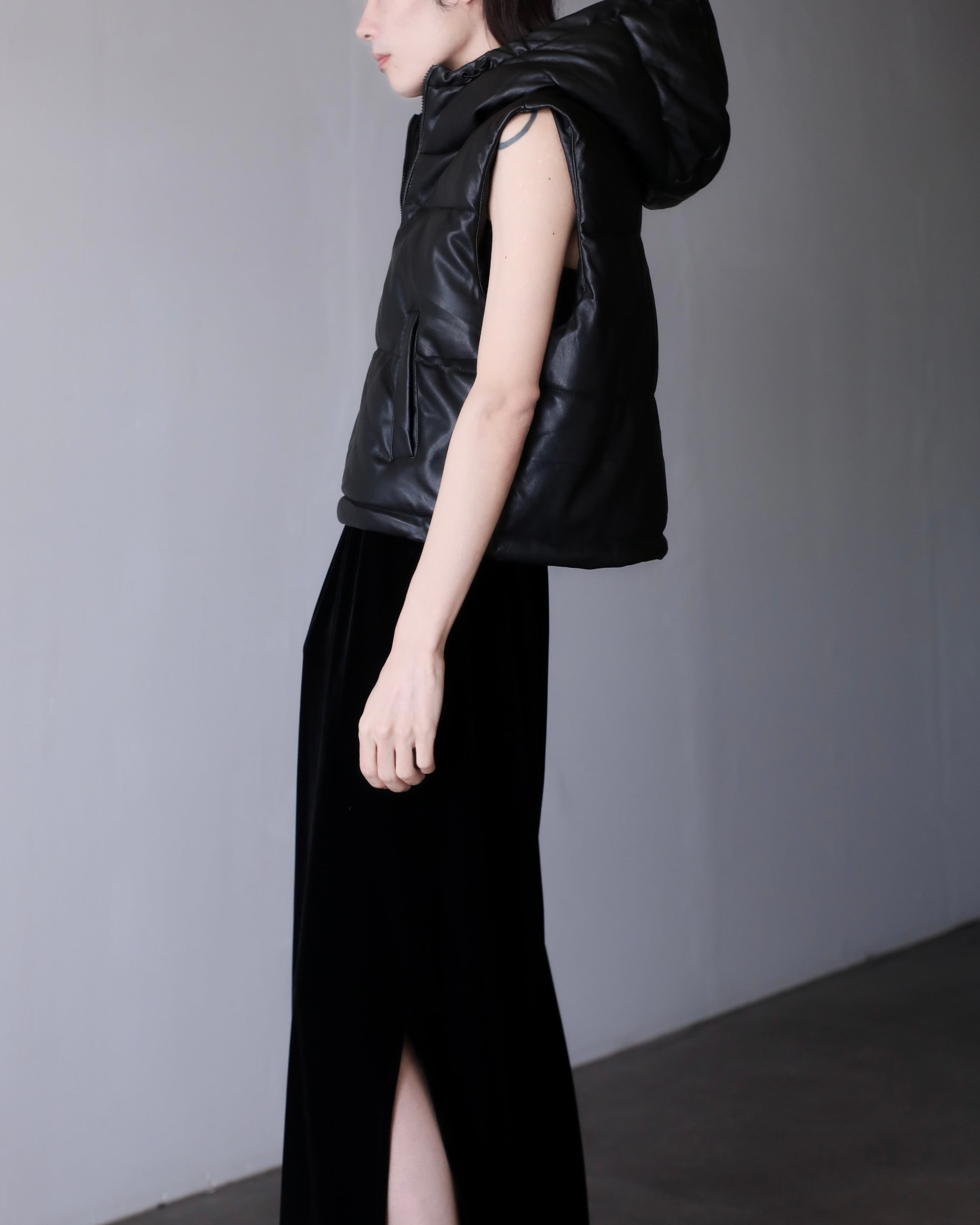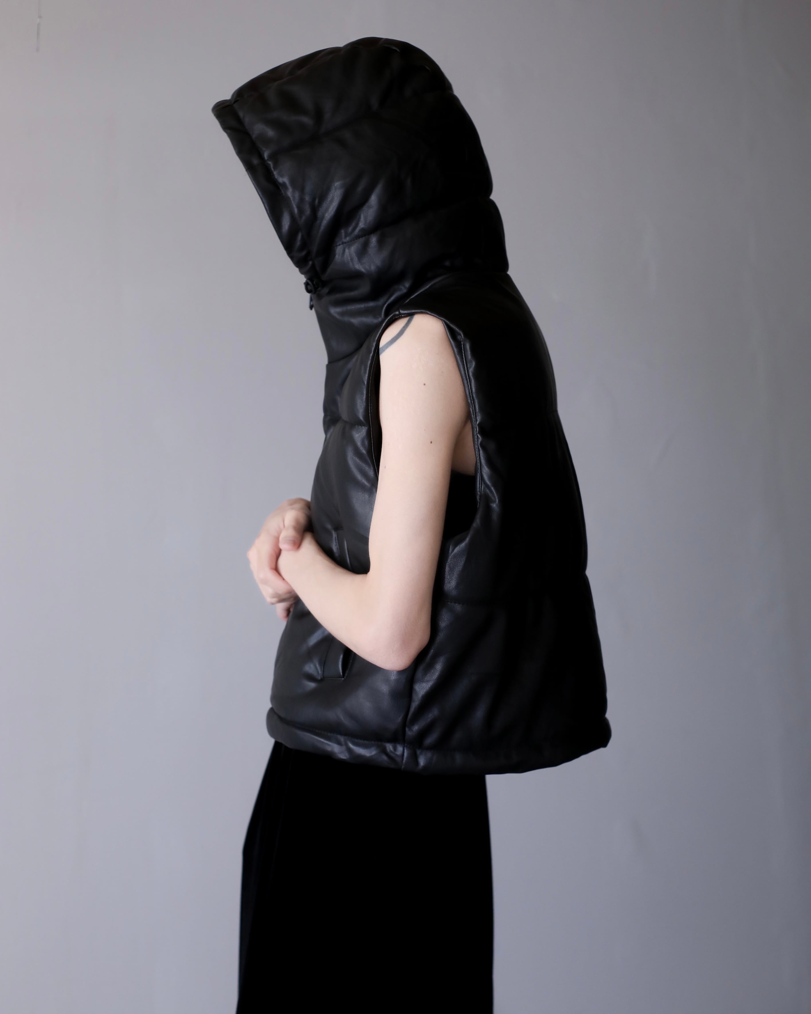 faux leather padding volume hooded design vest oversized
