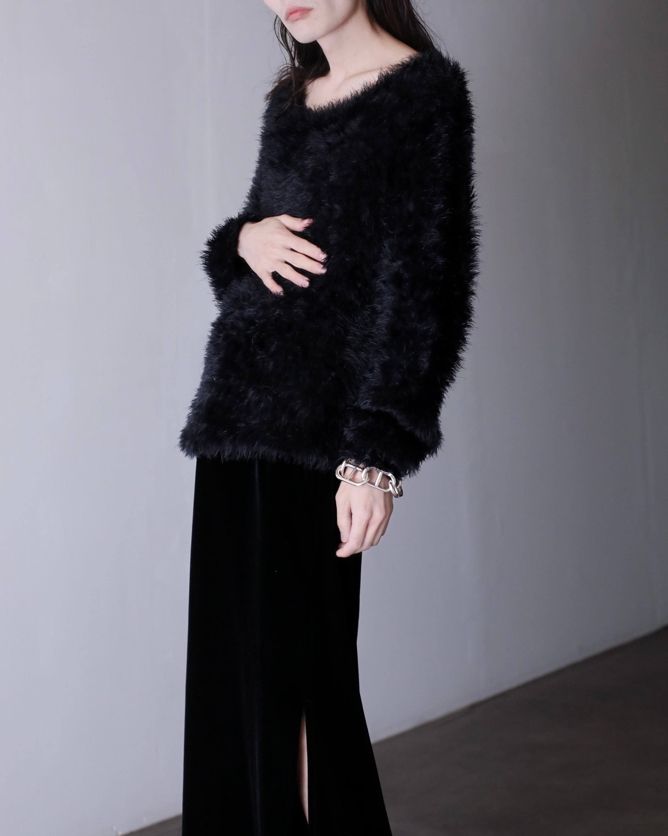1990s~ faux fur shaggy knit sweater oversized