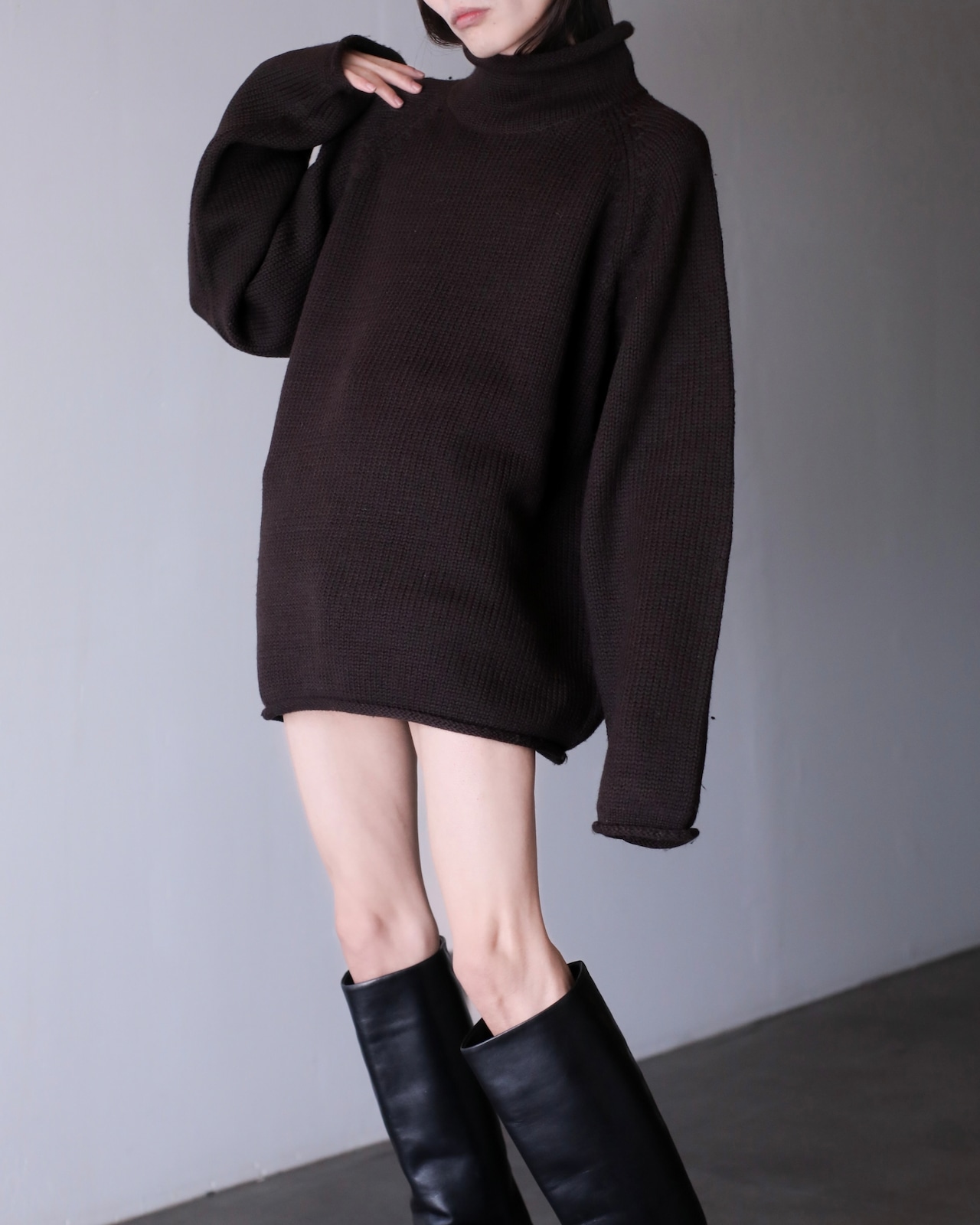 その高めのネックからくるんとロールするネックが本当に可愛いです。ネックだけでなく此方は袖口や裾もロールしていてもう完璧です。。。