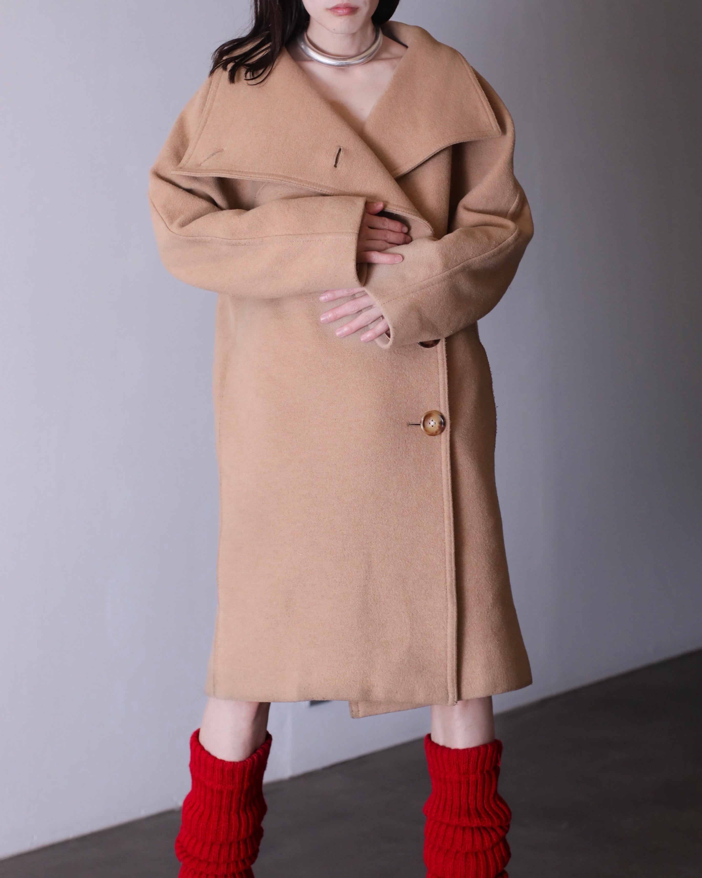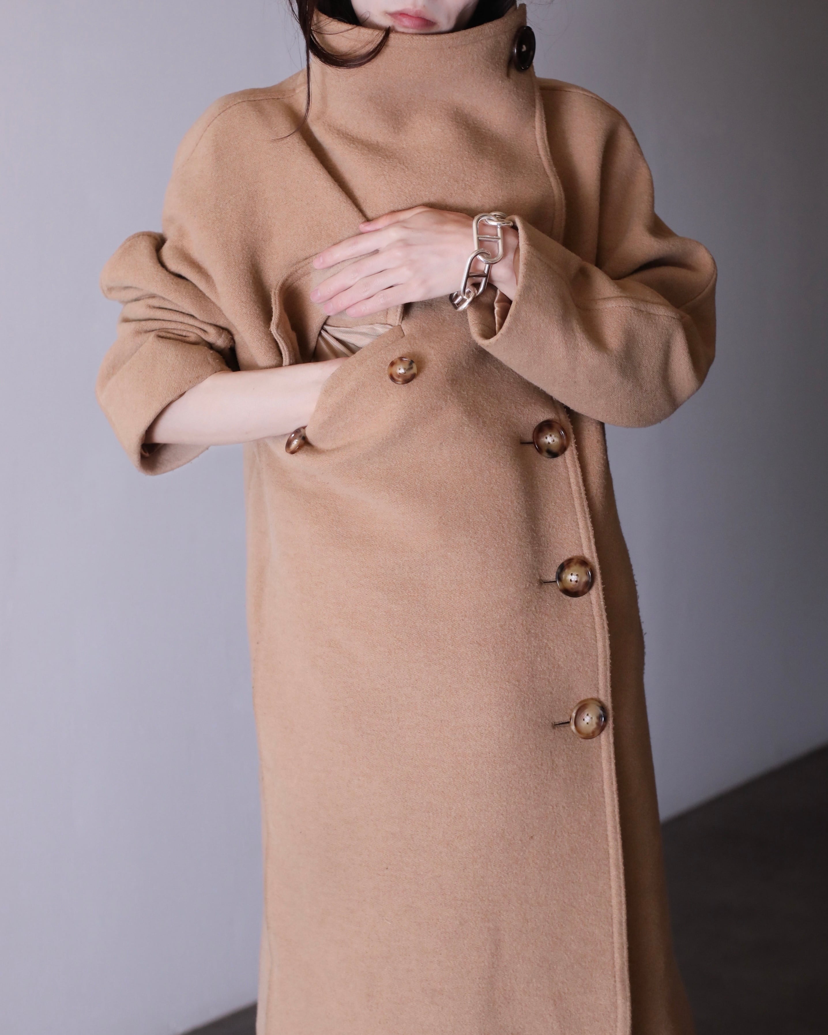 Acne super wrap hi-neck starnd collar asymmetry pocket design melton wool fabric long coat
