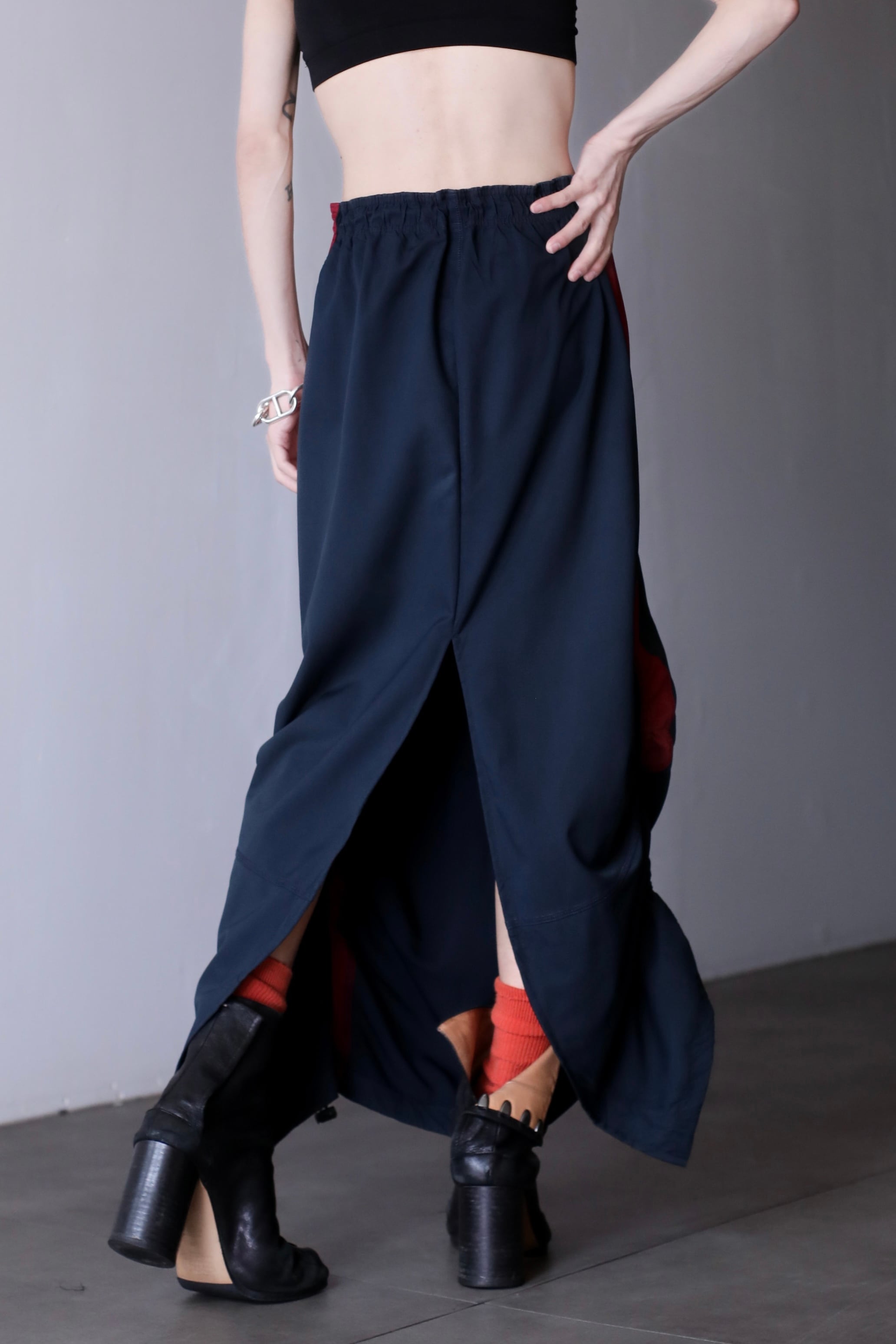 ロング丈にダークネイビー×レッドのラインデザイン。