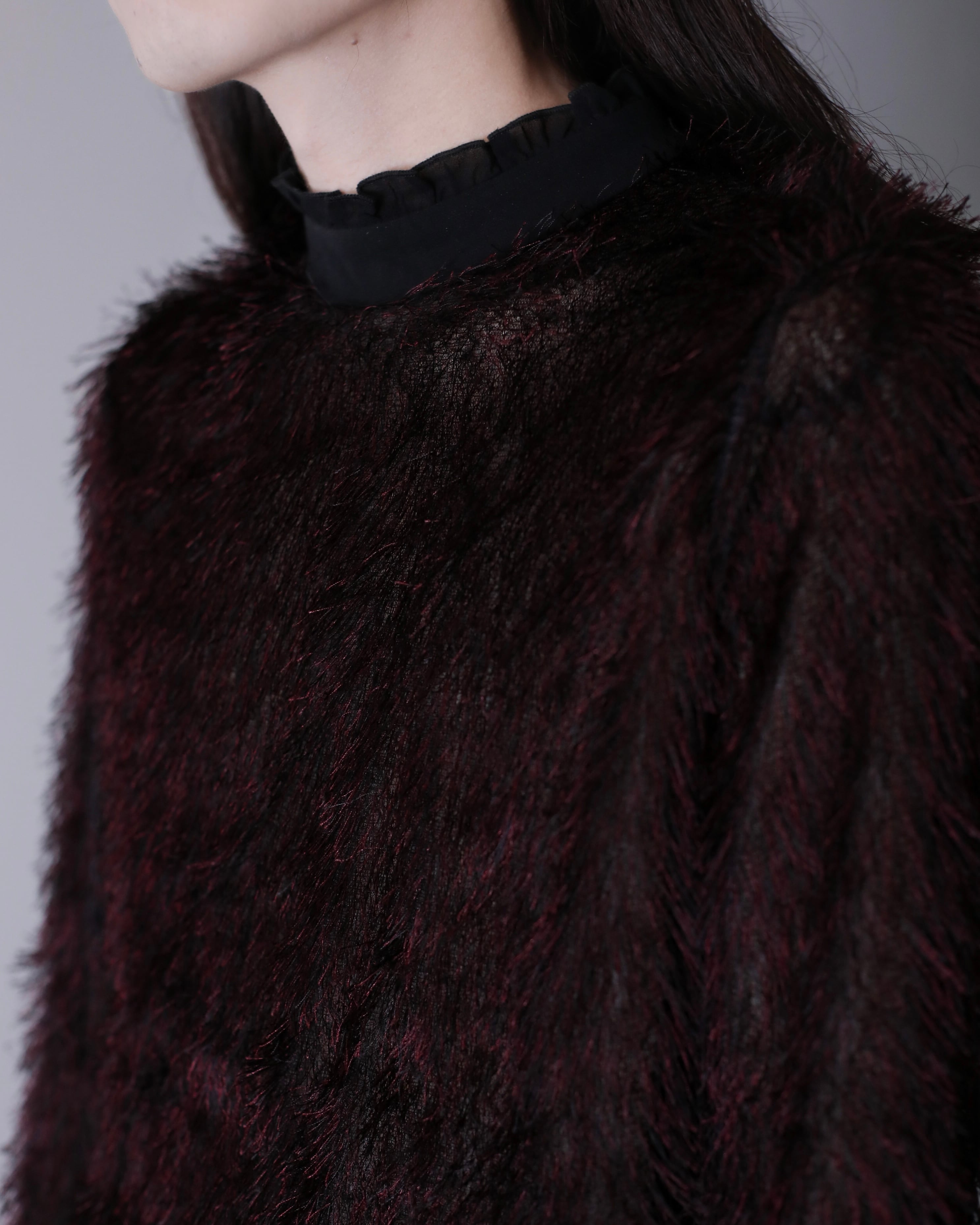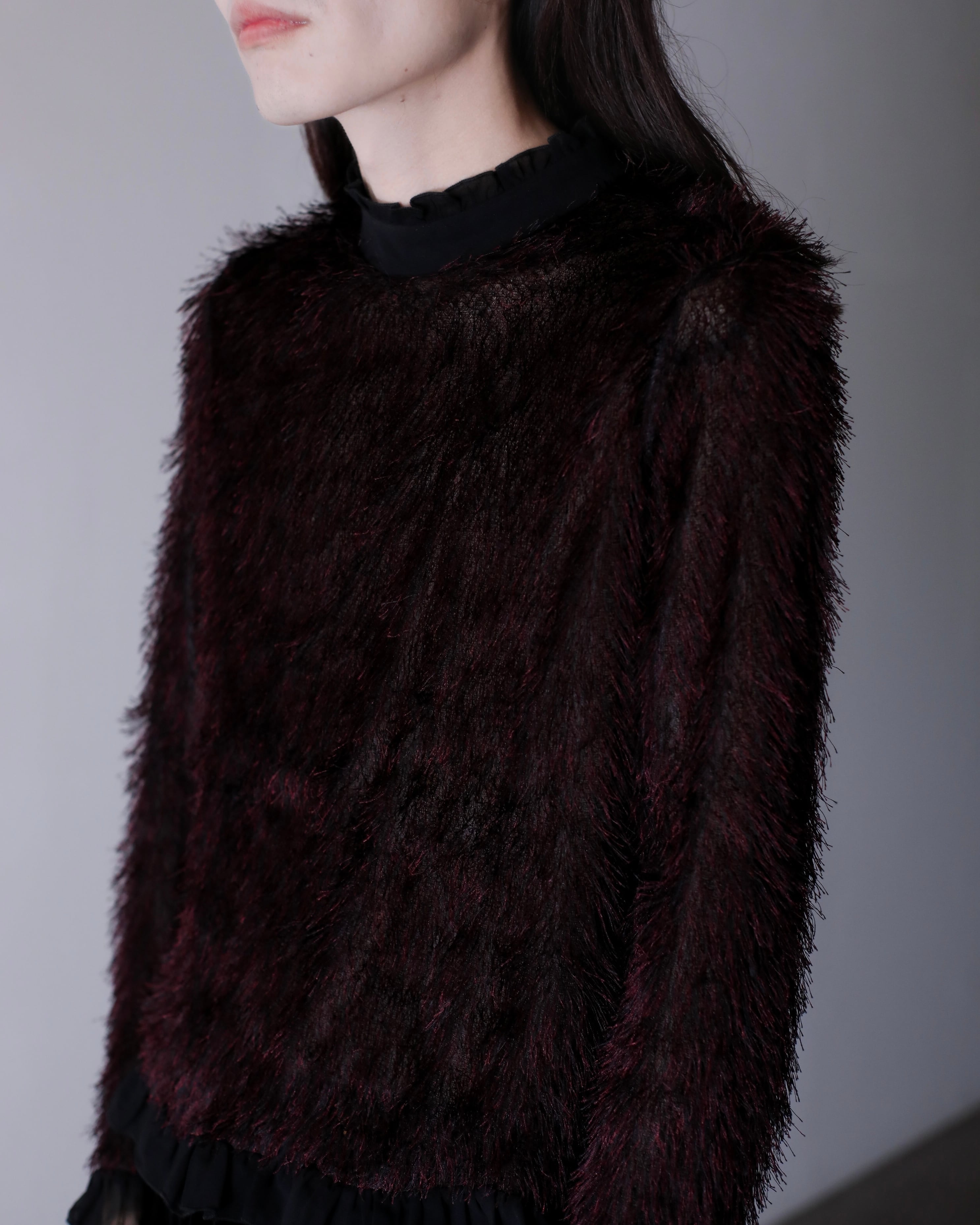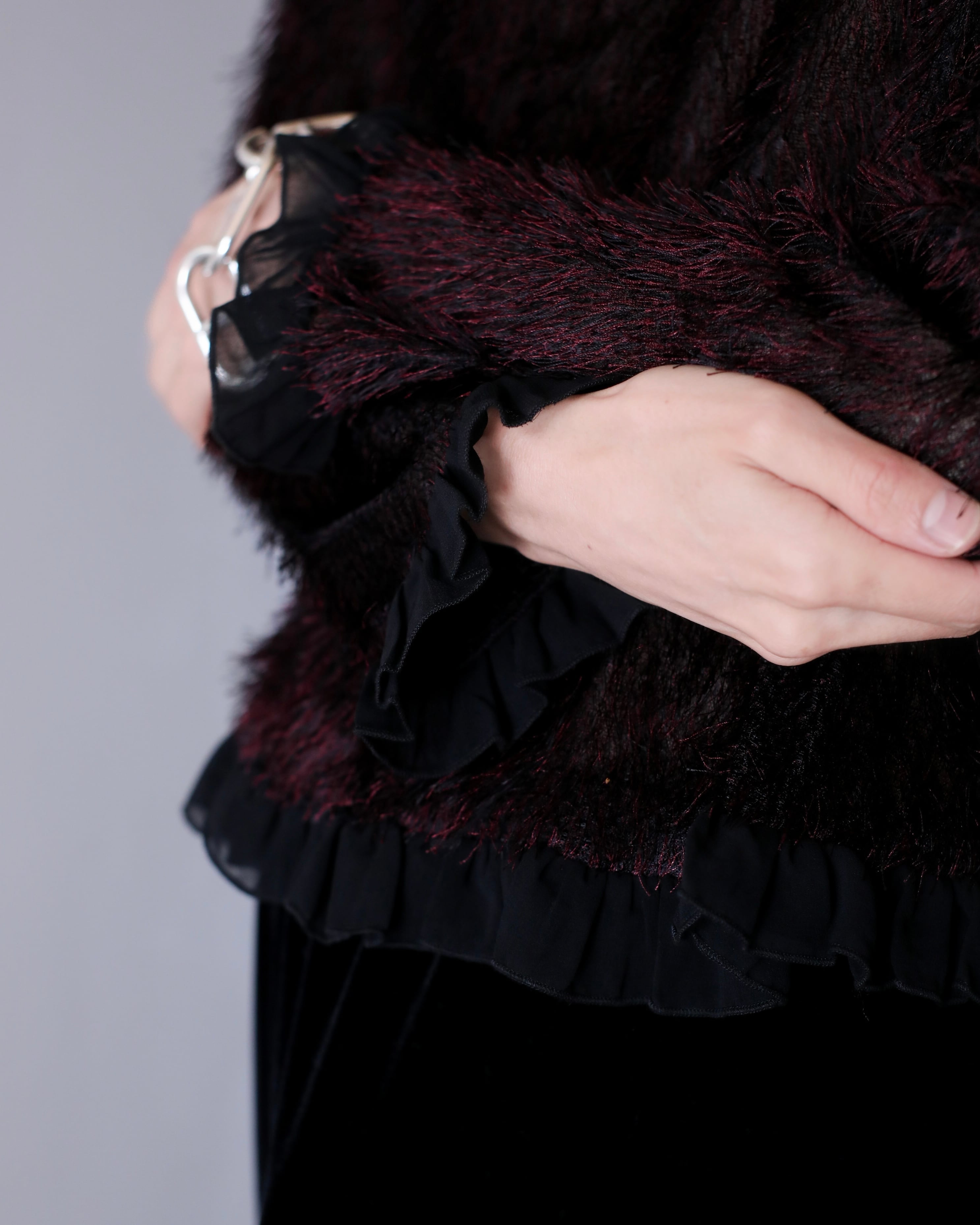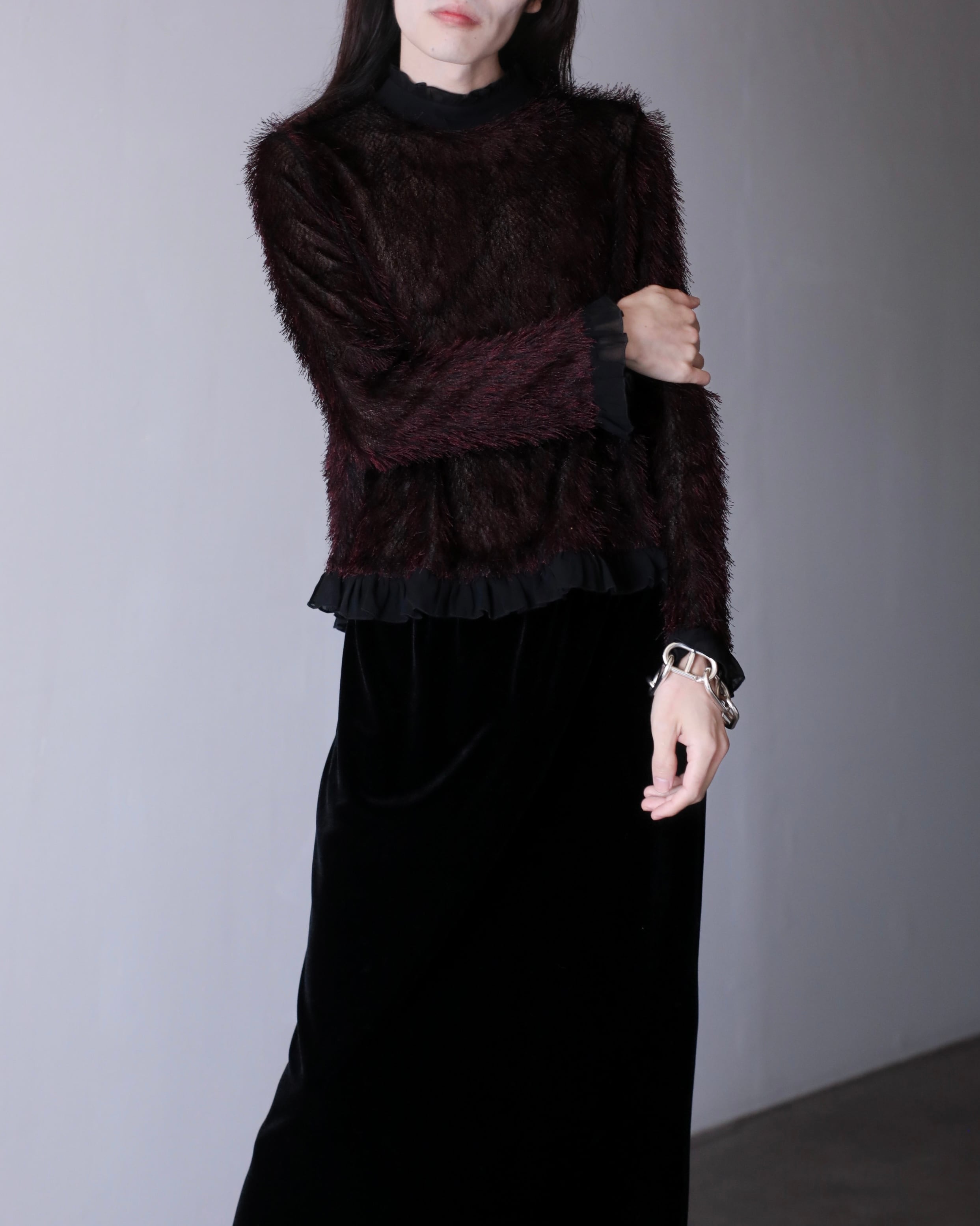 1990s mokemoke frill neck design sheer knit top Made In Italy