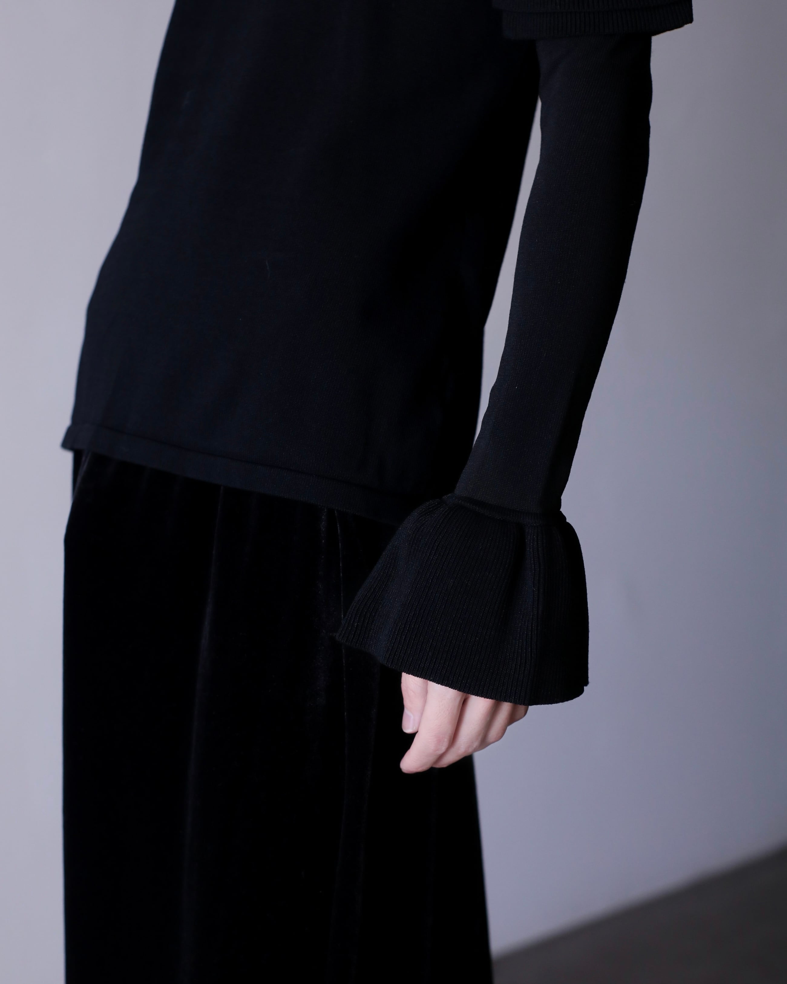 bell sleeve "dan dan frill" design hi-neck rib tight knit