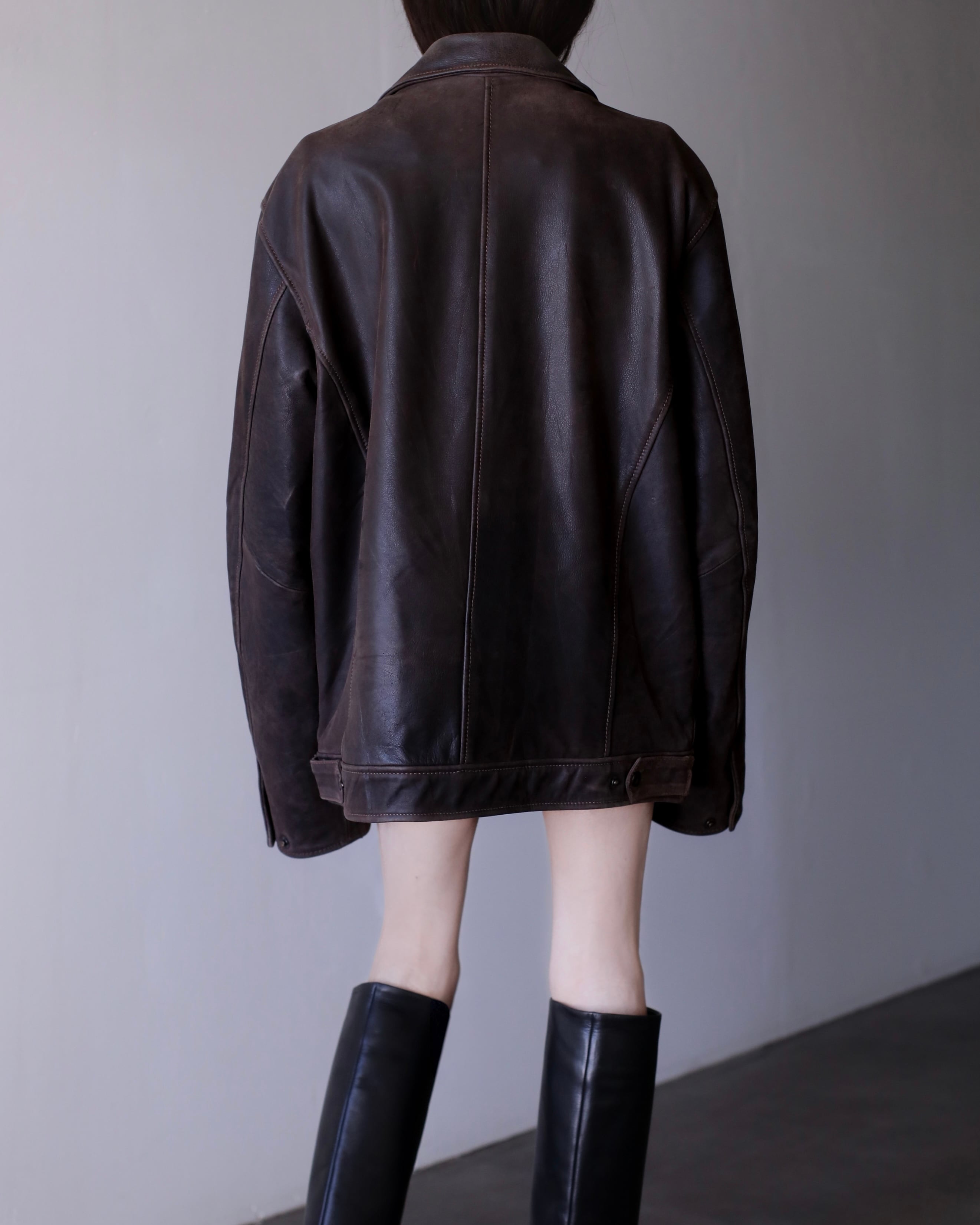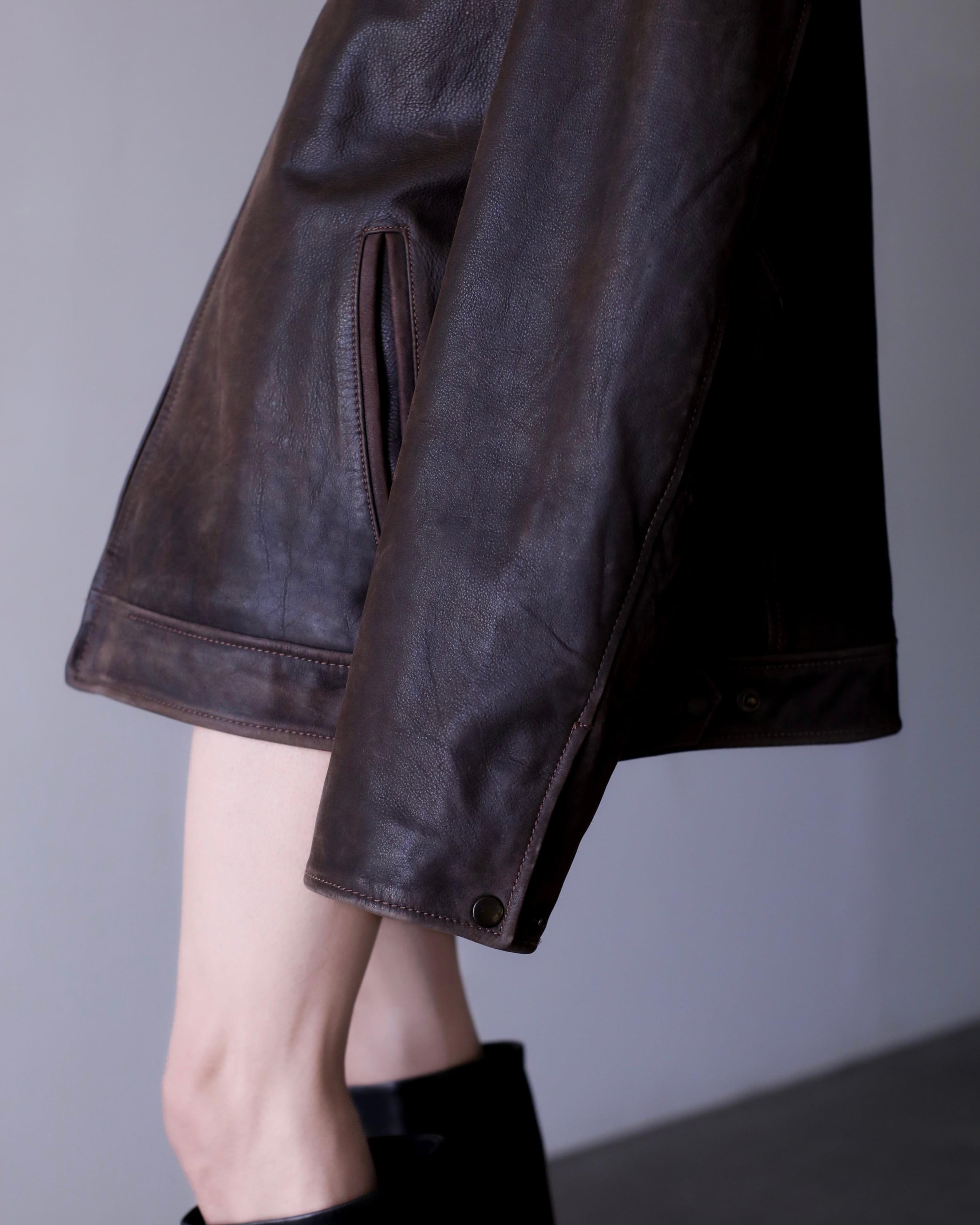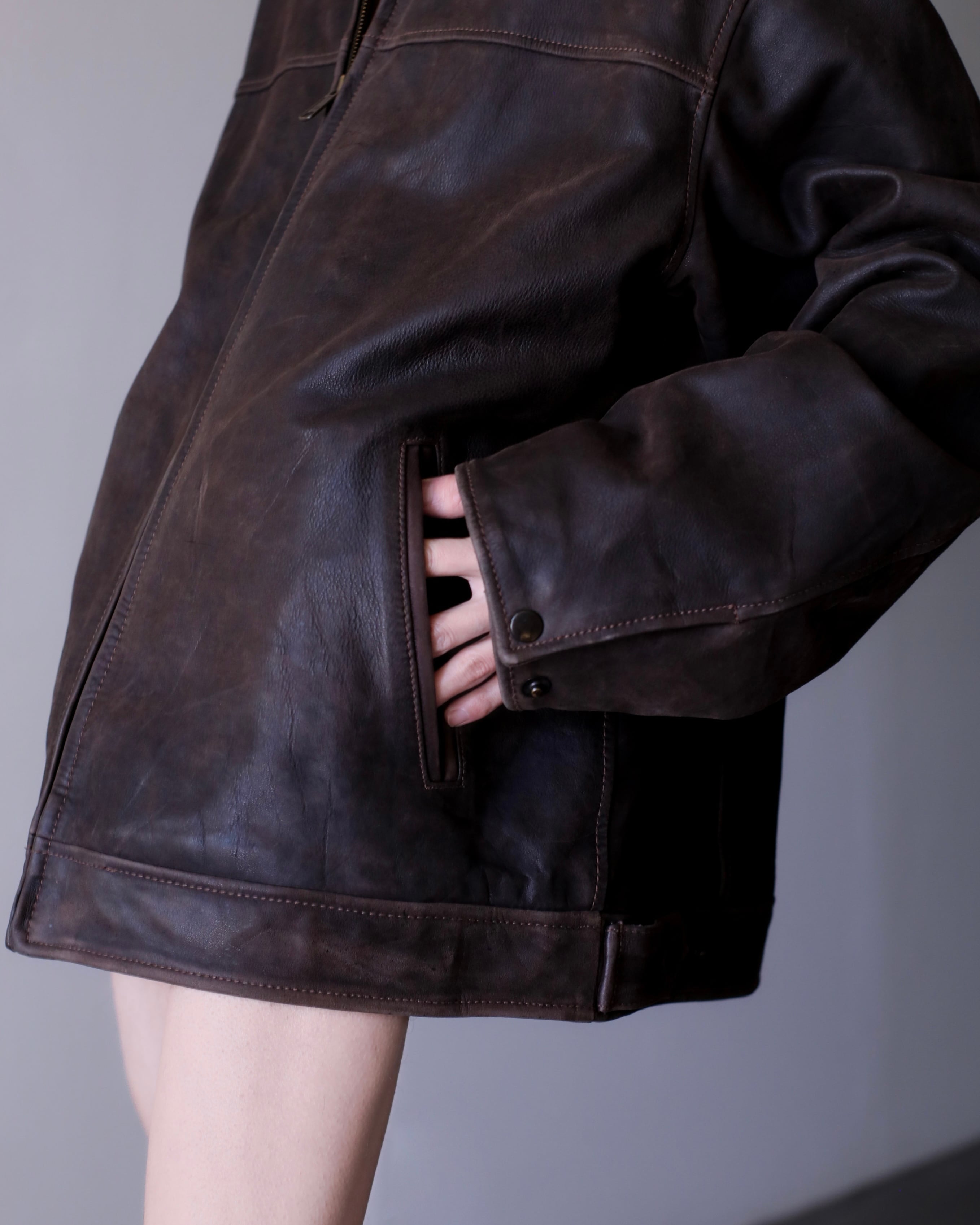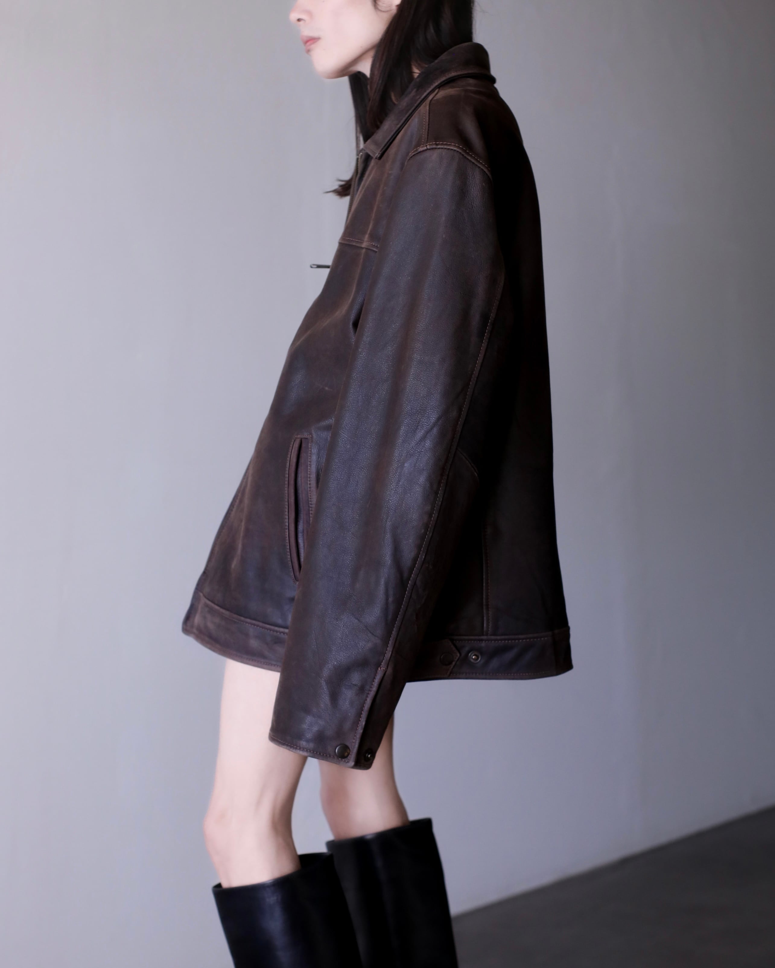 1990s "nameraka" leather blouson drop shoulder oversized brown color