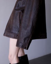 肩のしっかりと落ちる滑らかかつ柔らかな質感のレザーでオーバーシルエットの物。