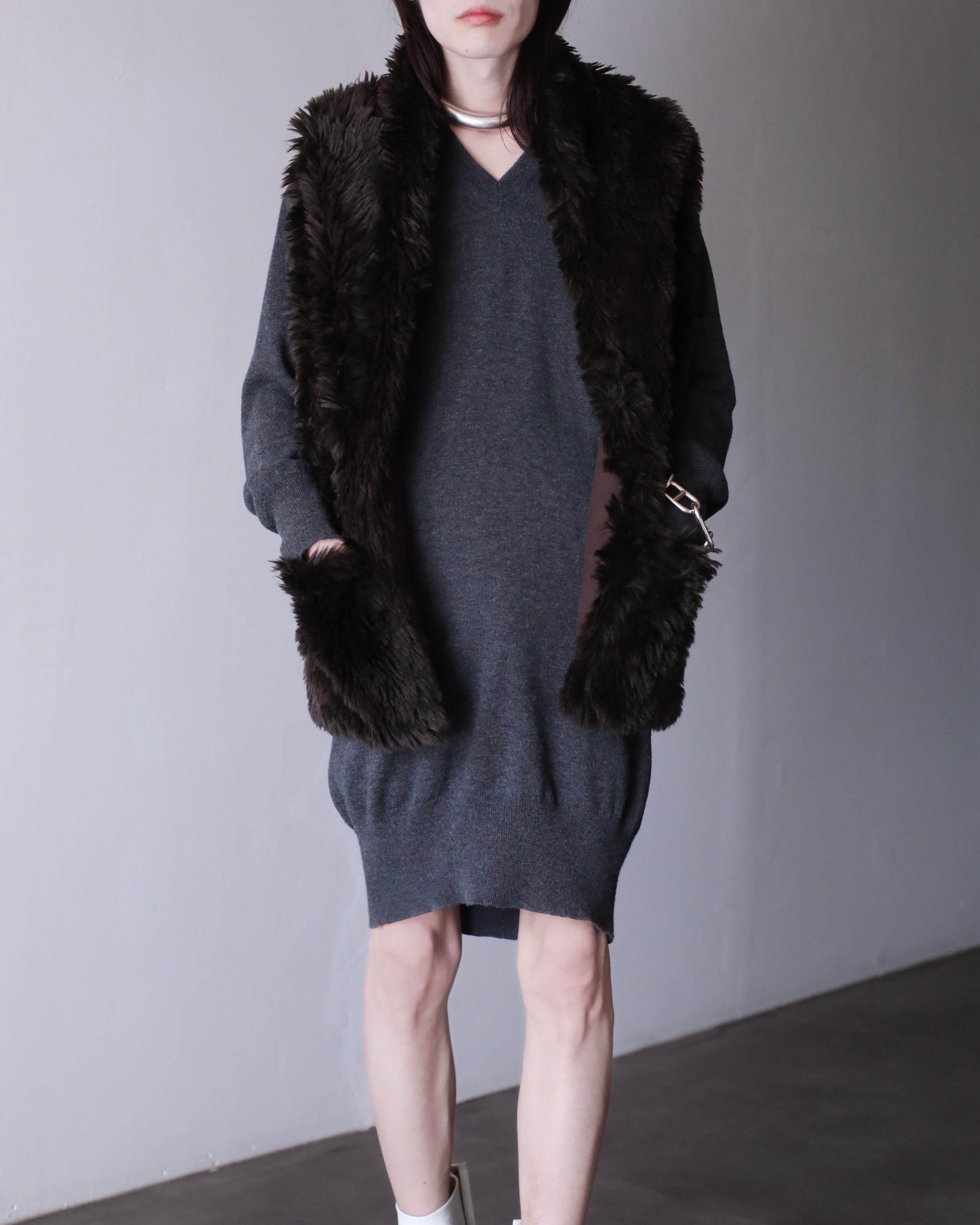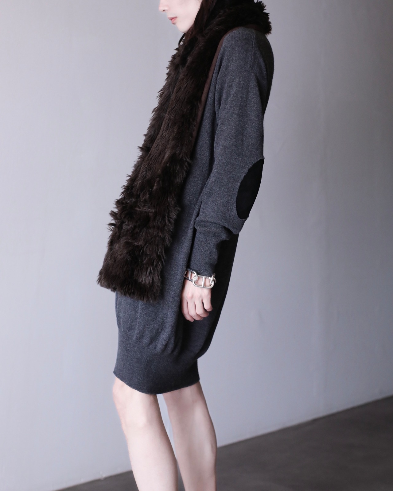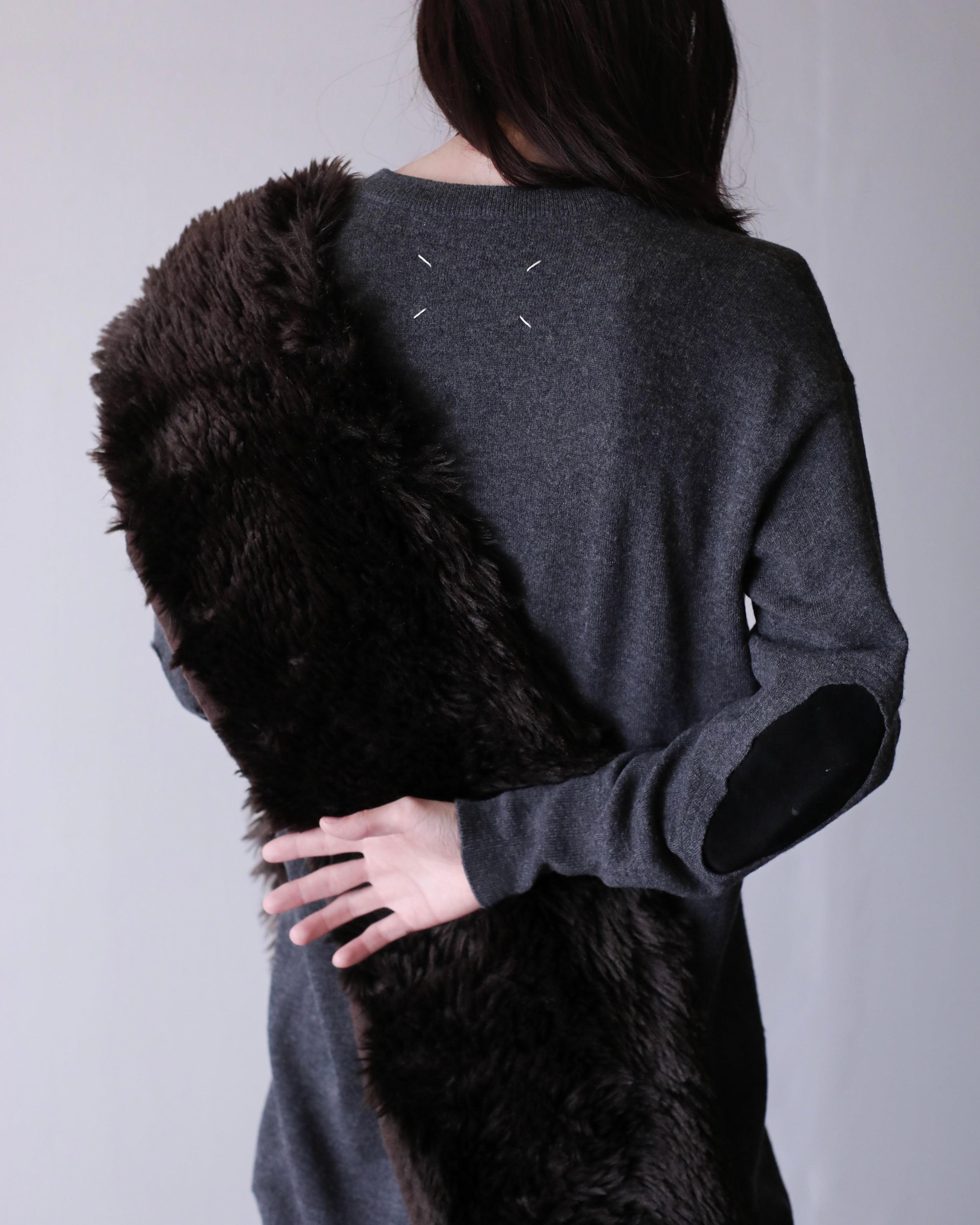 Maison Margiela ④ leather elbow patch long length knit sweater Made In Italy