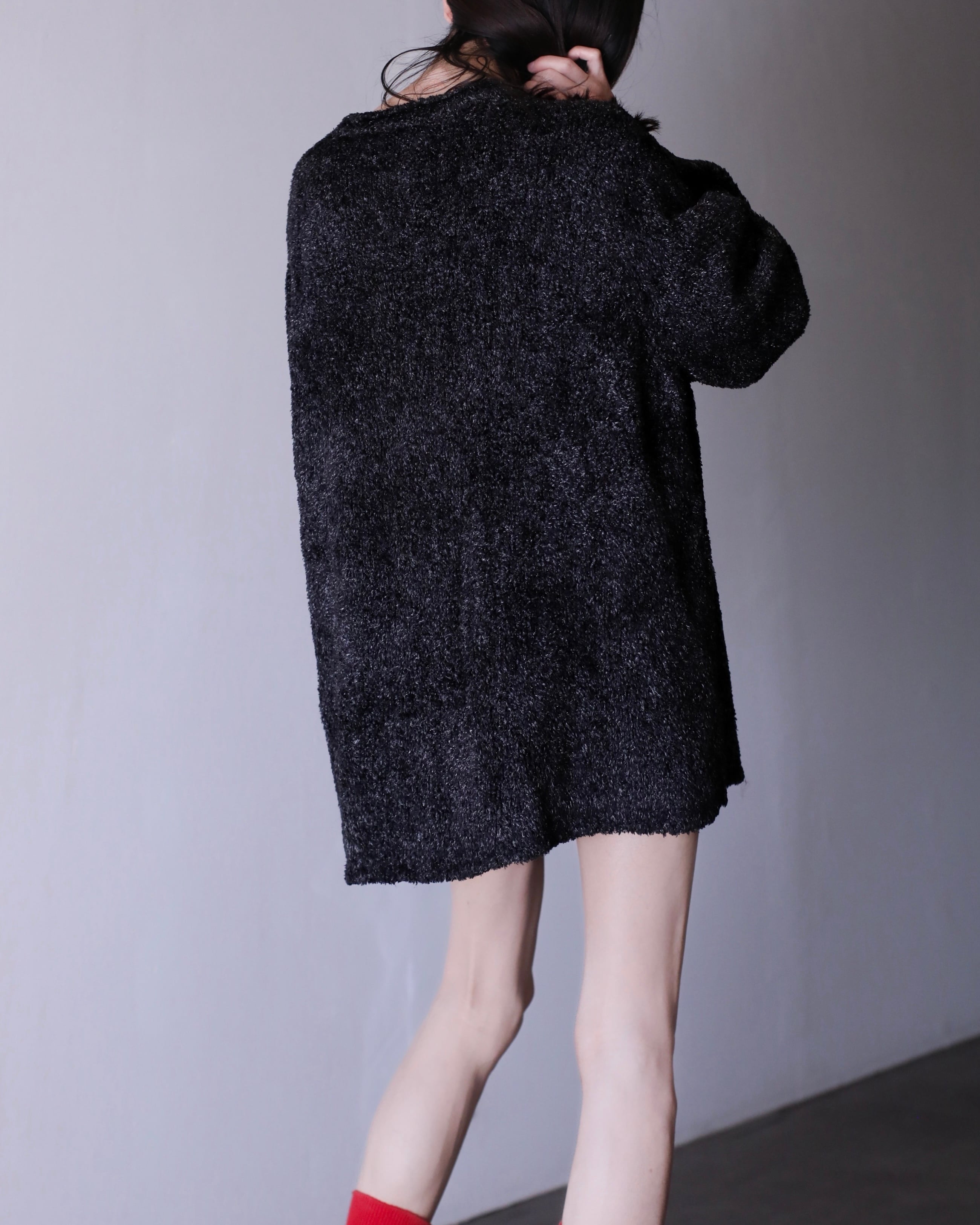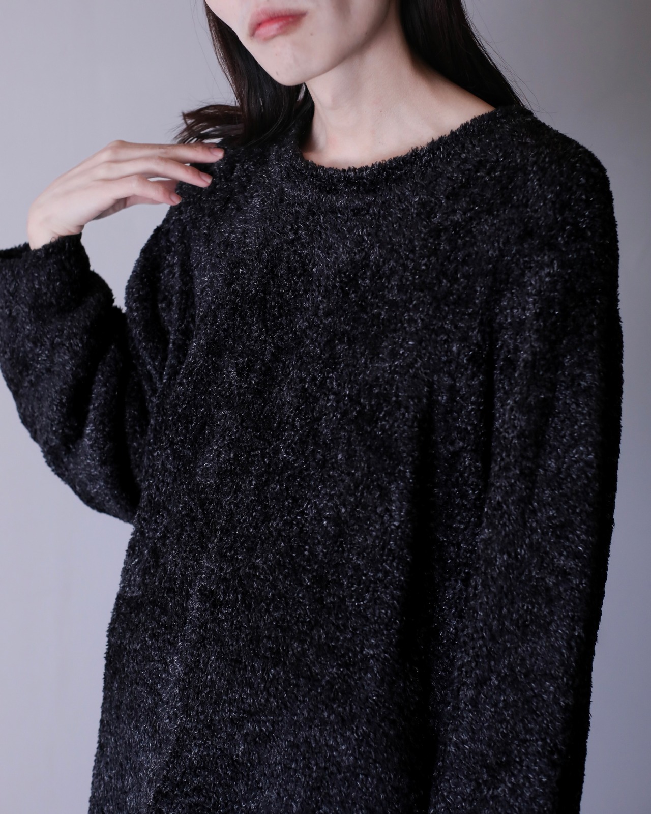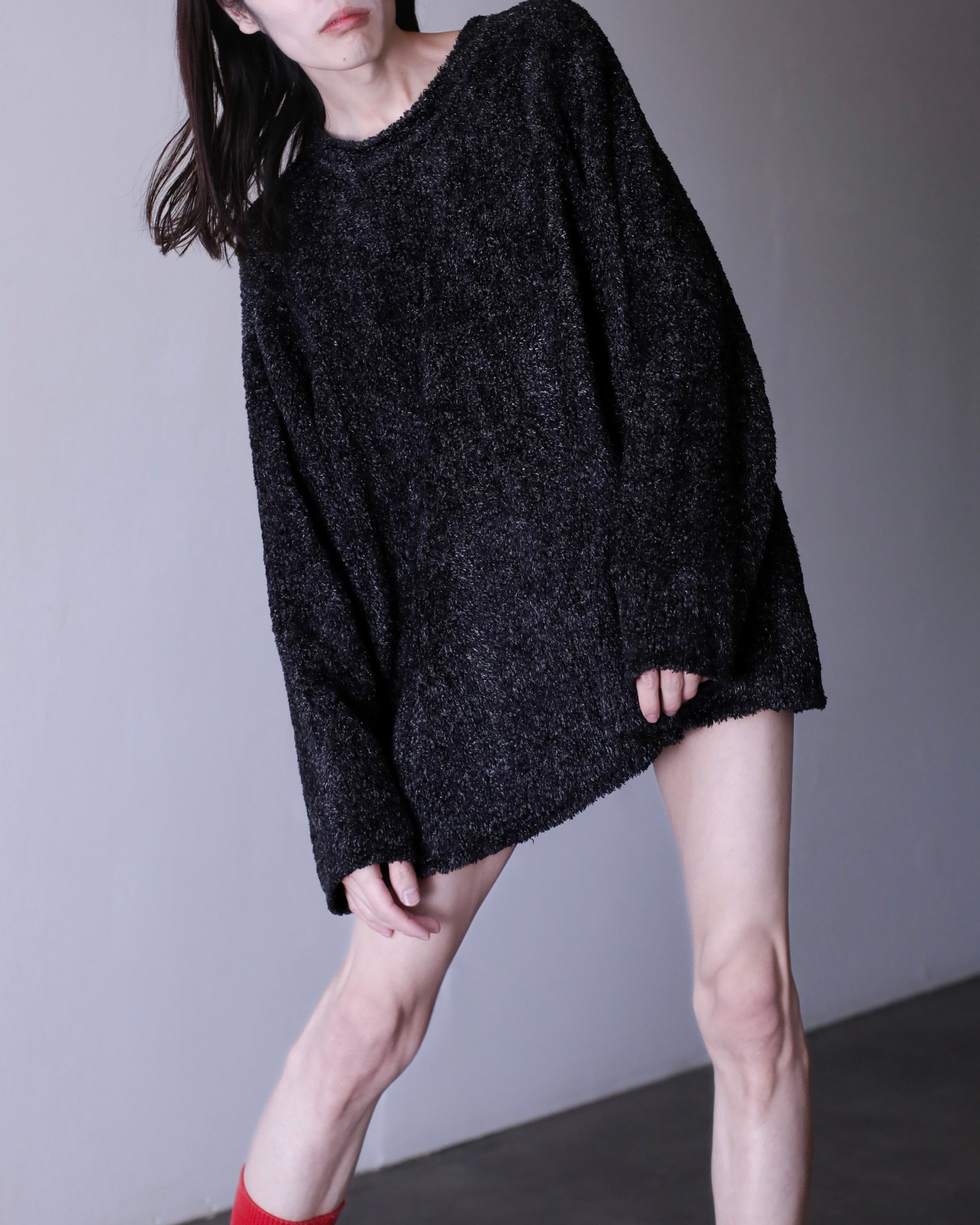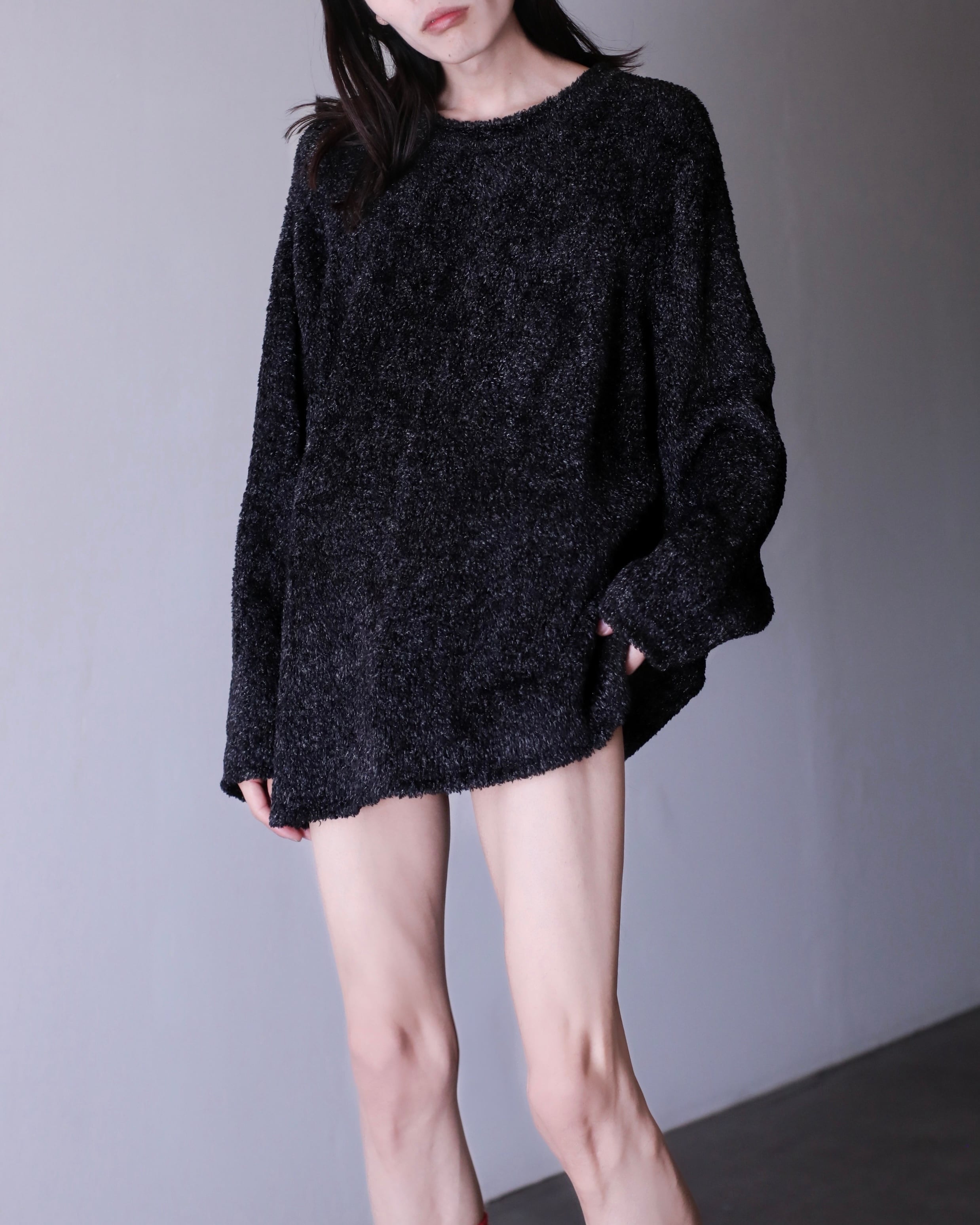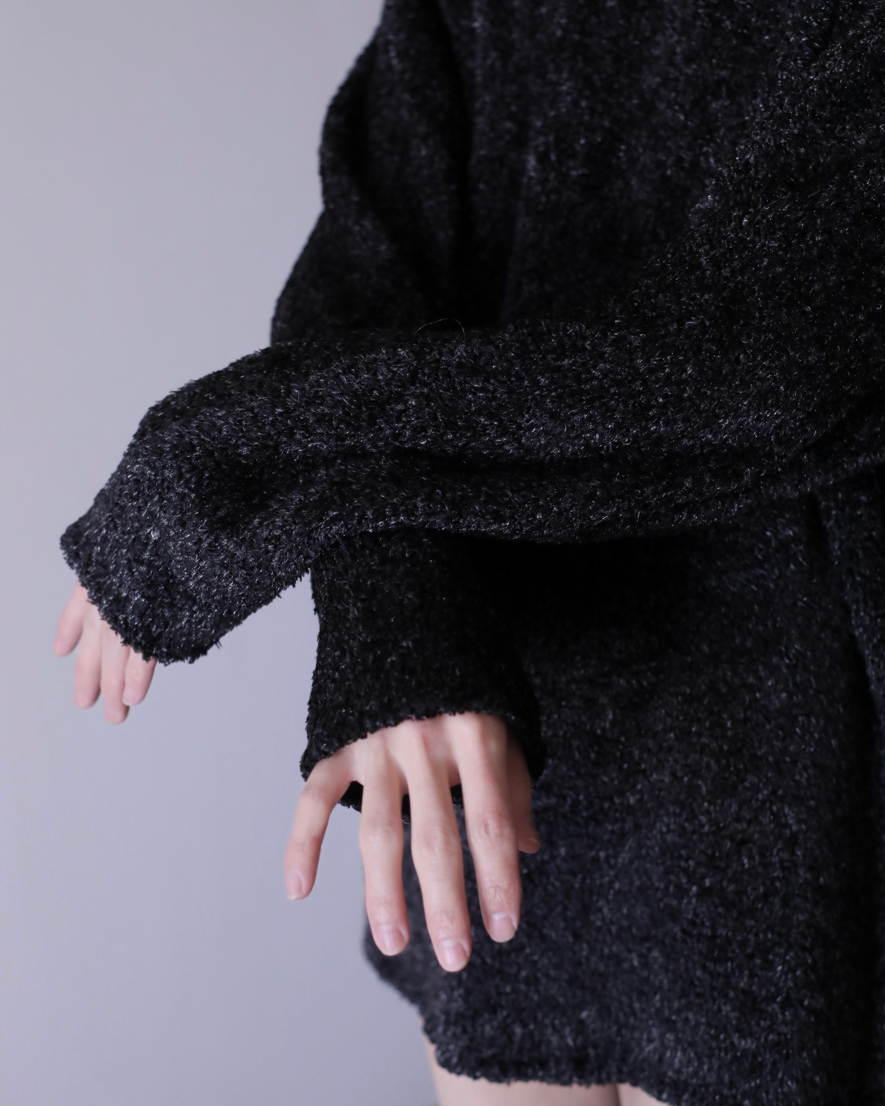 ニットは普通、ニット!という感じの見た目になりますが、こちらはしっとり感と光沢を合わせもつベロアニットで高級感のある佇まい。
