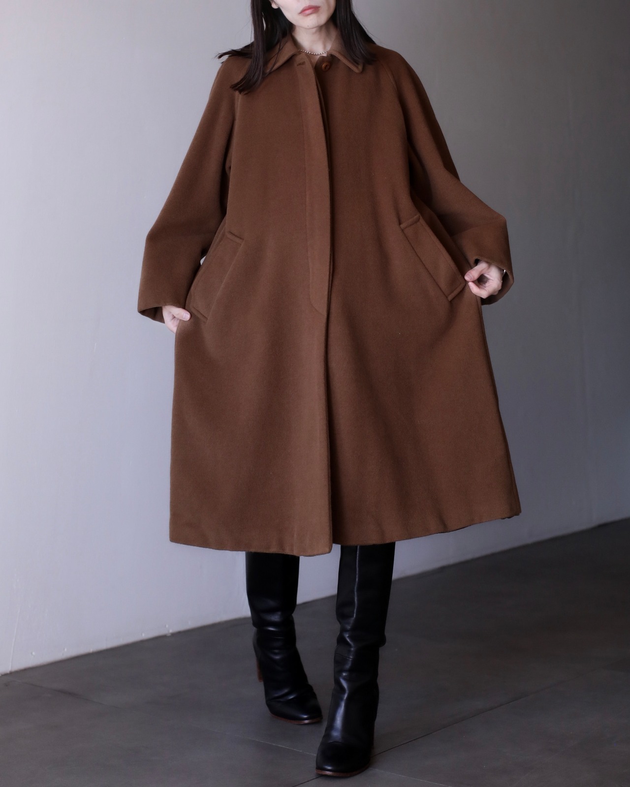 バーバリーのトレンチのようなコットンファブリックが多いですが、このふかふかとしたウール系のファブリックは探すと意外とないです(ラグラン、比翼)