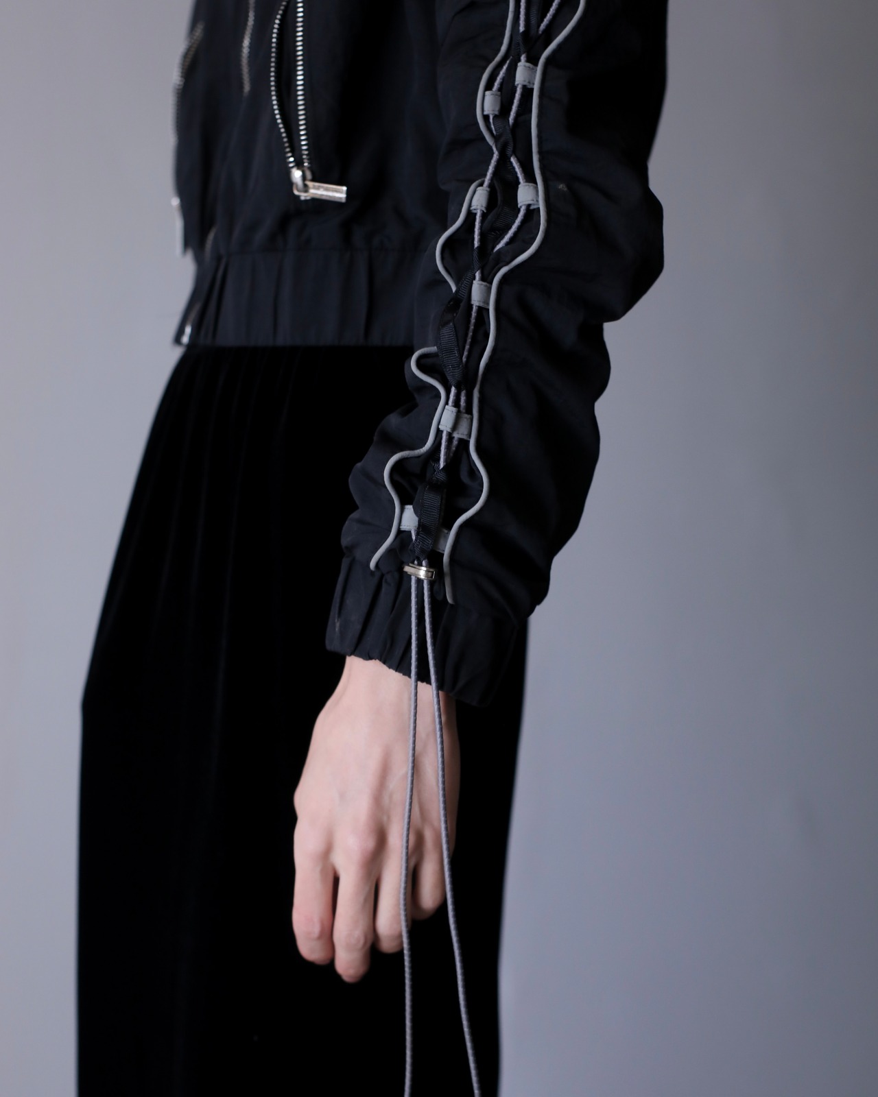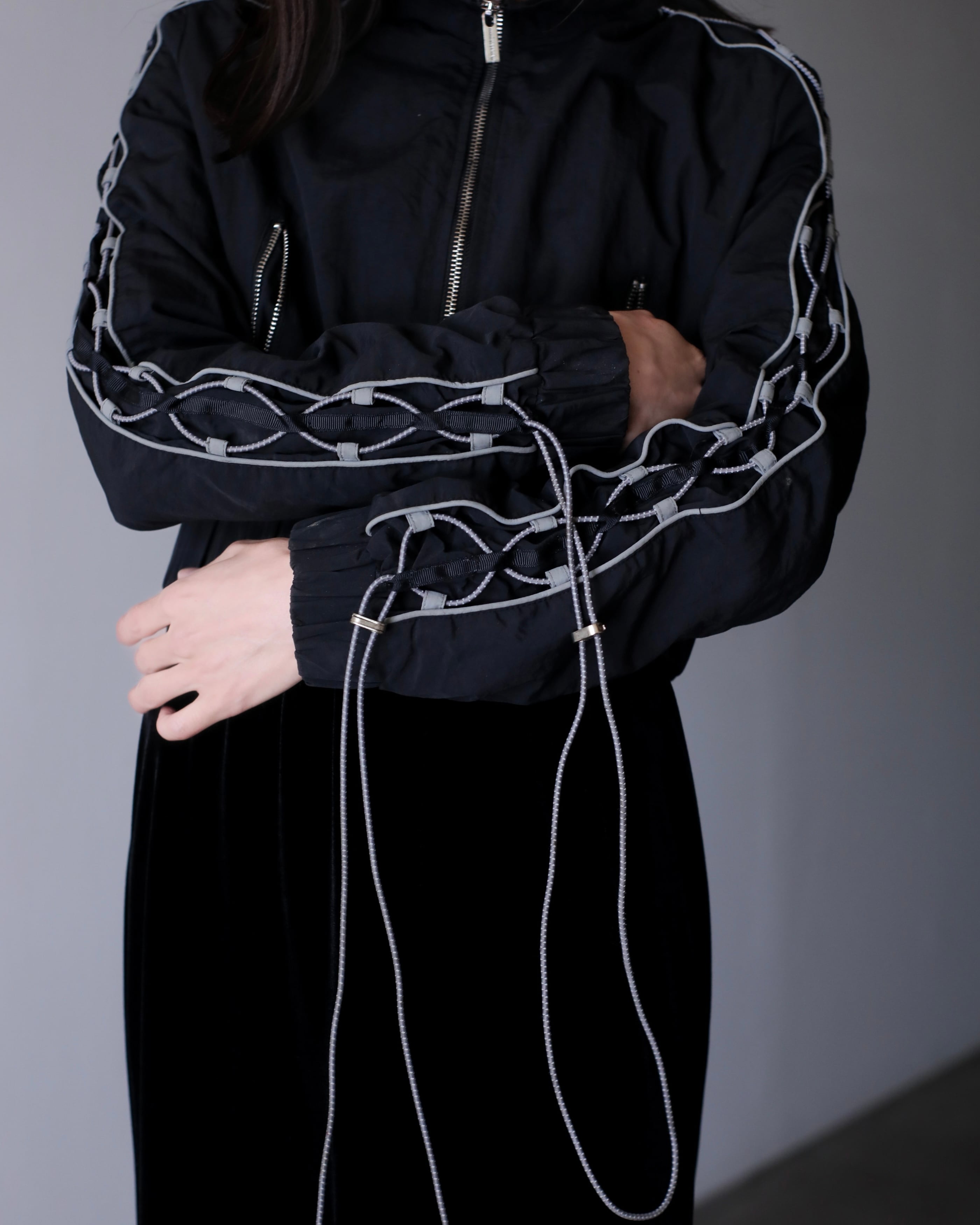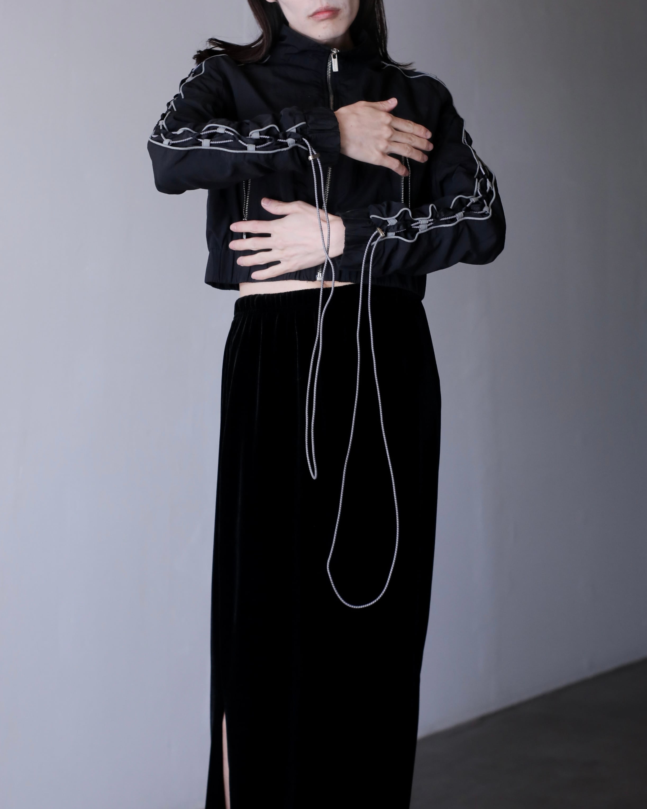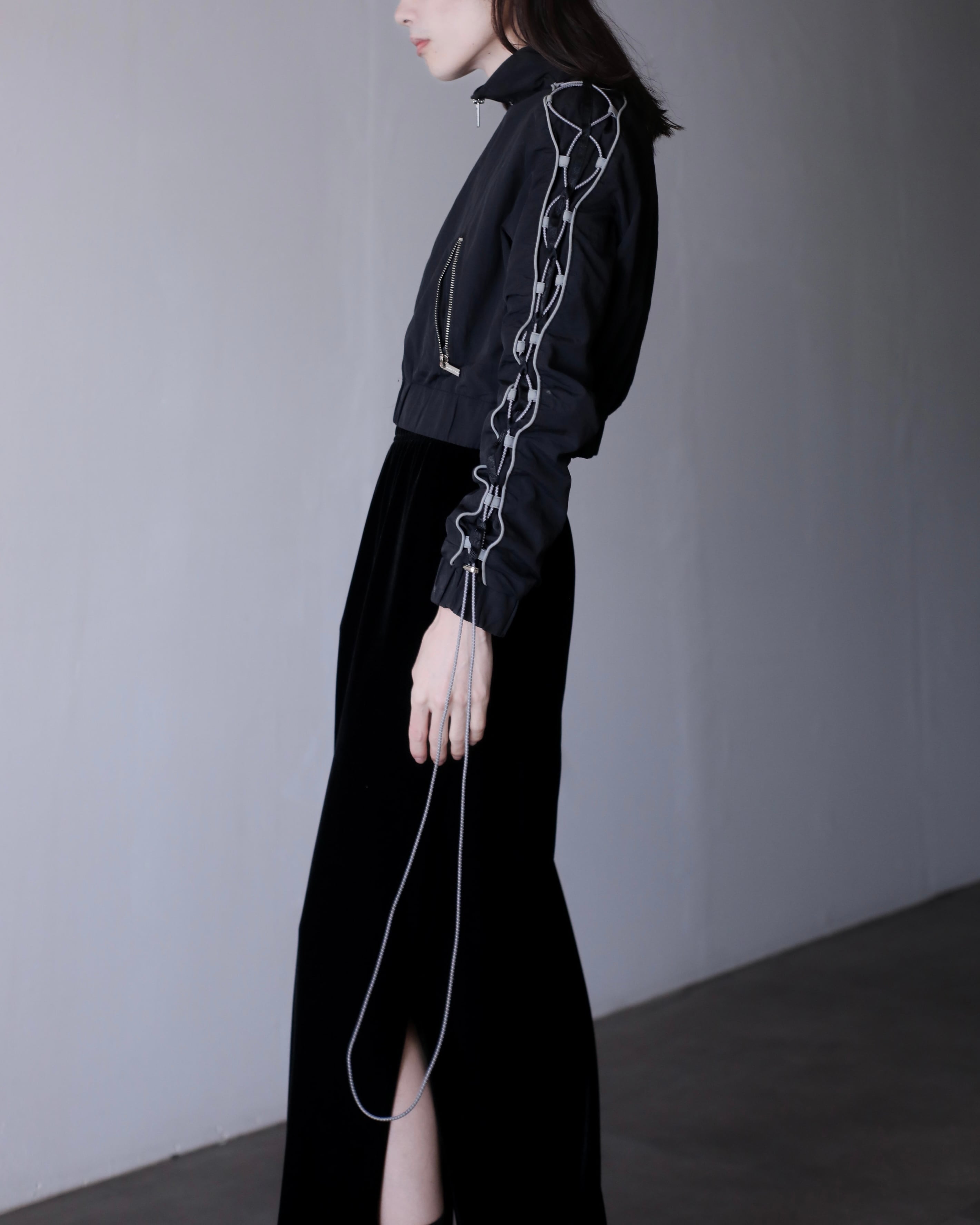 tech drawstrings shirring design short length jacket