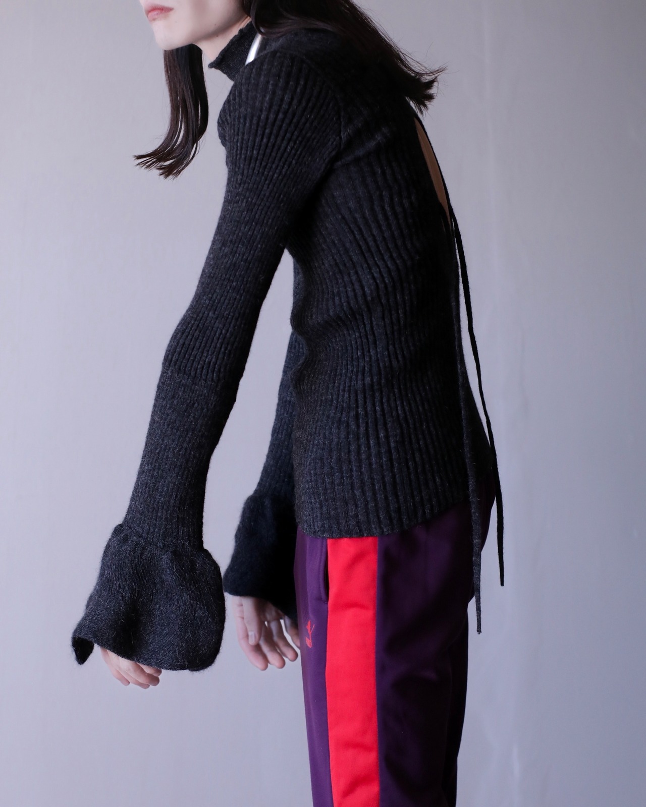 Acne "senaka manmaru kurinuki" ribbon design alpaca bell sleeve knit sweater