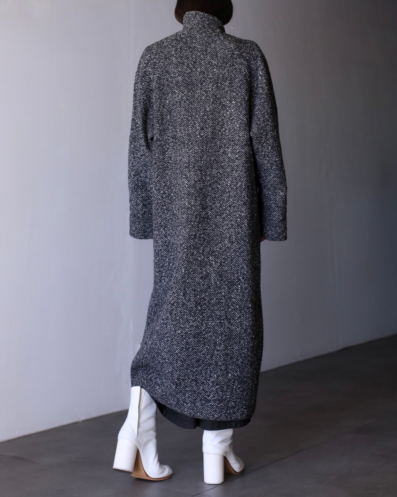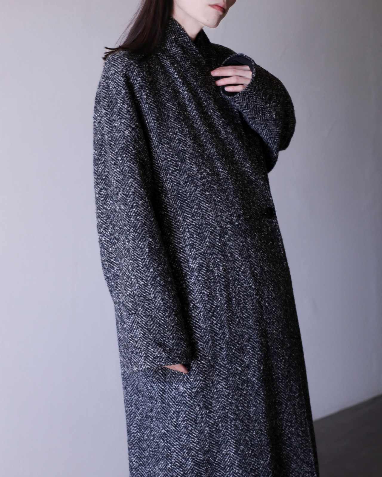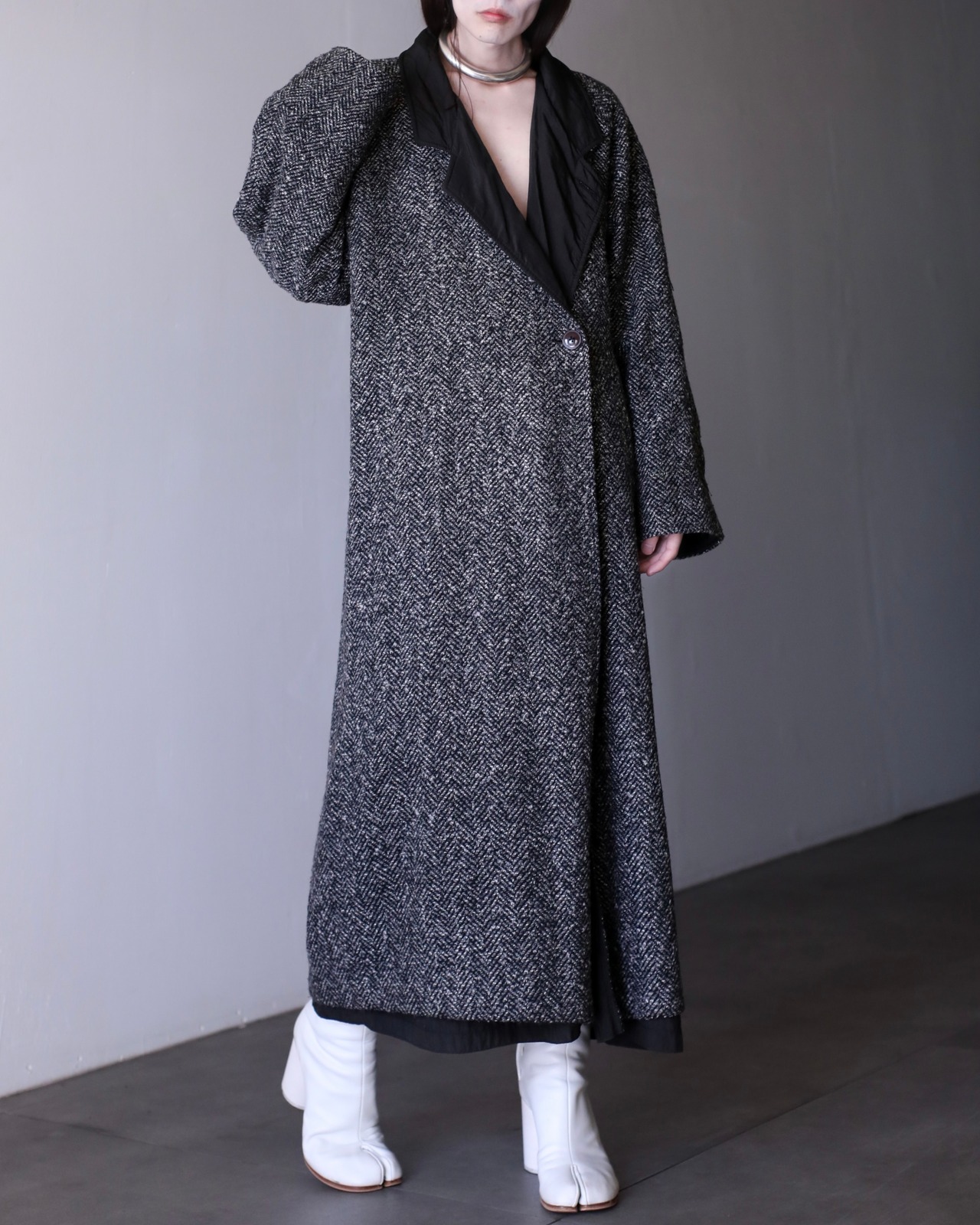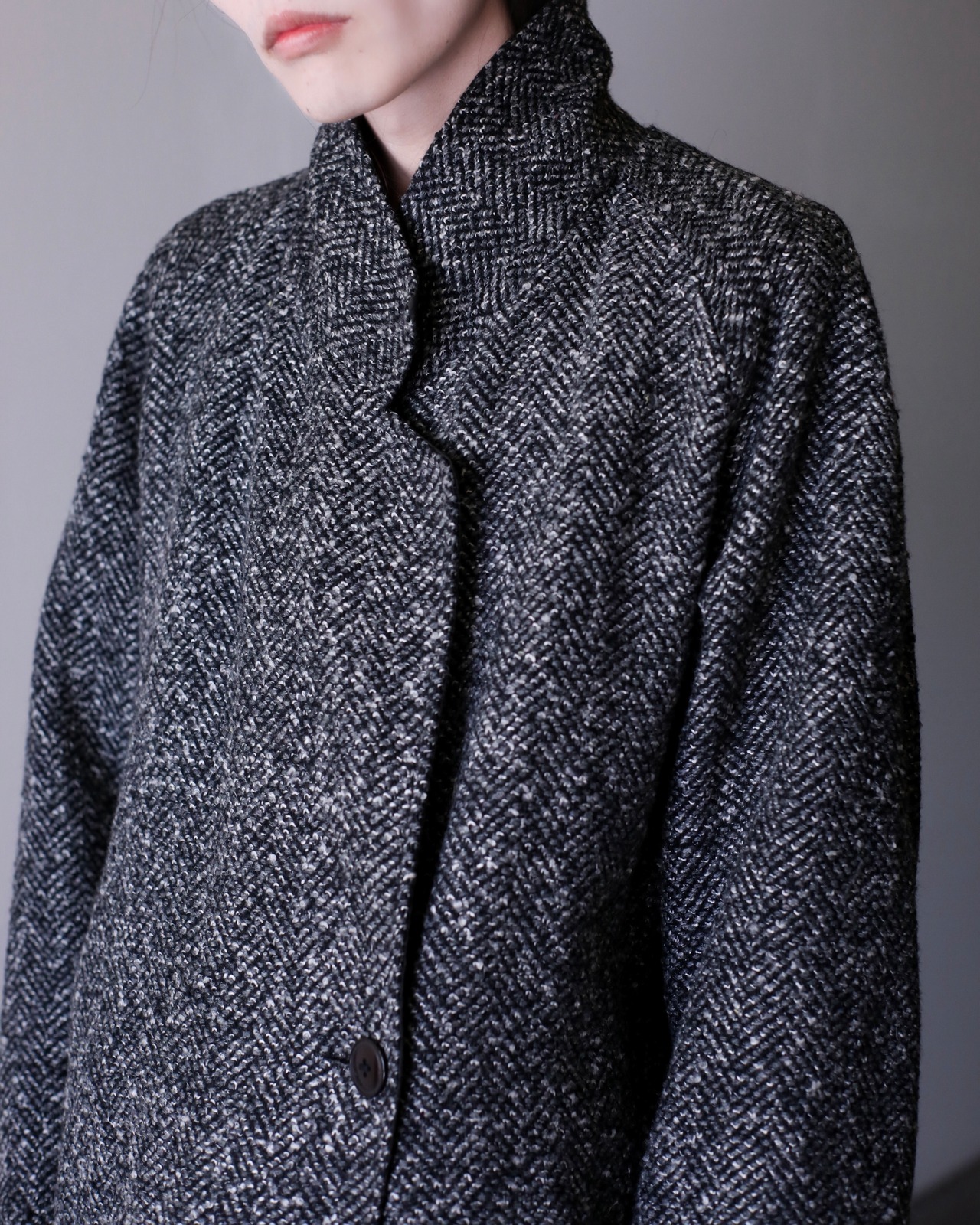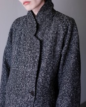 vintage tweed fabric stand collar double breasted reversible coat maxi oversized