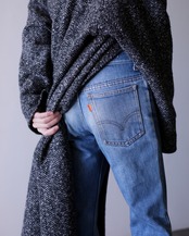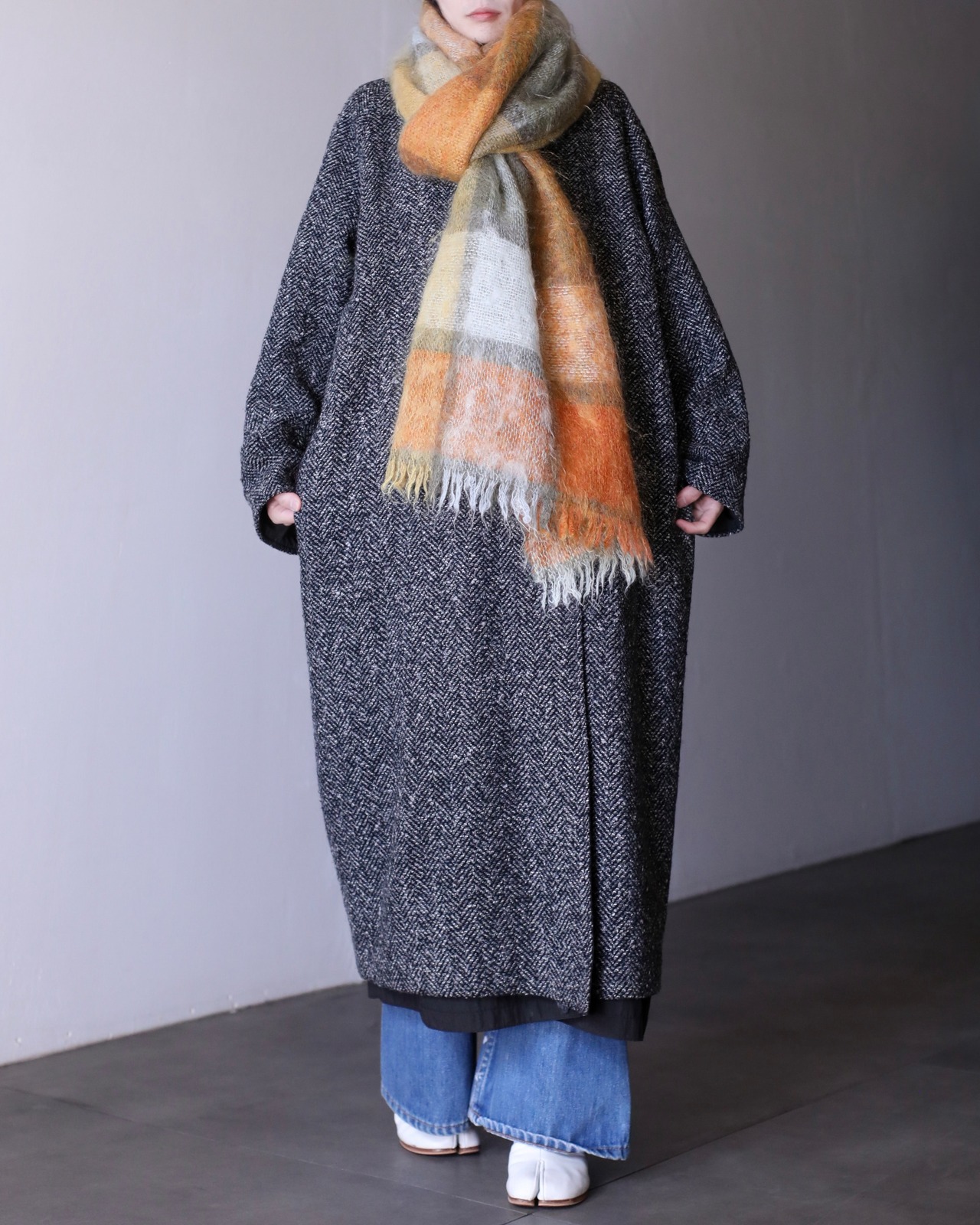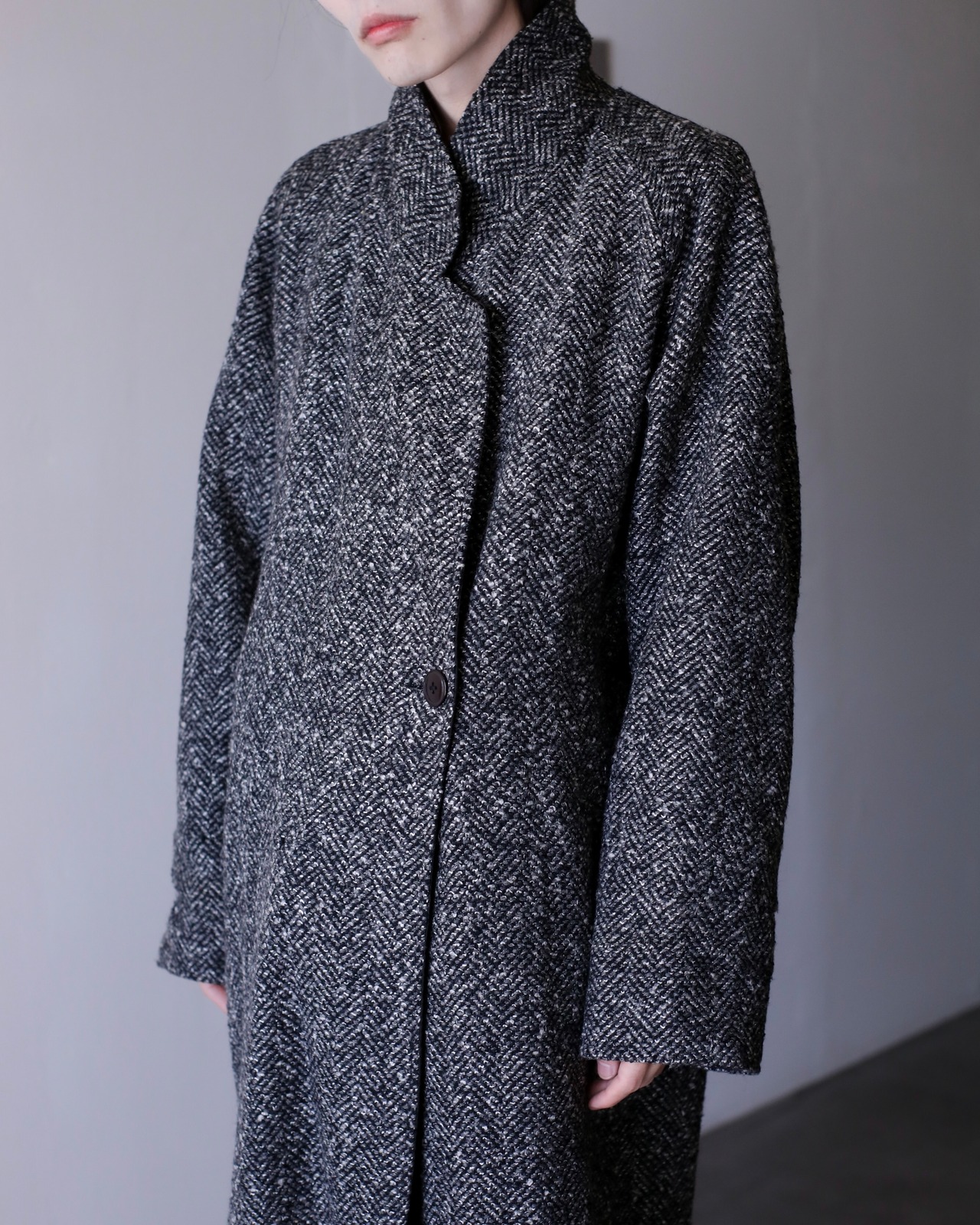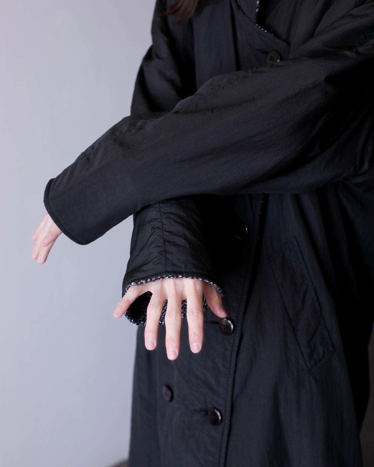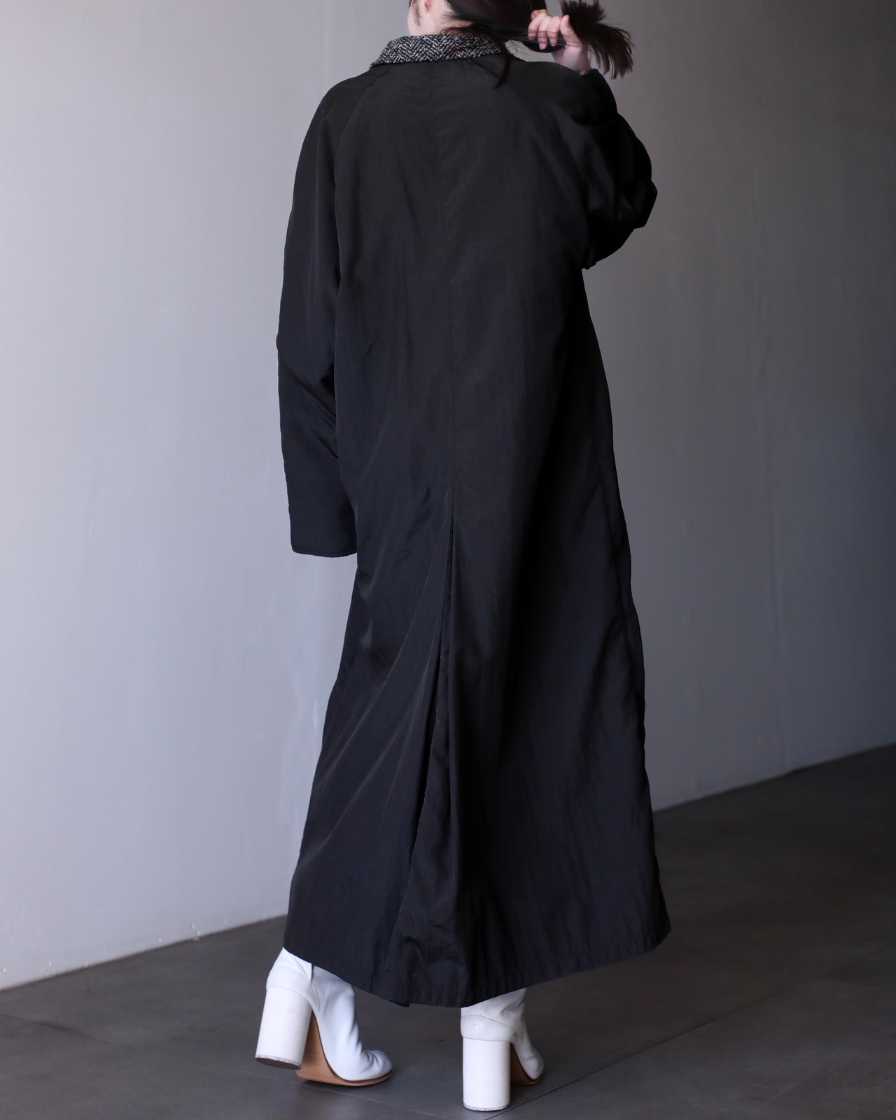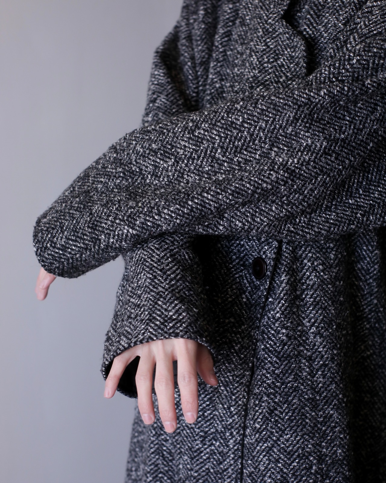 vintage tweed fabric stand collar double breasted reversible coat maxi oversized