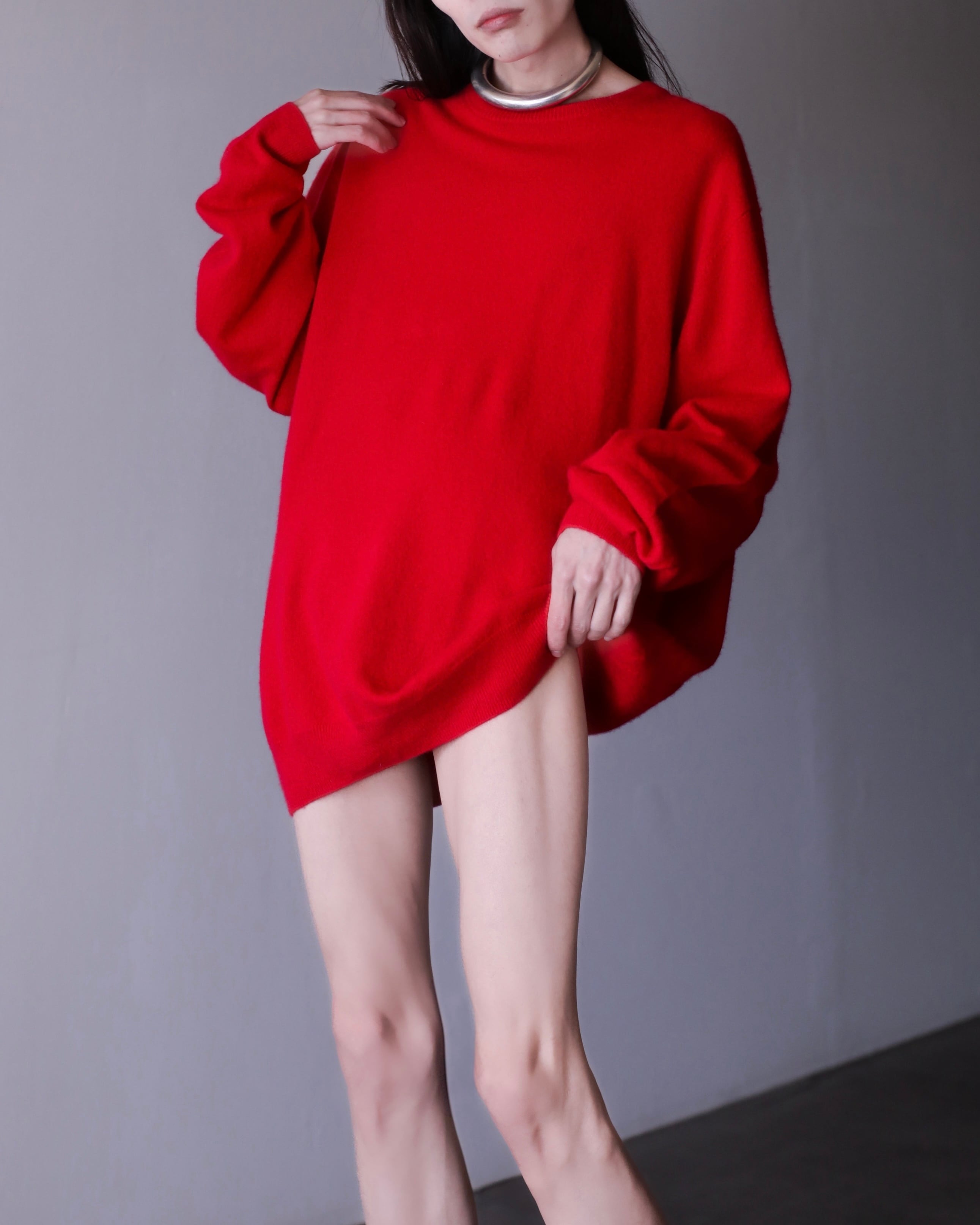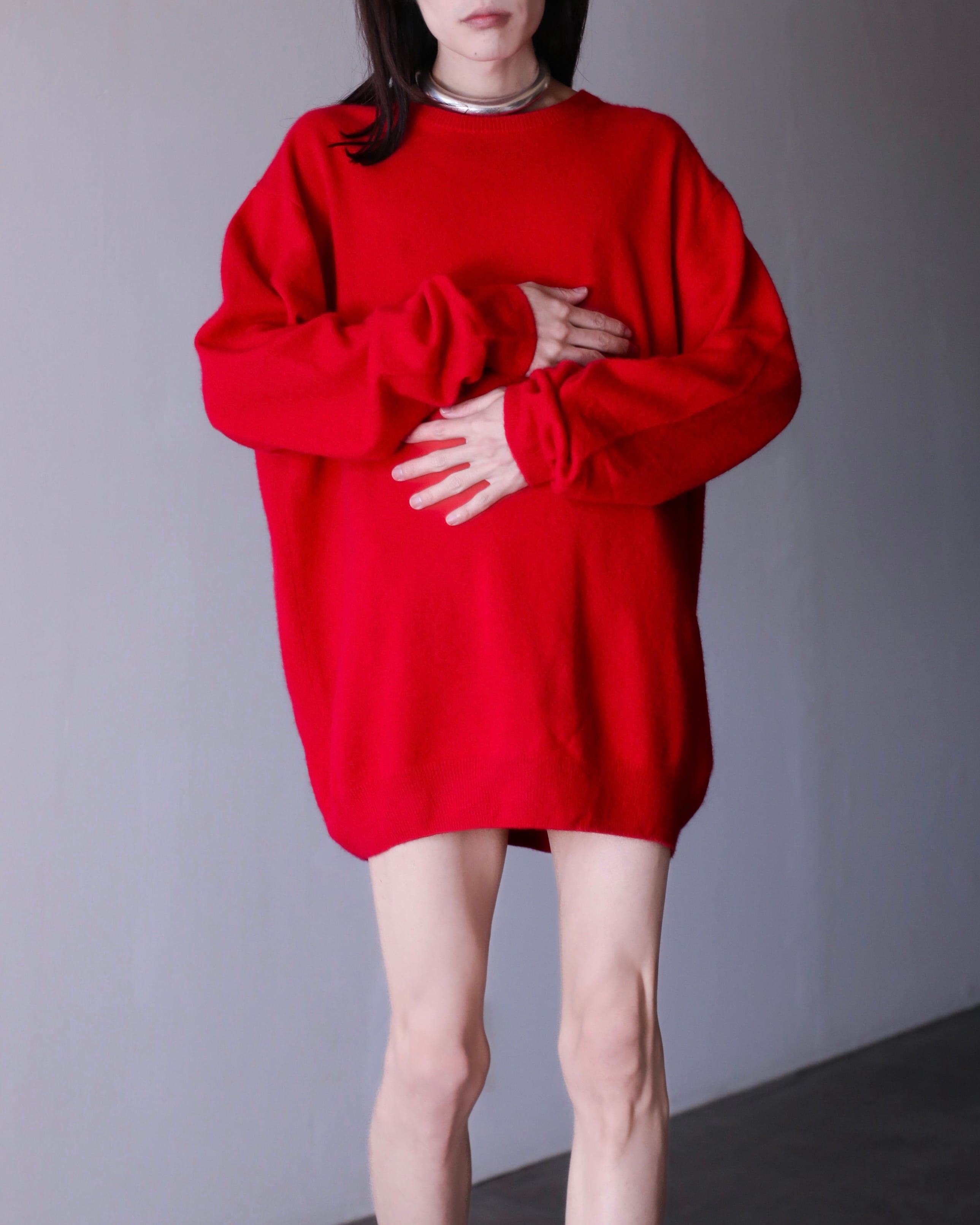 100% cashmere crew neck knit sweater oversized