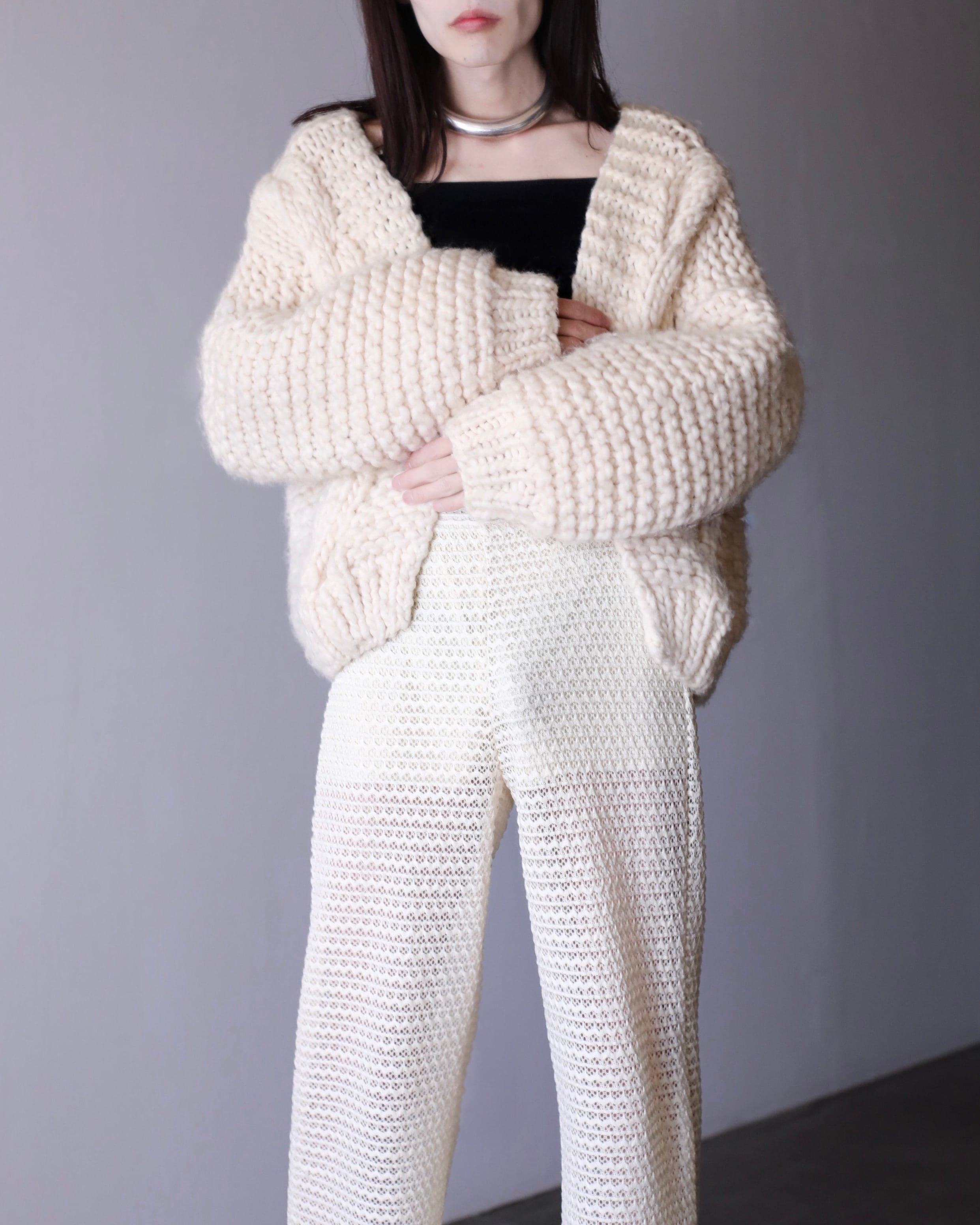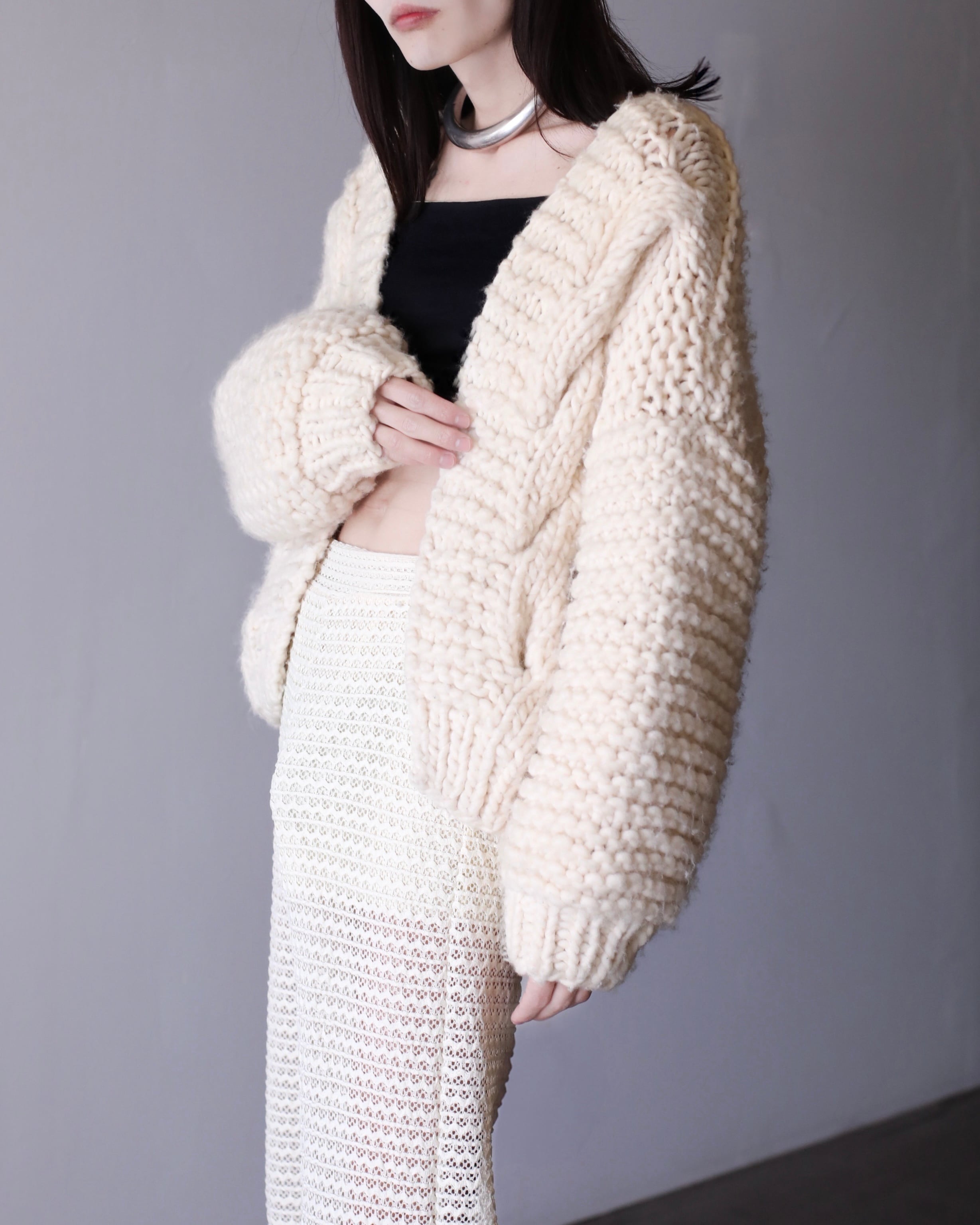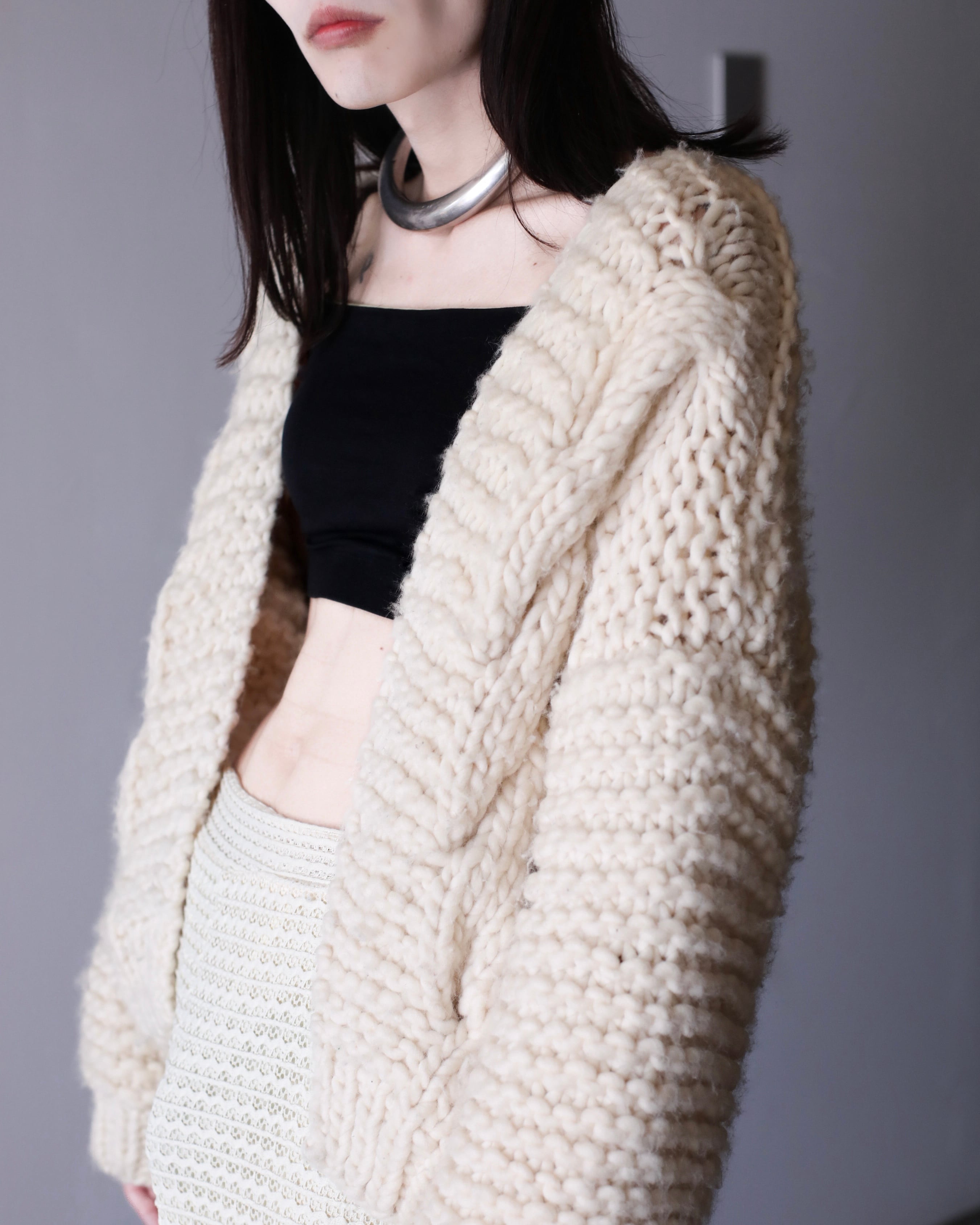 MR.MITTENS "gokubuto arm" super chunky design wide & short silhouette heavy wool knit jacket Made In Peru